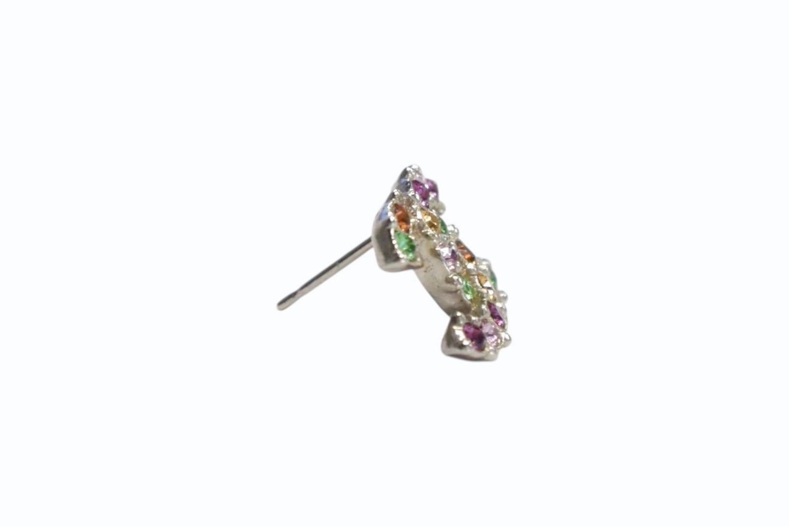 マルチカラーラインストーン×シルバーカラーの組み合わせが魅力的な両耳用ピアスです。