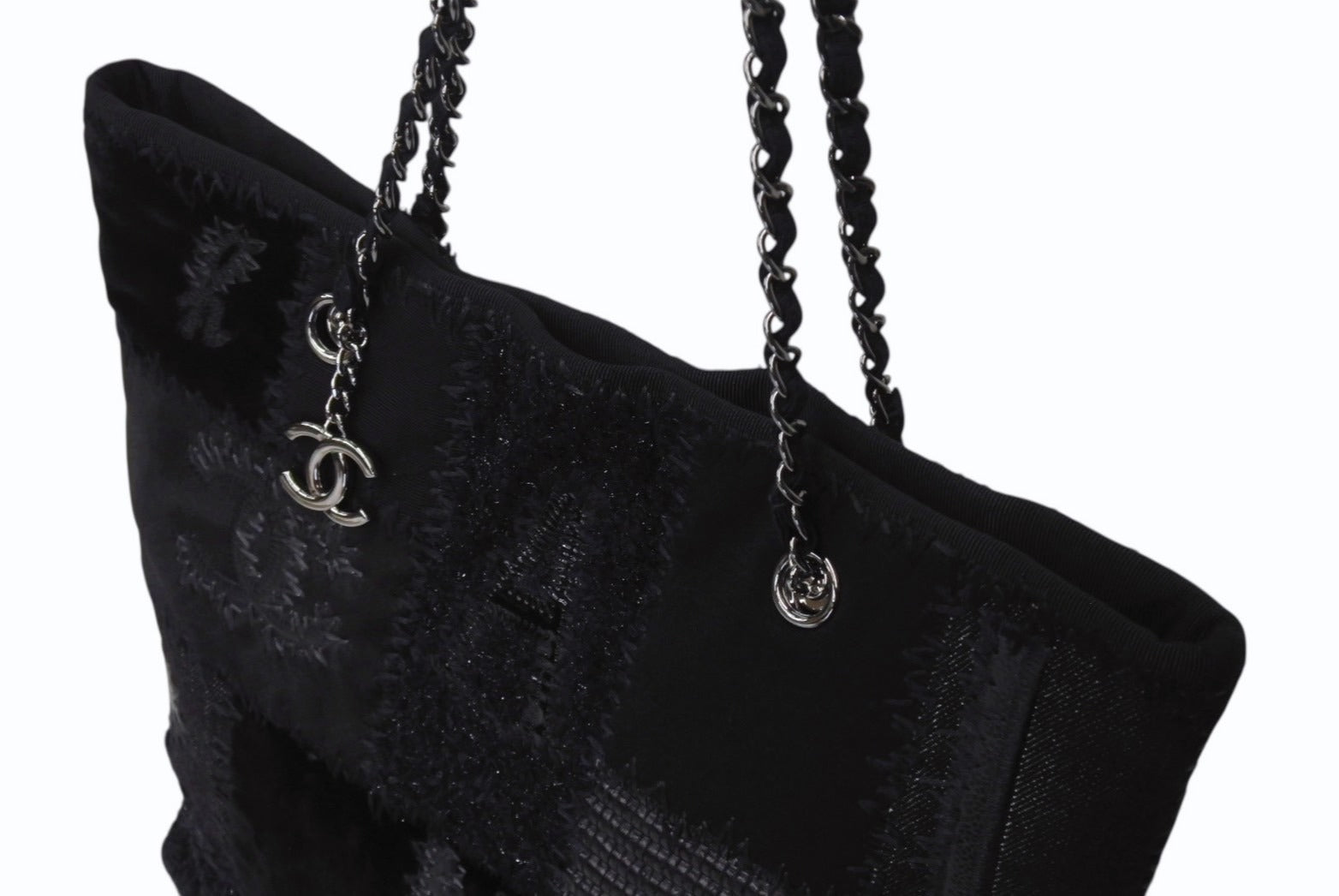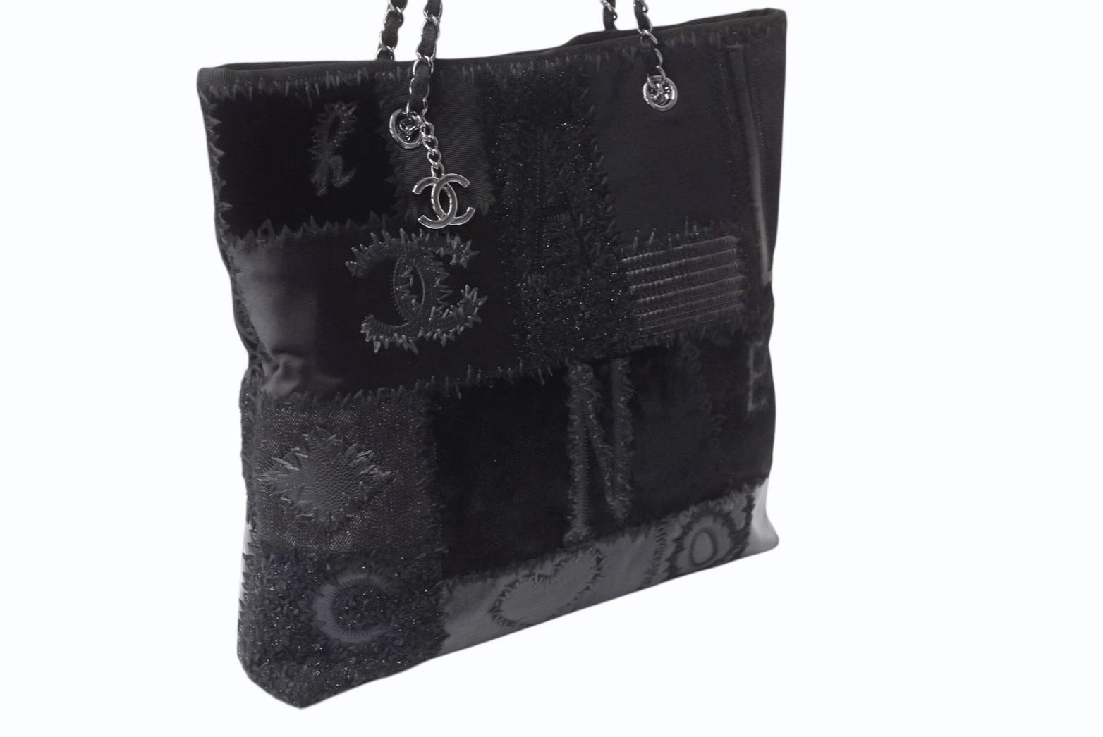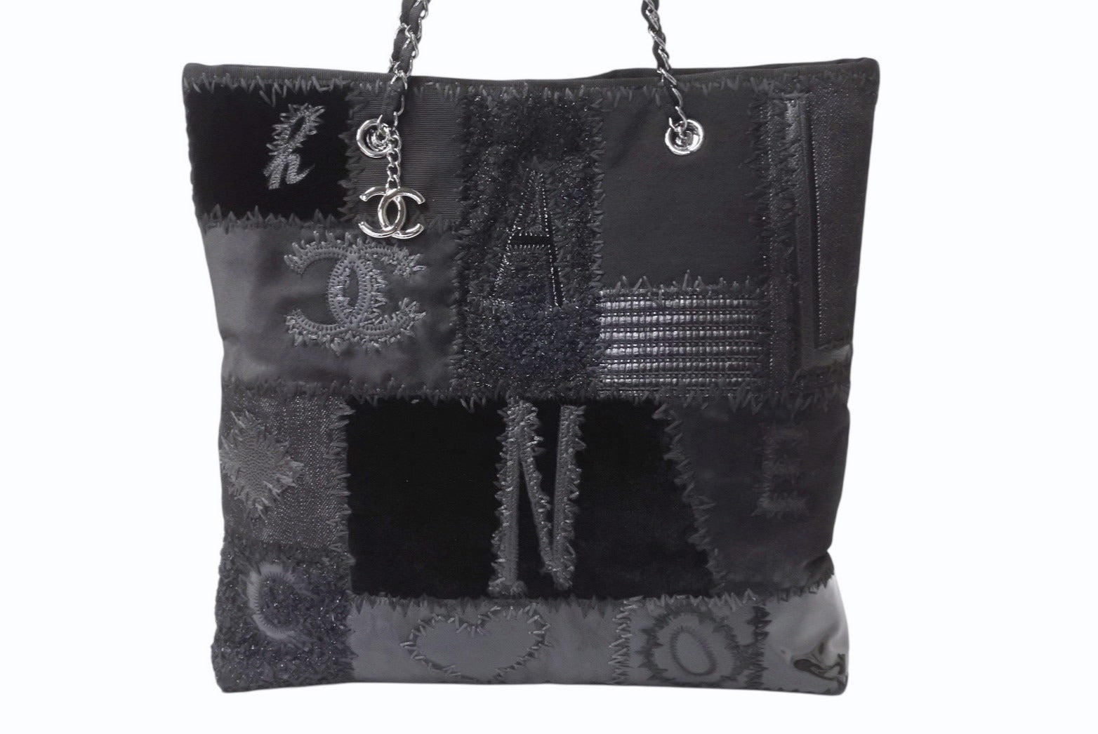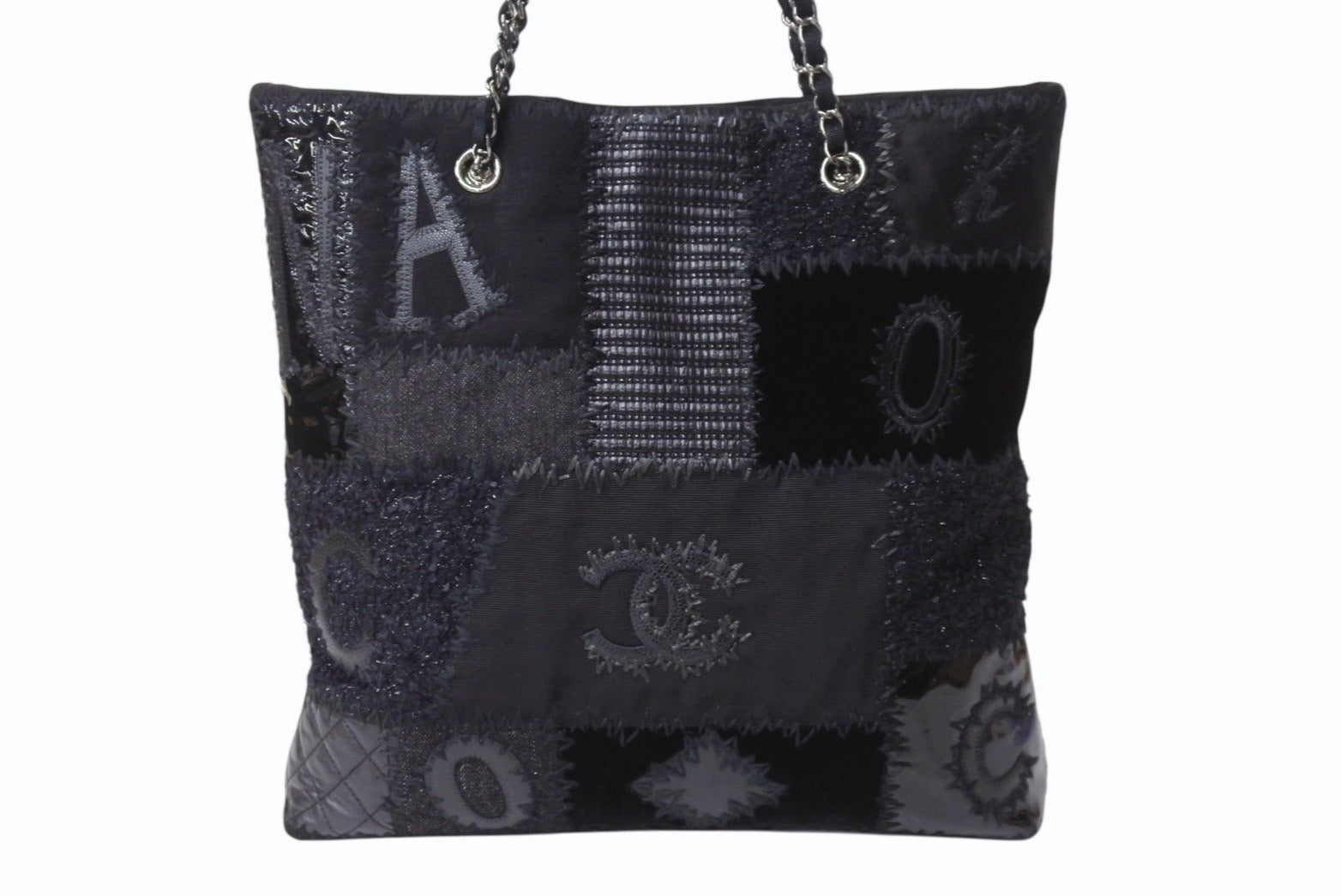 パッチワークデザインが目を惹くチェーントートバッグになります。