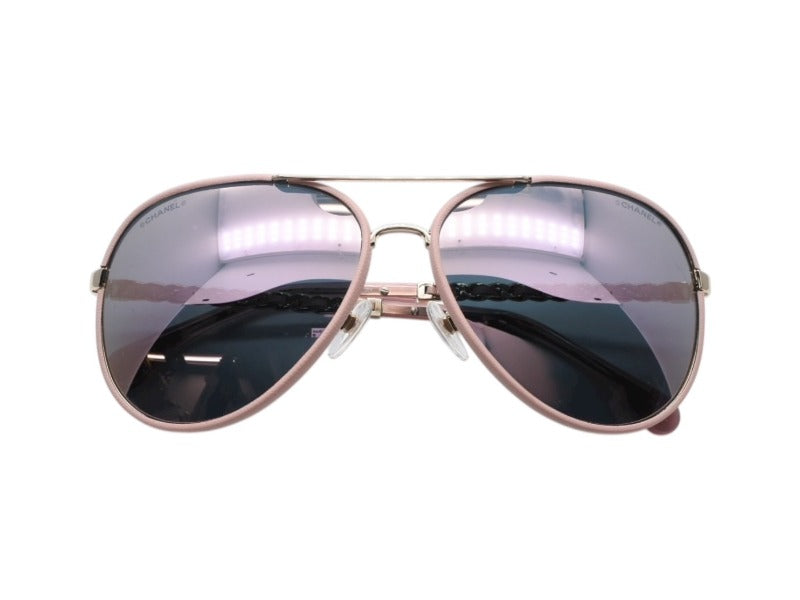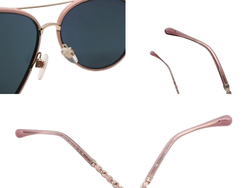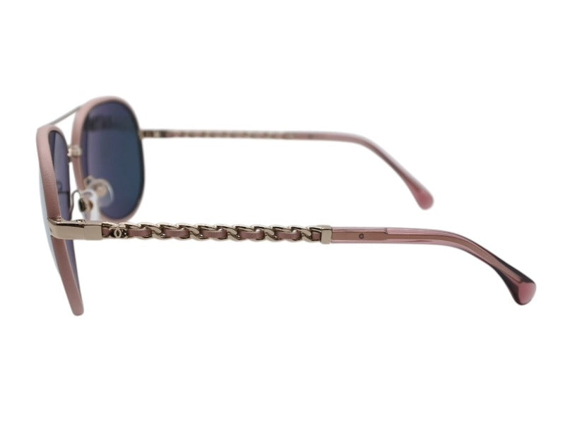 テンプル部分のチェーンディテールが魅力的なアイテムです。
