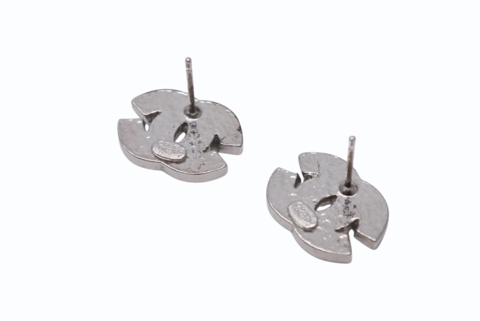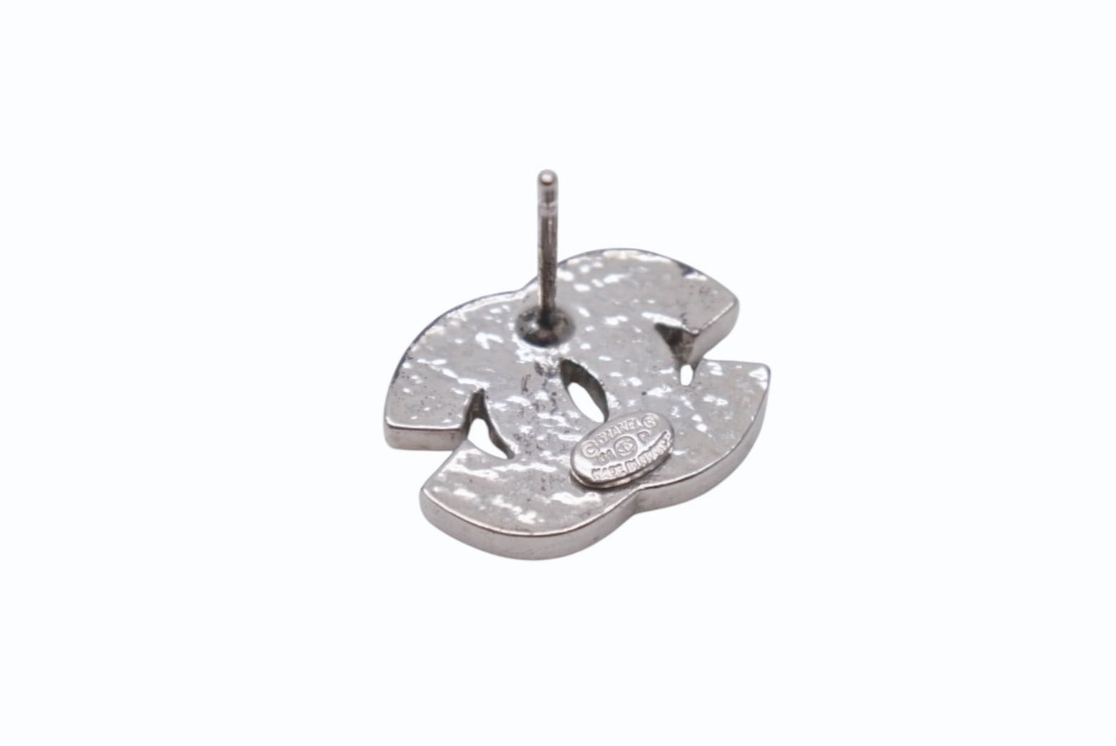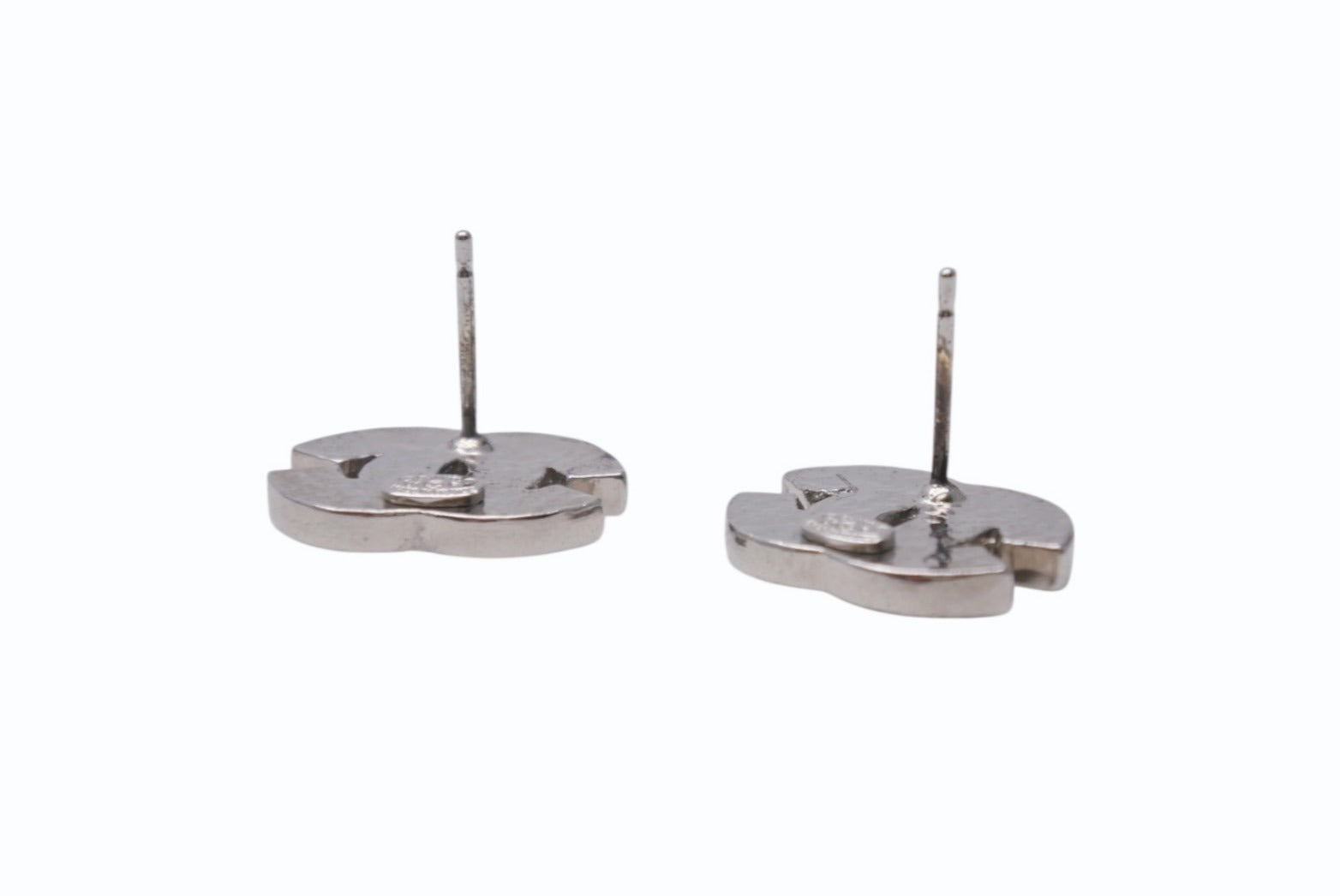 極美品 CHANEL シャネル Coco Mark ココマーク ピアス ラインストーン シルバー カラー 01P 刻印 2.3g アクセサリー 中古 4b006442