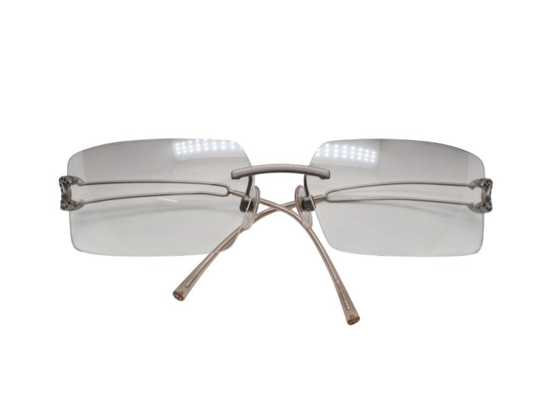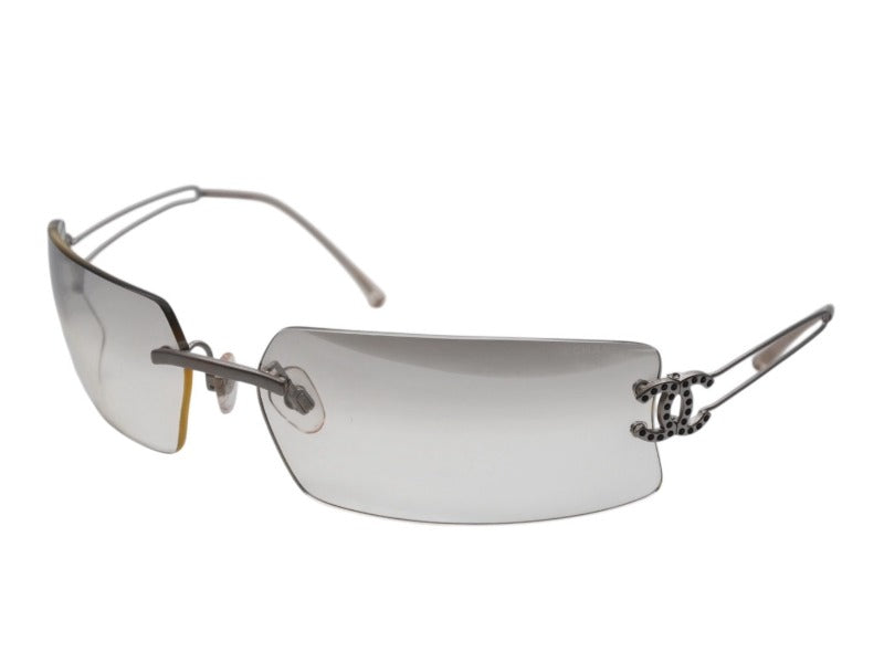 ラインストーンのあしらわれたココマークモチーフが目を惹くリムレスサングラスです。