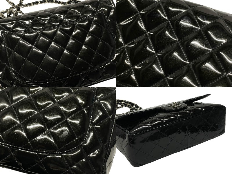 CHANEL シャネル デカマトラッセ30 Sフラップ Wチェーンショルダーバッグ 19番台 A58600 パテントレザー ブラック 美品 中古 4b007364