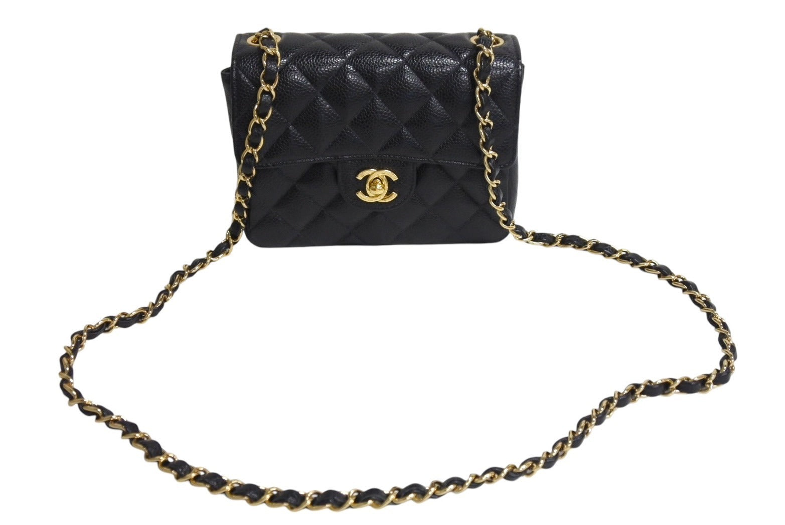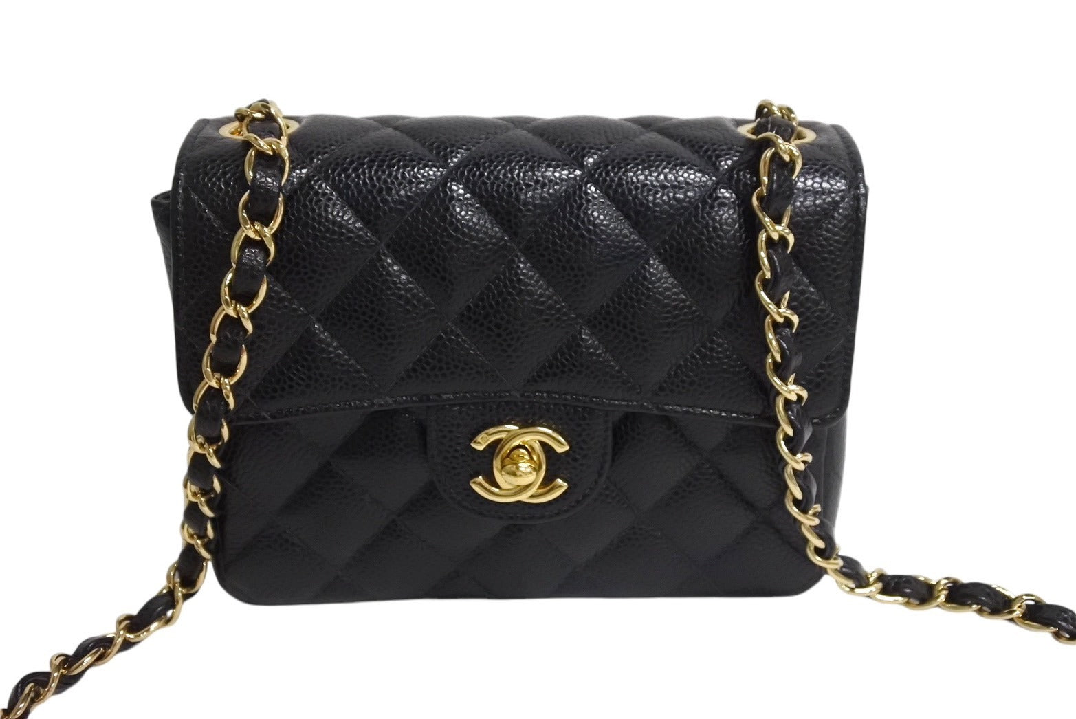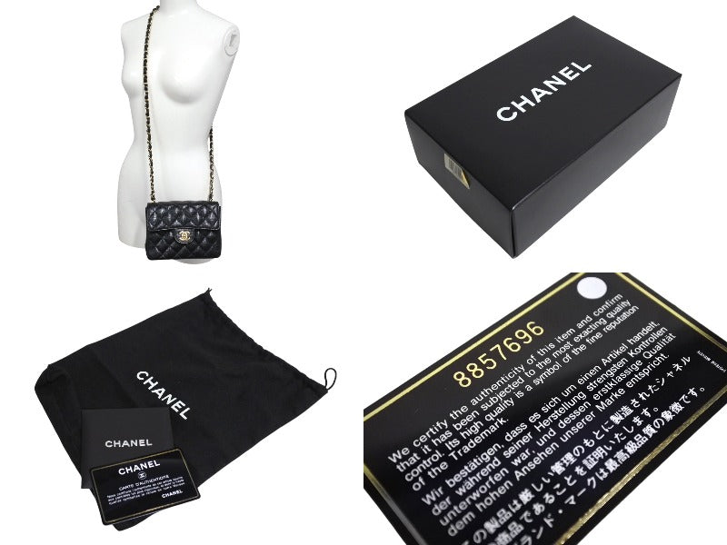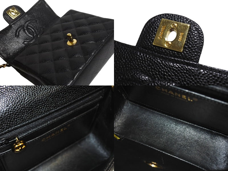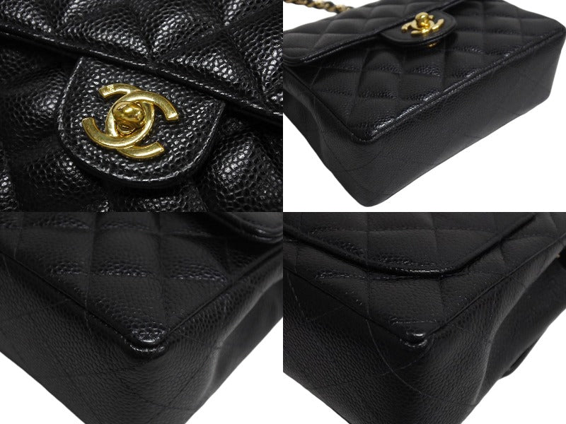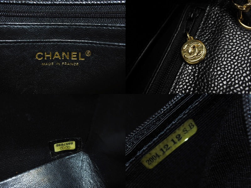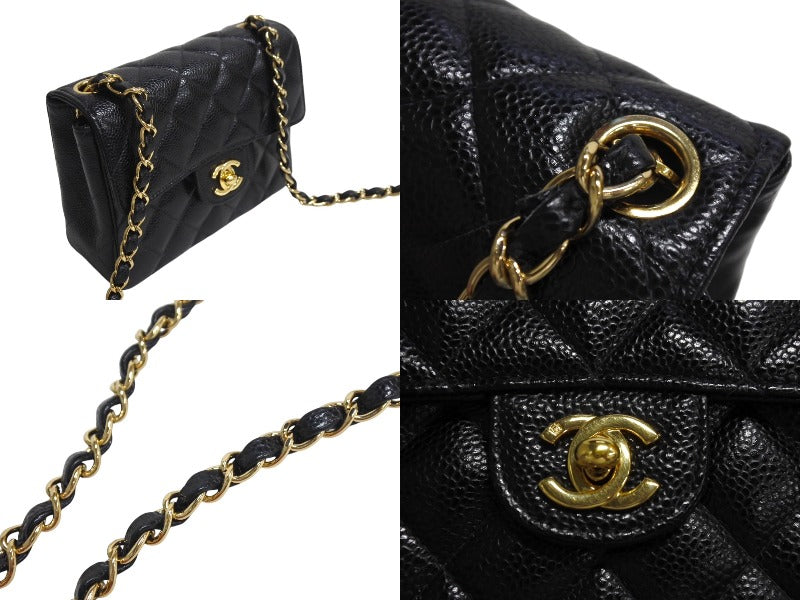 極美品 CHANEL シャネル ミニマトラッセ チェーンショルダーバッグ 8番台 キャビアスキン ゴールド金具 ブラック 中古 4c067681