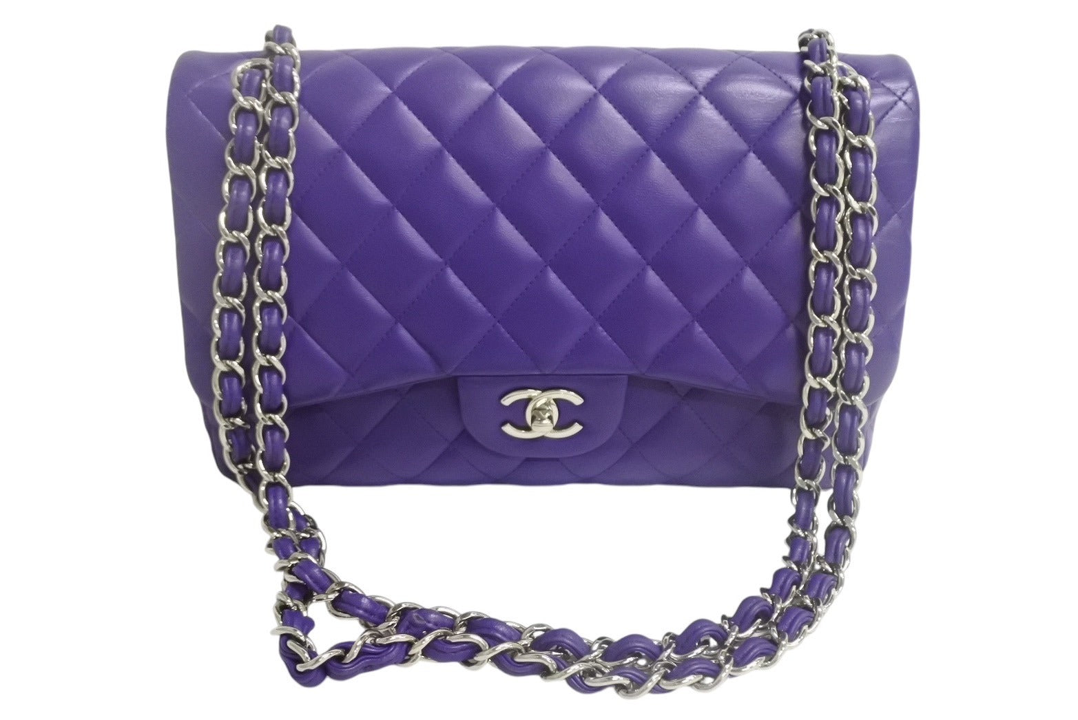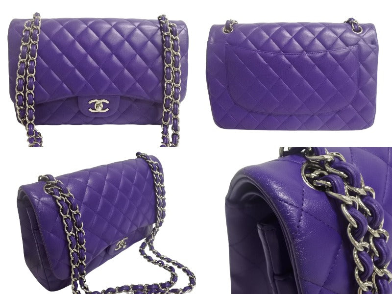 極美品 CHANEL シャネル マトラッセ クラシック チェーンショルダーバッグ 15番台 キャビアスキン シルバー金具 パープル 中古 4c067763