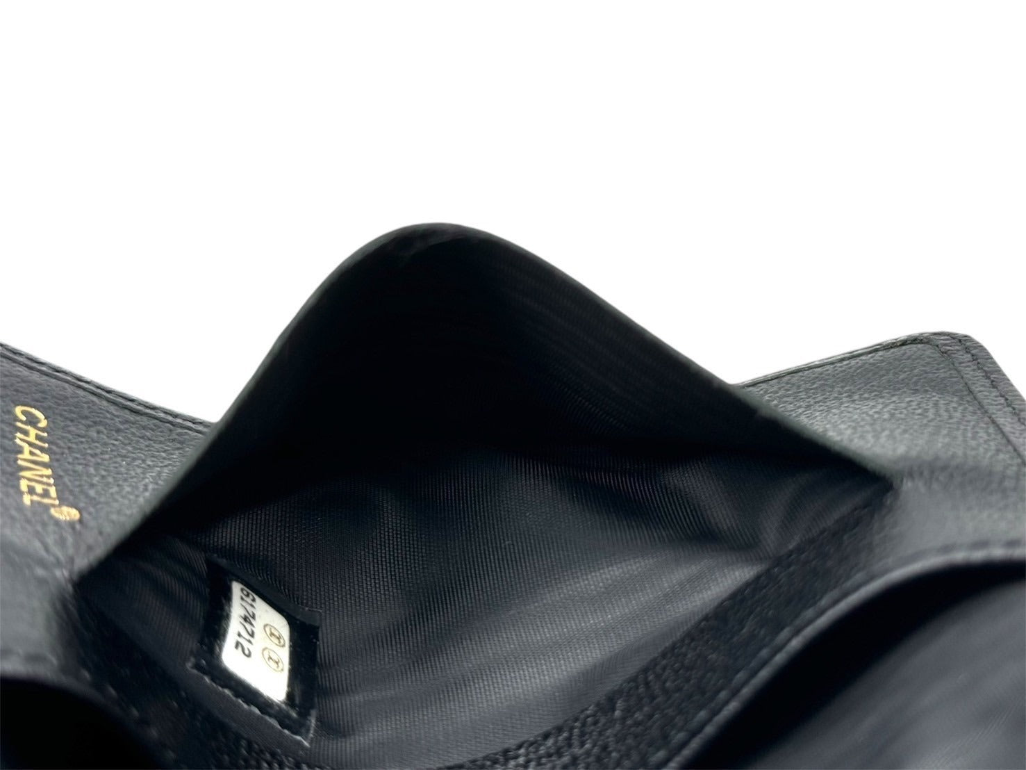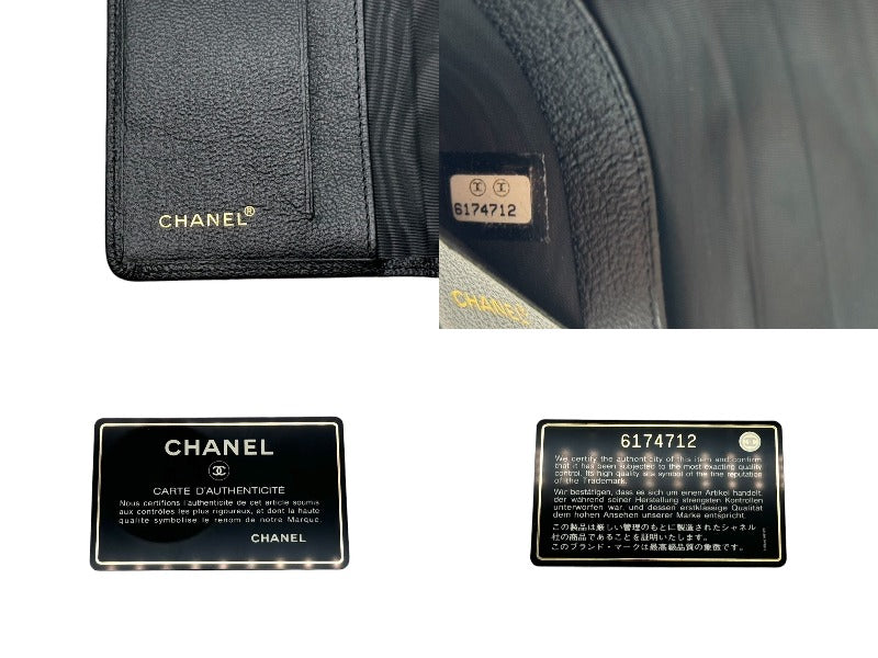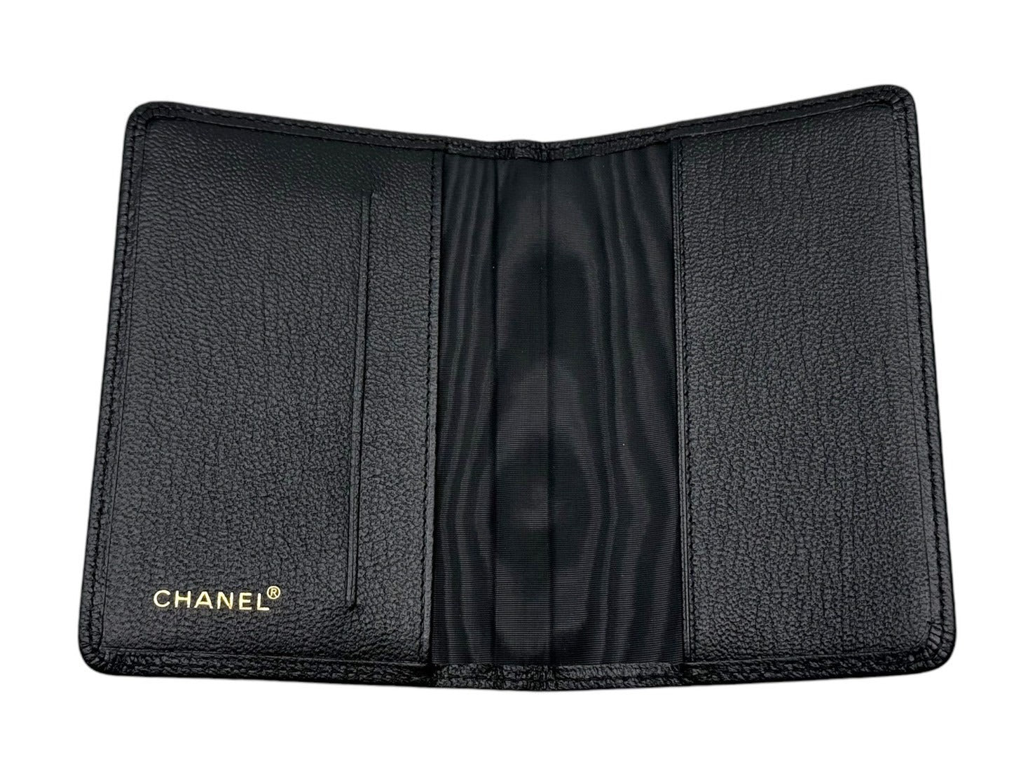 極美品 CHANEL シャネル カードケース ココマーク ソフトカーフ 手帳カバー ゴールド金具 ブラック 6番台 中古 4c067842