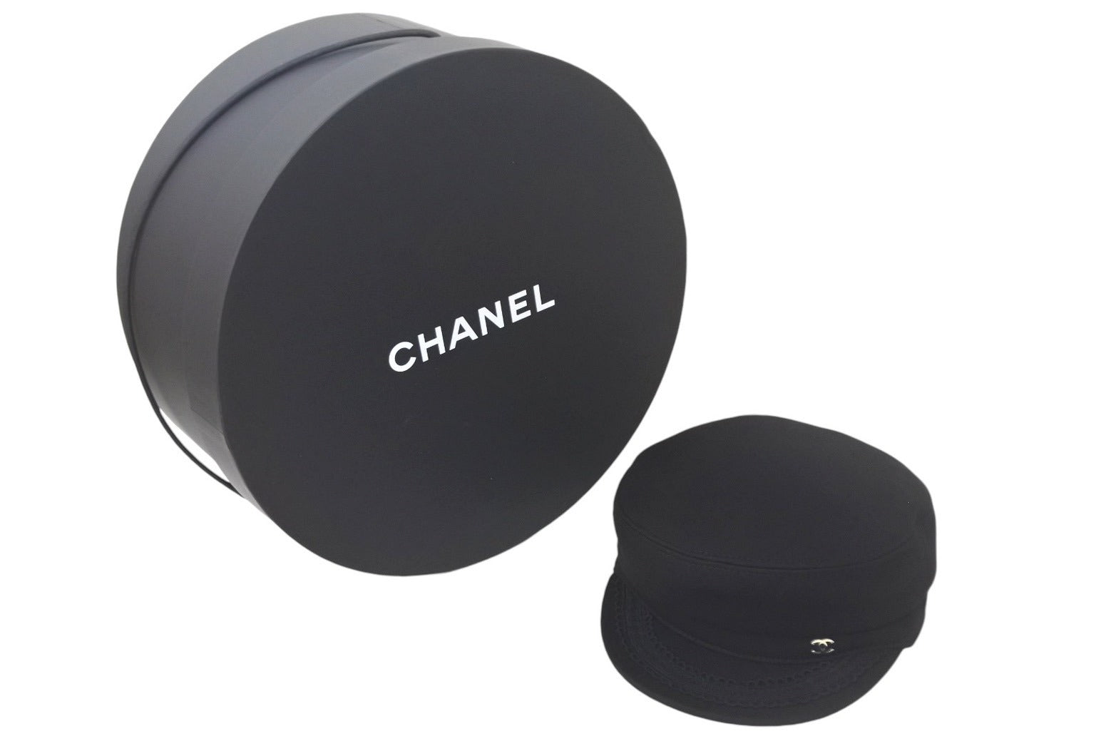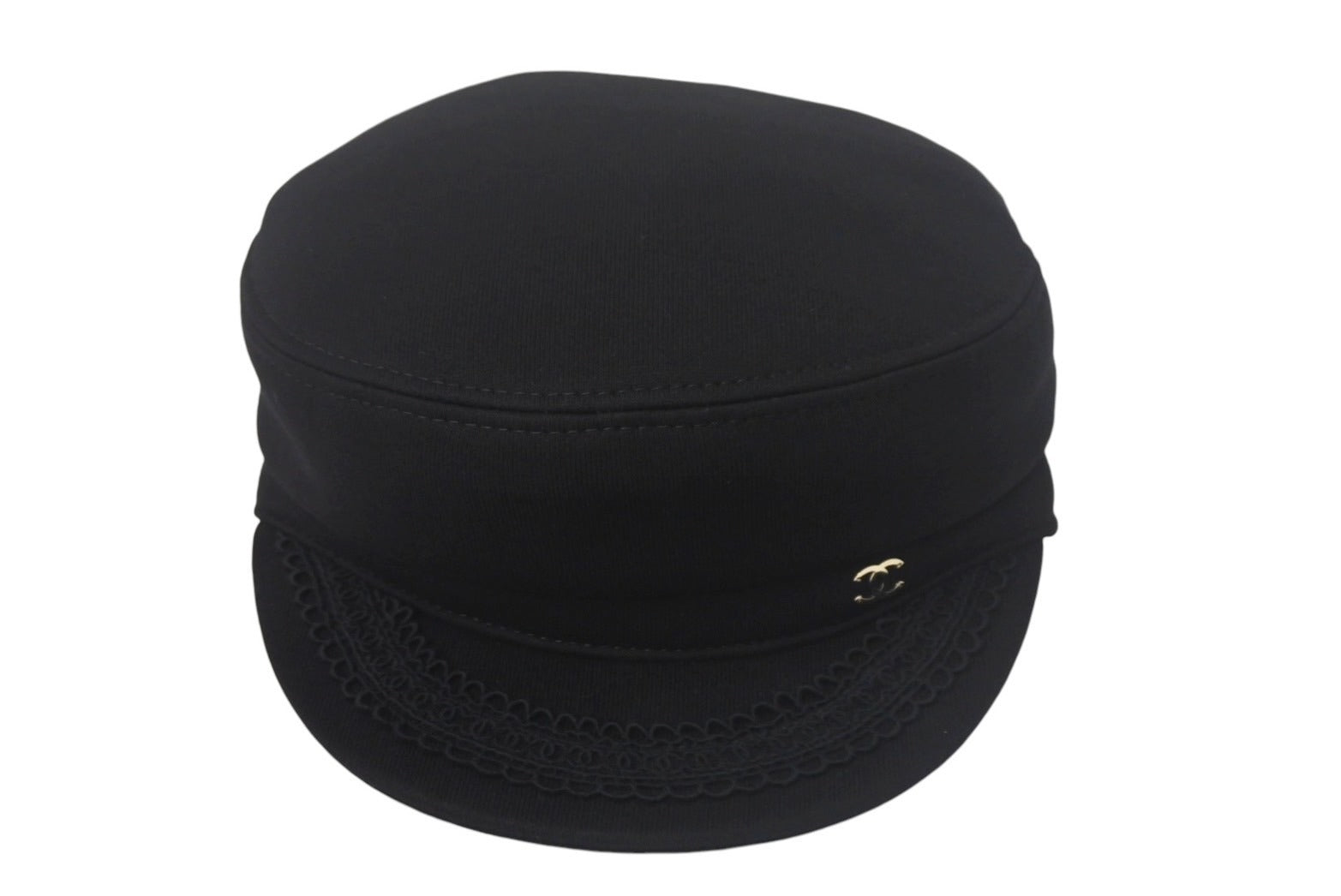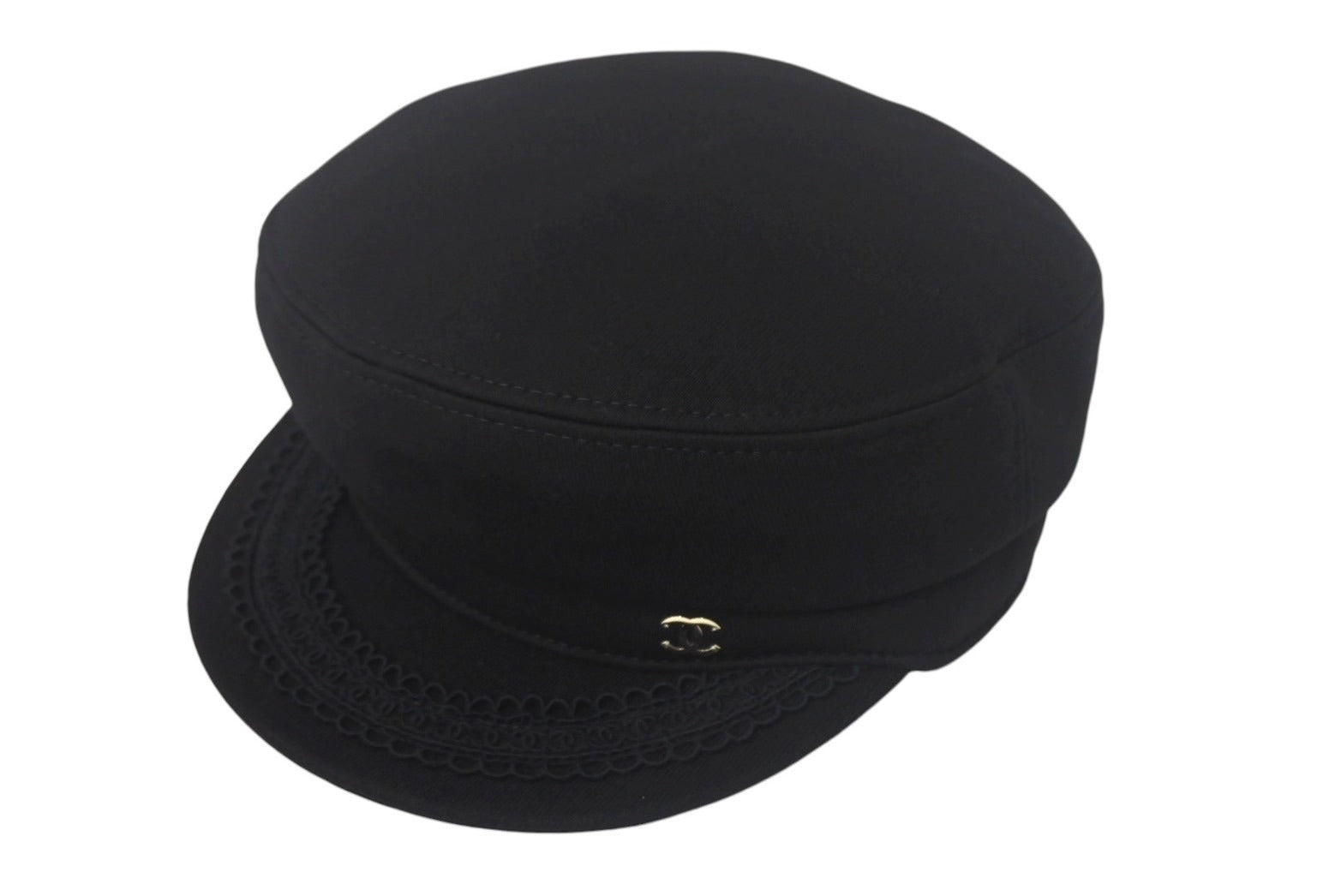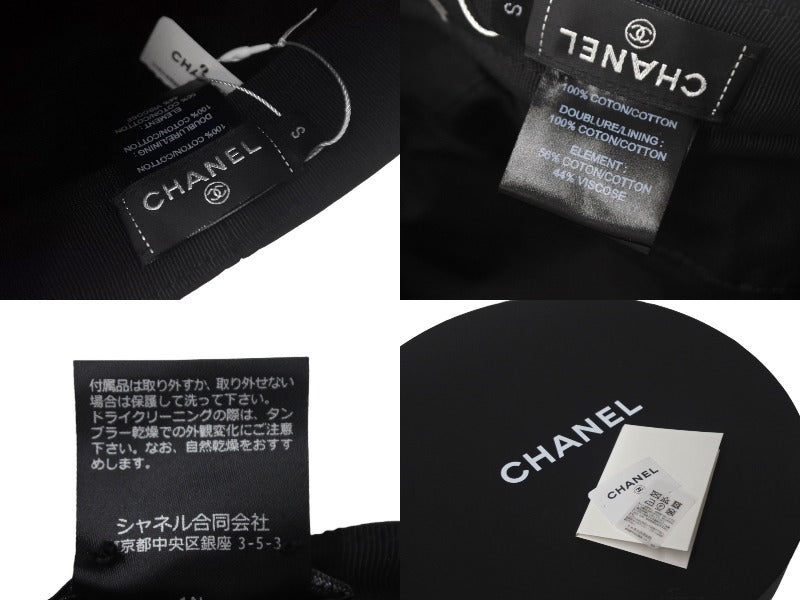 極美品 CHANEL シャネル エレガントキャスケット 帽子 ココマーク コットン ブラック シルバー サイズS 中古 4c067890
