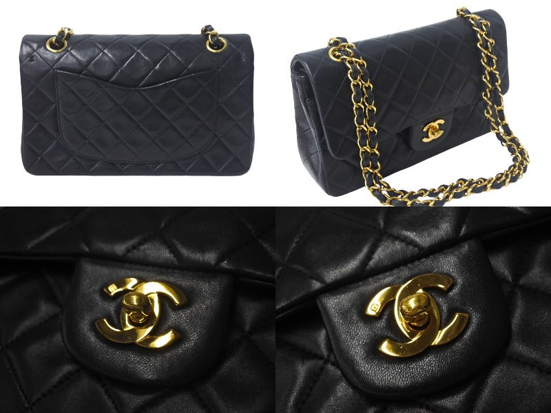 CHANEL シャネル チェーンショルダーバッグ マトラッセ23 Wフラップ ラムスキン 4番台 ブラック ゴールド 美品 中古 4c068010