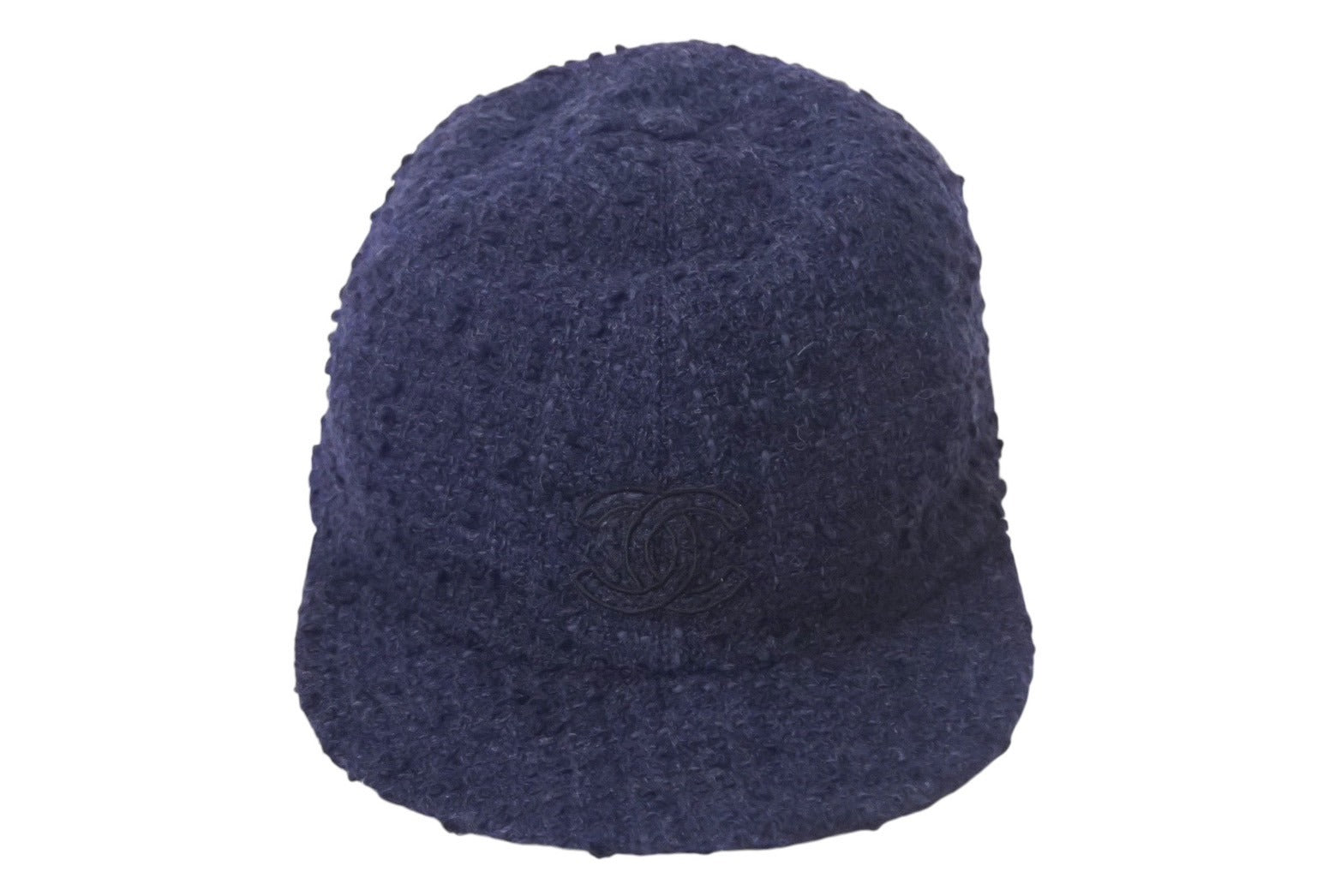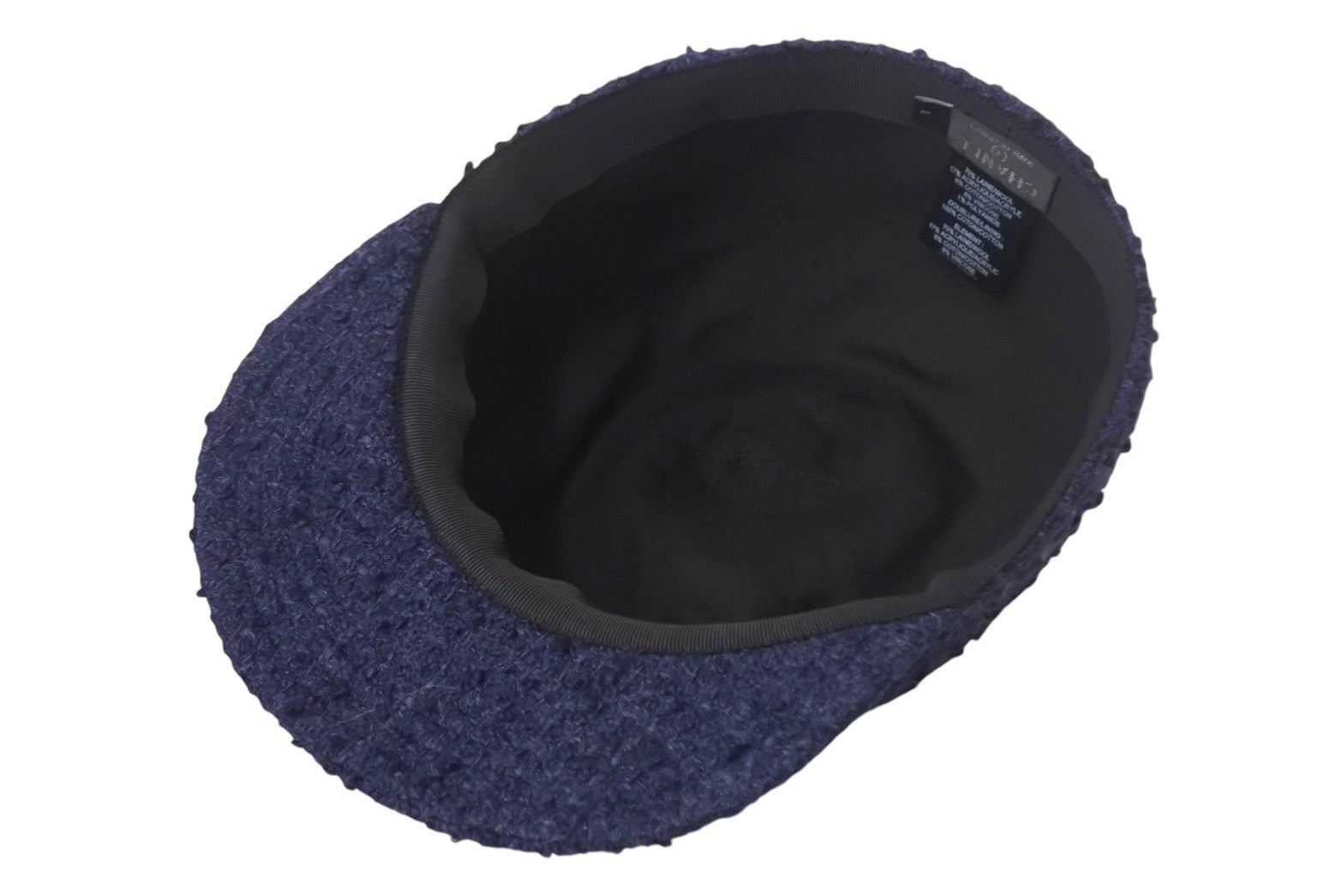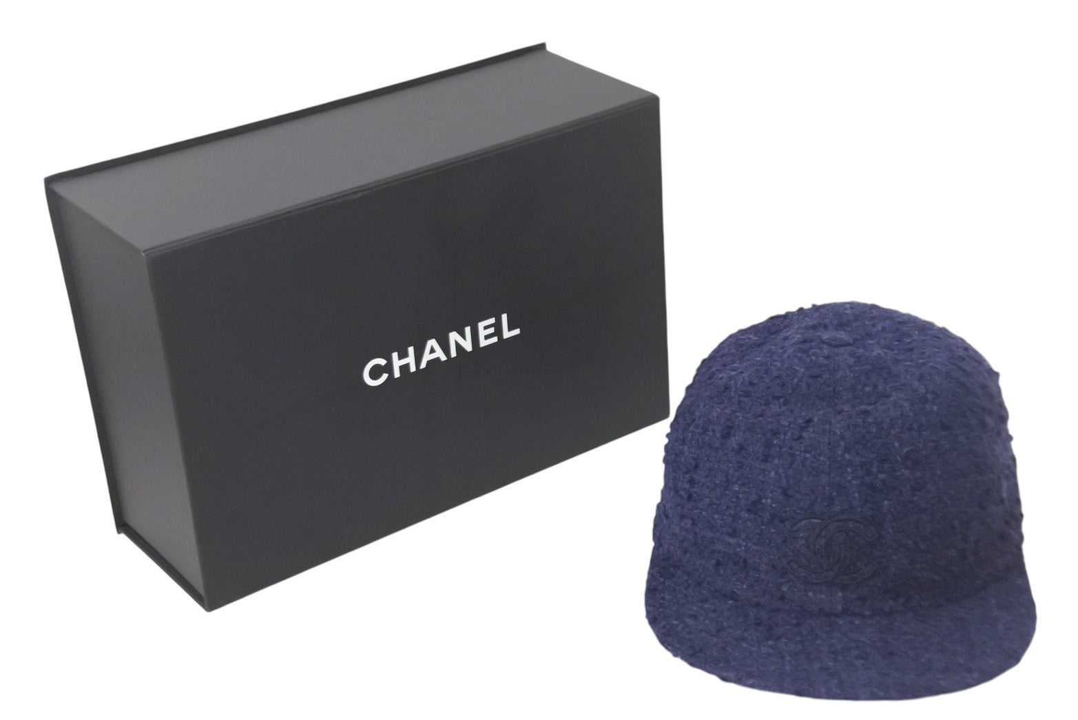 極美品 CHANEL シャネル 22AW ツイード キャップ ネイビー ココマーク 帽子 ロゴ 小物 サイズL 中古 4c068372