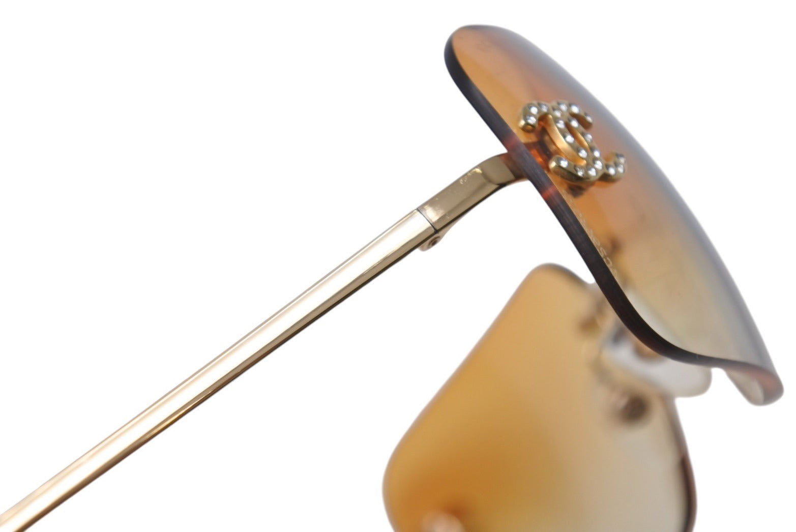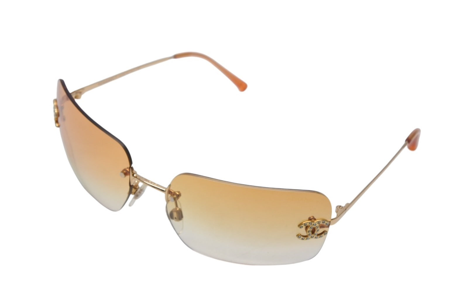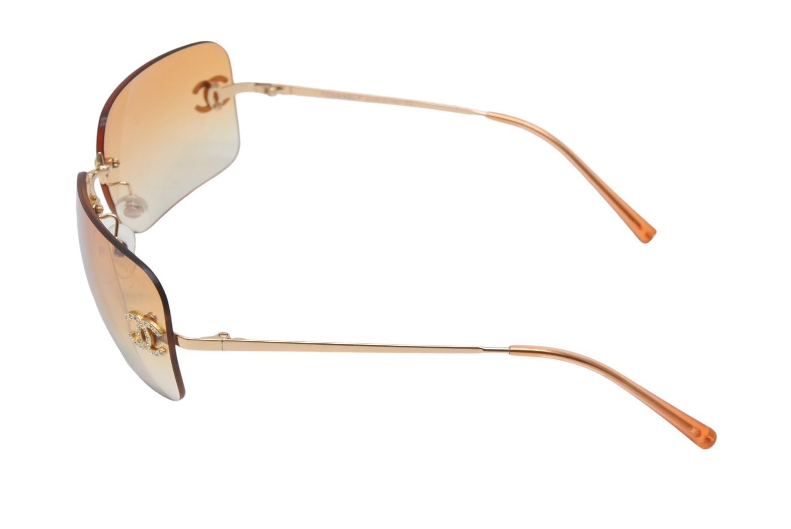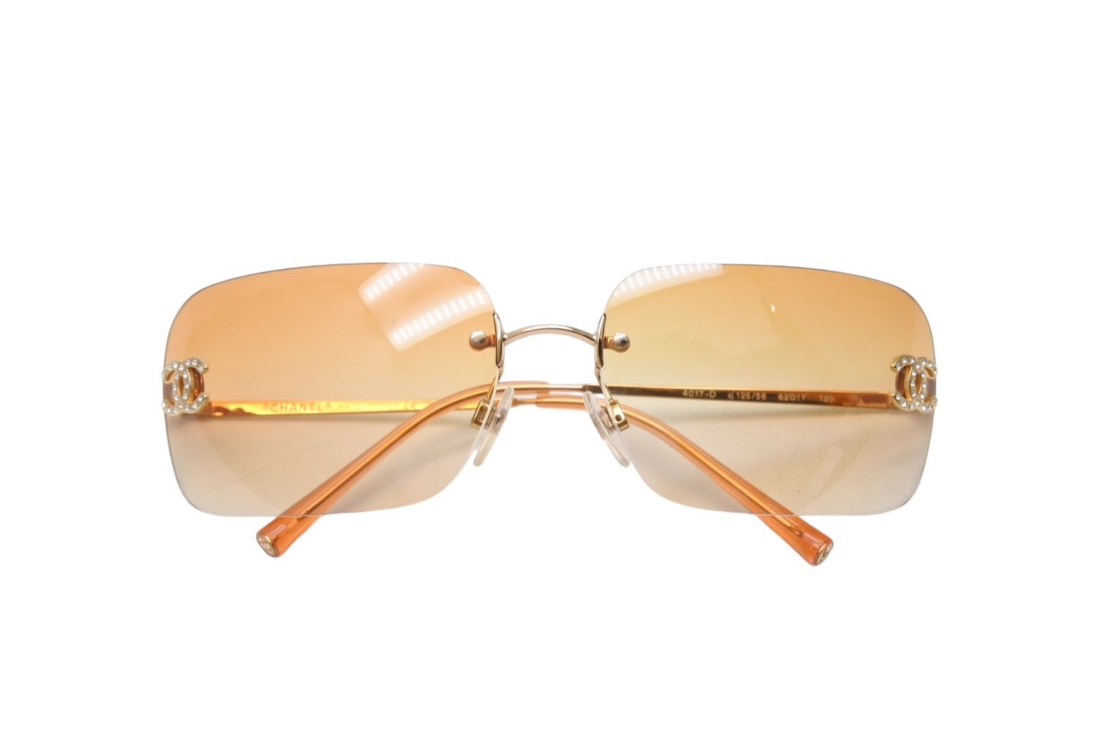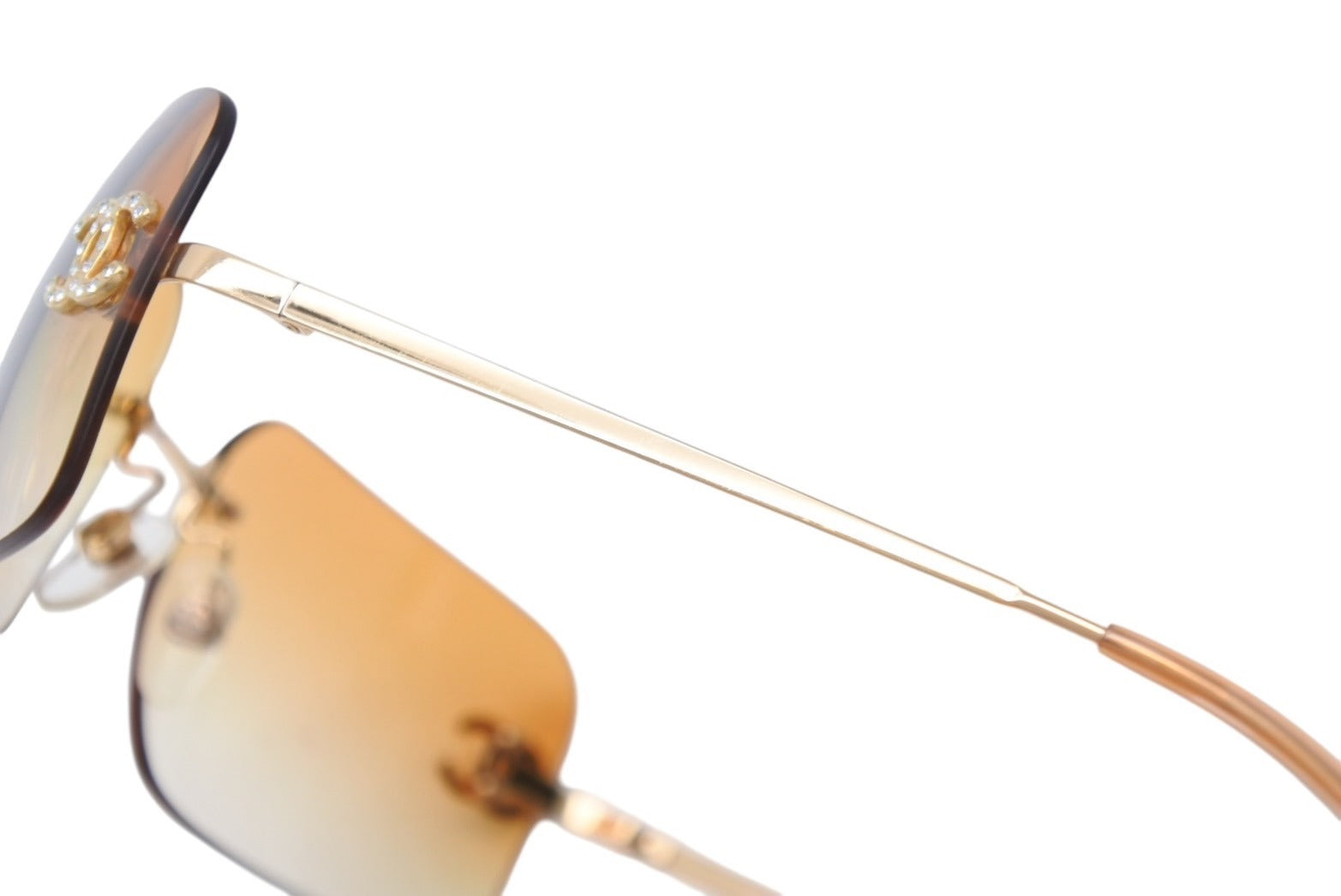 CHANEL シャネル リムレス サングラス 4017-D c.125/56 サイズ62□17 120 グラデーション オレンジ ココマーク ラインストーン 美品 中古 4c069633