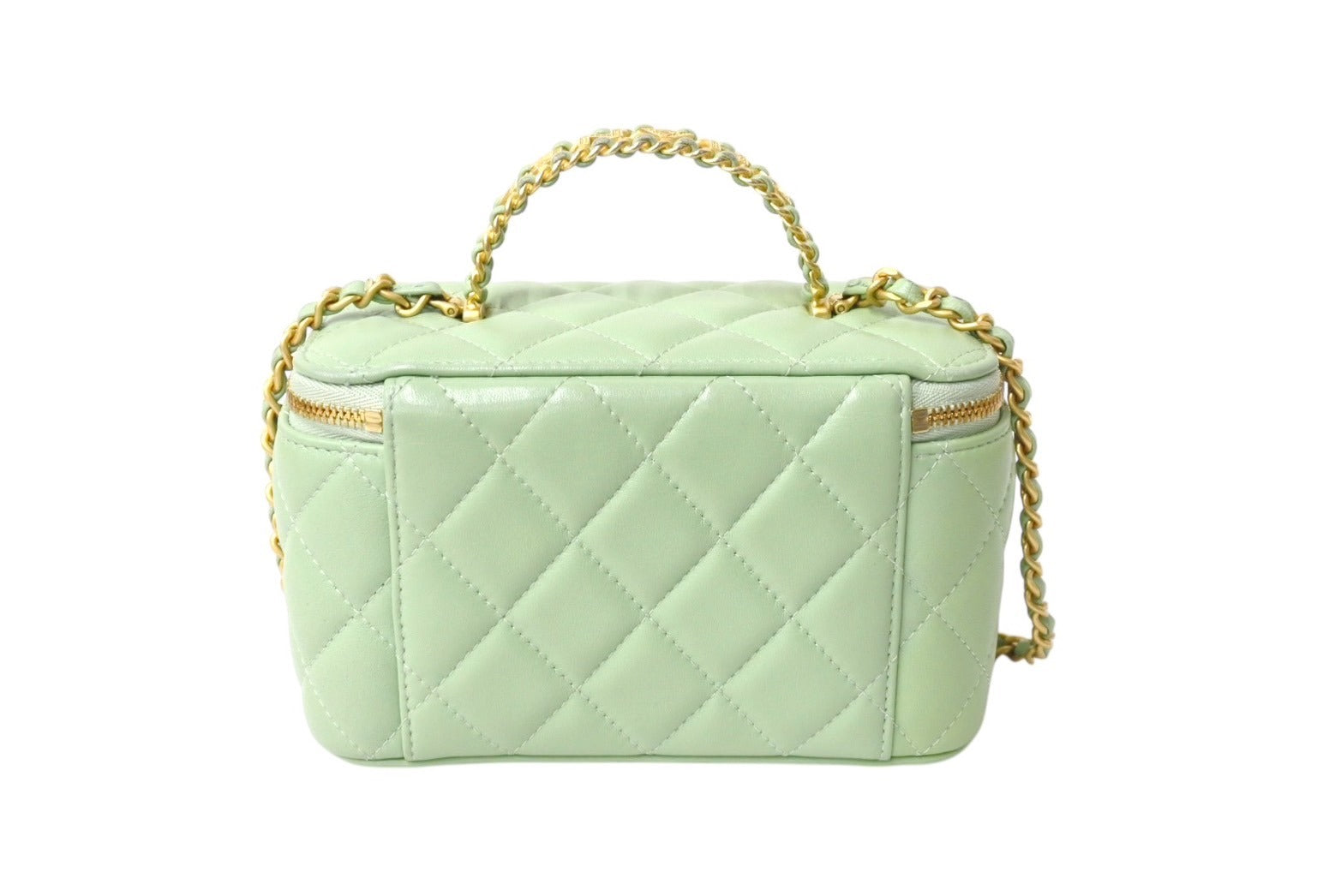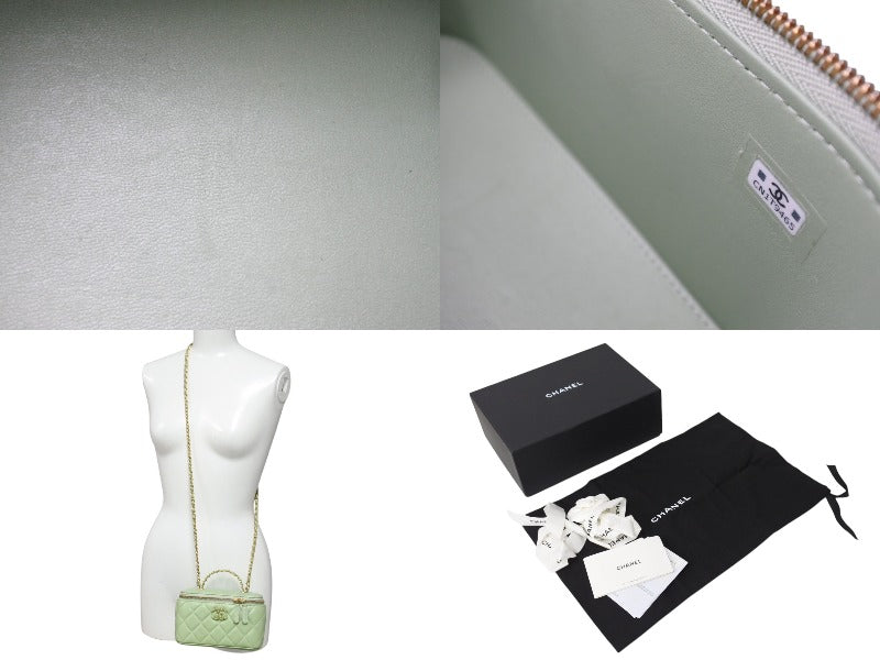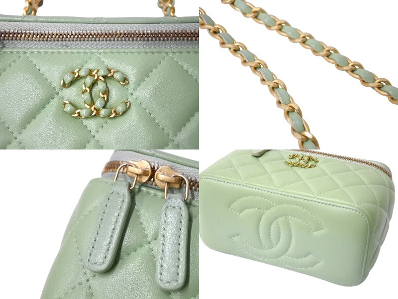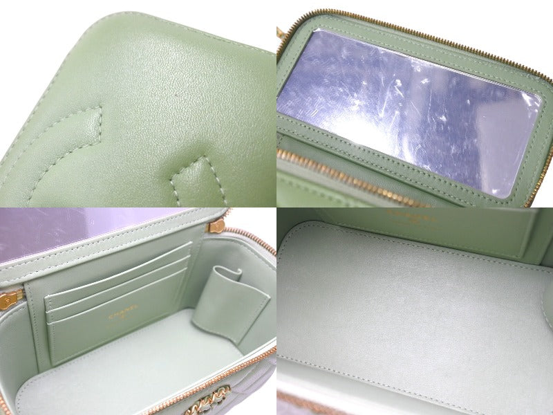 新品同様 CHANEL シャネル チェーンショルダーバッグ 2WAYバニティバッグ ココマーク ランダム番台 グリーン系 ラムスキン 中古 4c069796