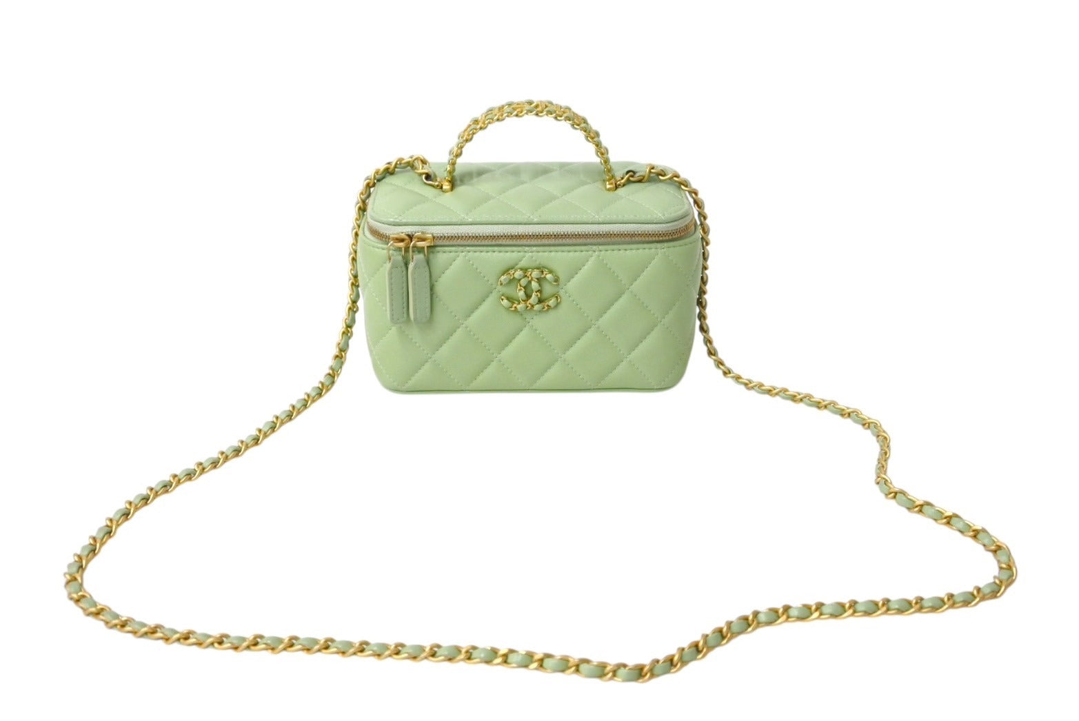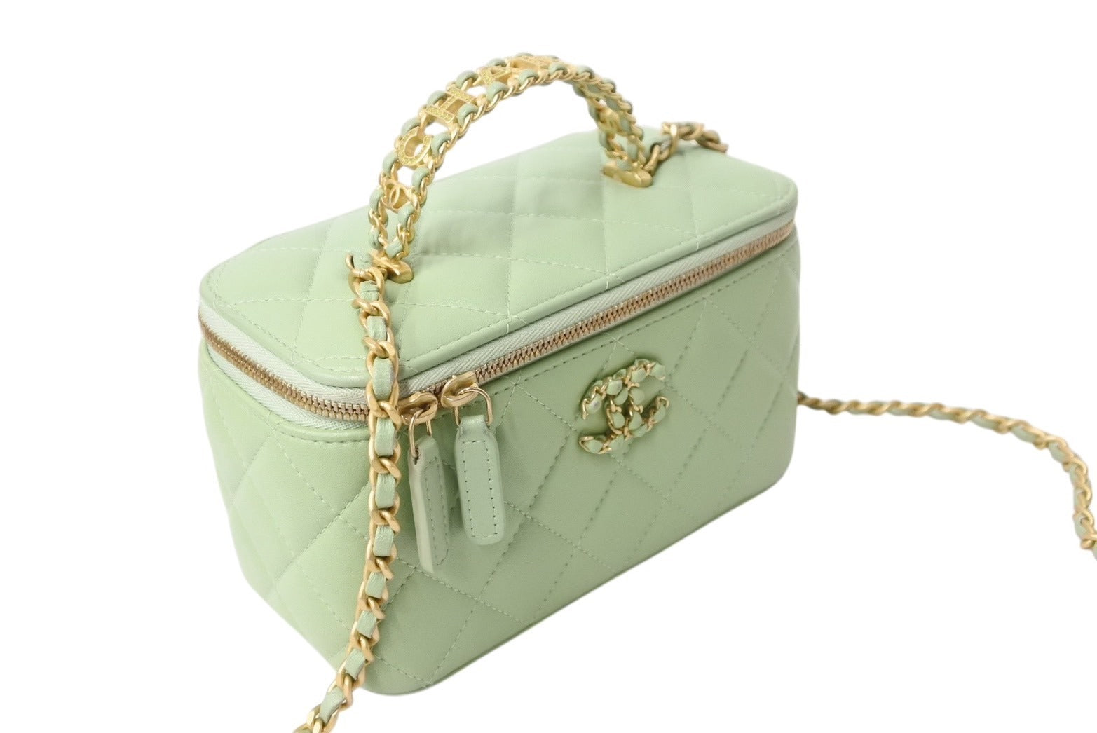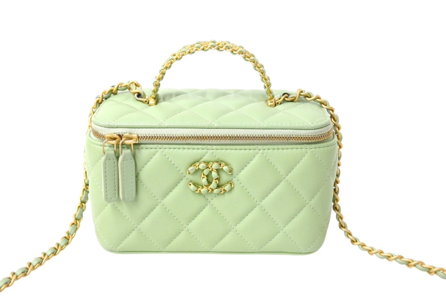 新品同様 CHANEL シャネル チェーンショルダーバッグ 2WAYバニティバッグ ココマーク ランダム番台 グリーン系 ラムスキン 中古 4c069796