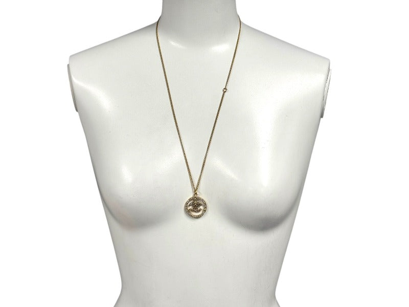 CHANEL シャネル ネックレス ココマーク サークルスウィング アクセサリー GP ラインストーン ゴールド 美品 中古 4c070365