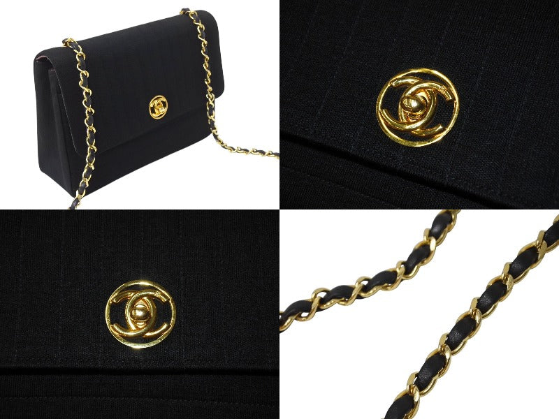 極美品 CHANEL シャネル マドモアゼル チェーンショルダーバッグ 1番台 ココマーク キャンバス レザー ブラック ゴールド金具 中古 4c070400