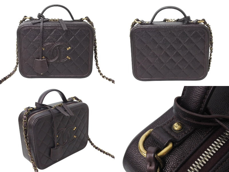 極美品 CHANEL シャネル マトラッセ 2WAY バニティ チェーンショルダー ハンドバッグ キャビアスキン ボルドー 26番台 中古 4c070927