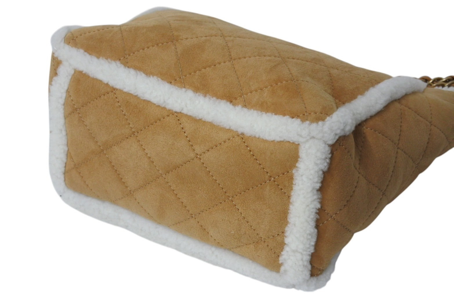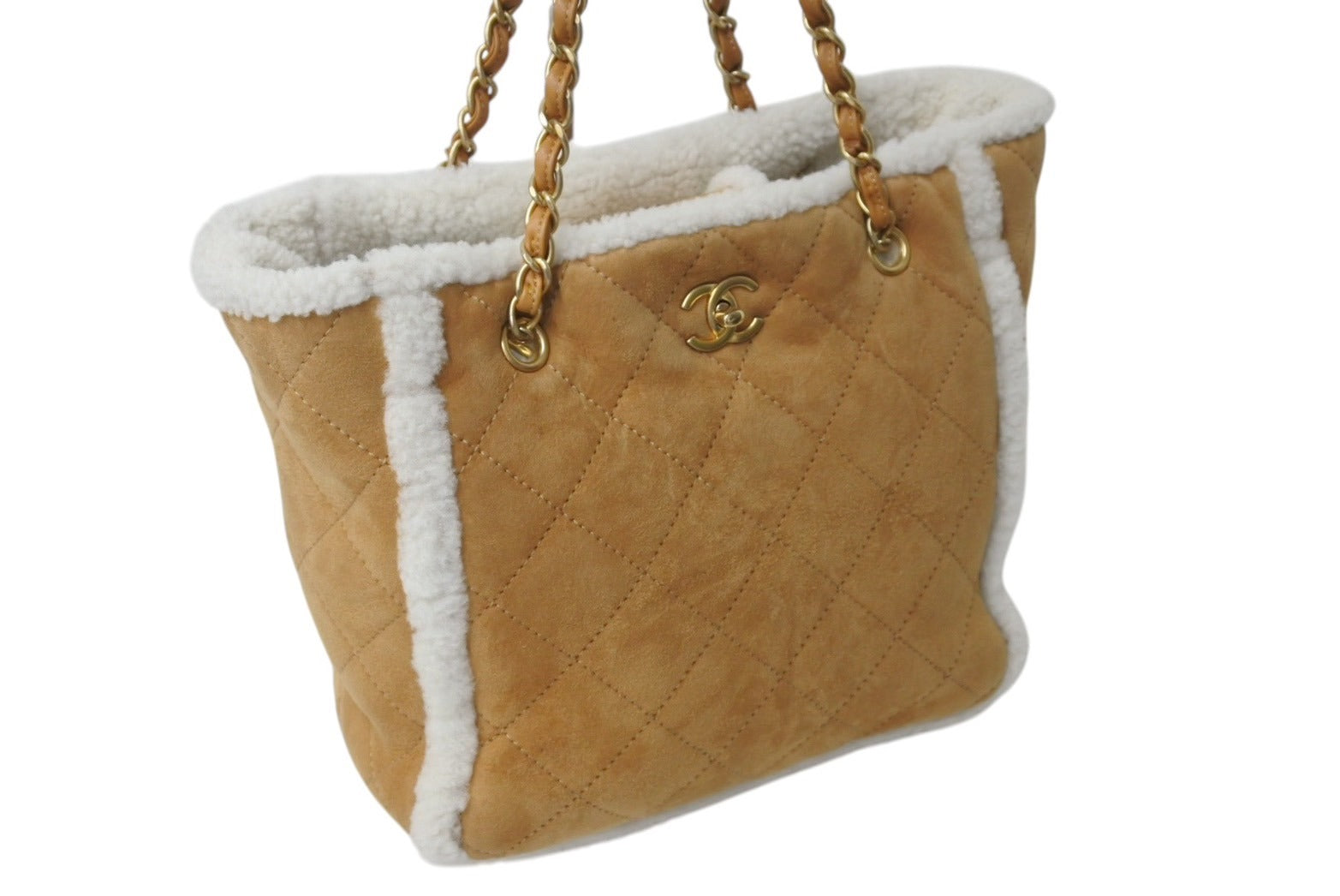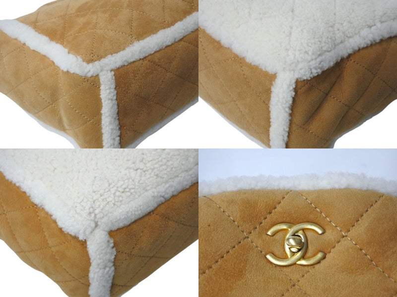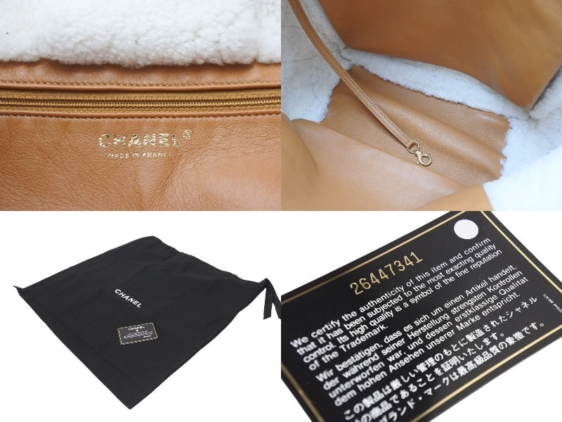 極美品 CHANEL シャネル マトラッセ チェーントートバッグ 26番台 ムートン レザー ブラウン ホワイト マットゴールド金具 中古 4c071183