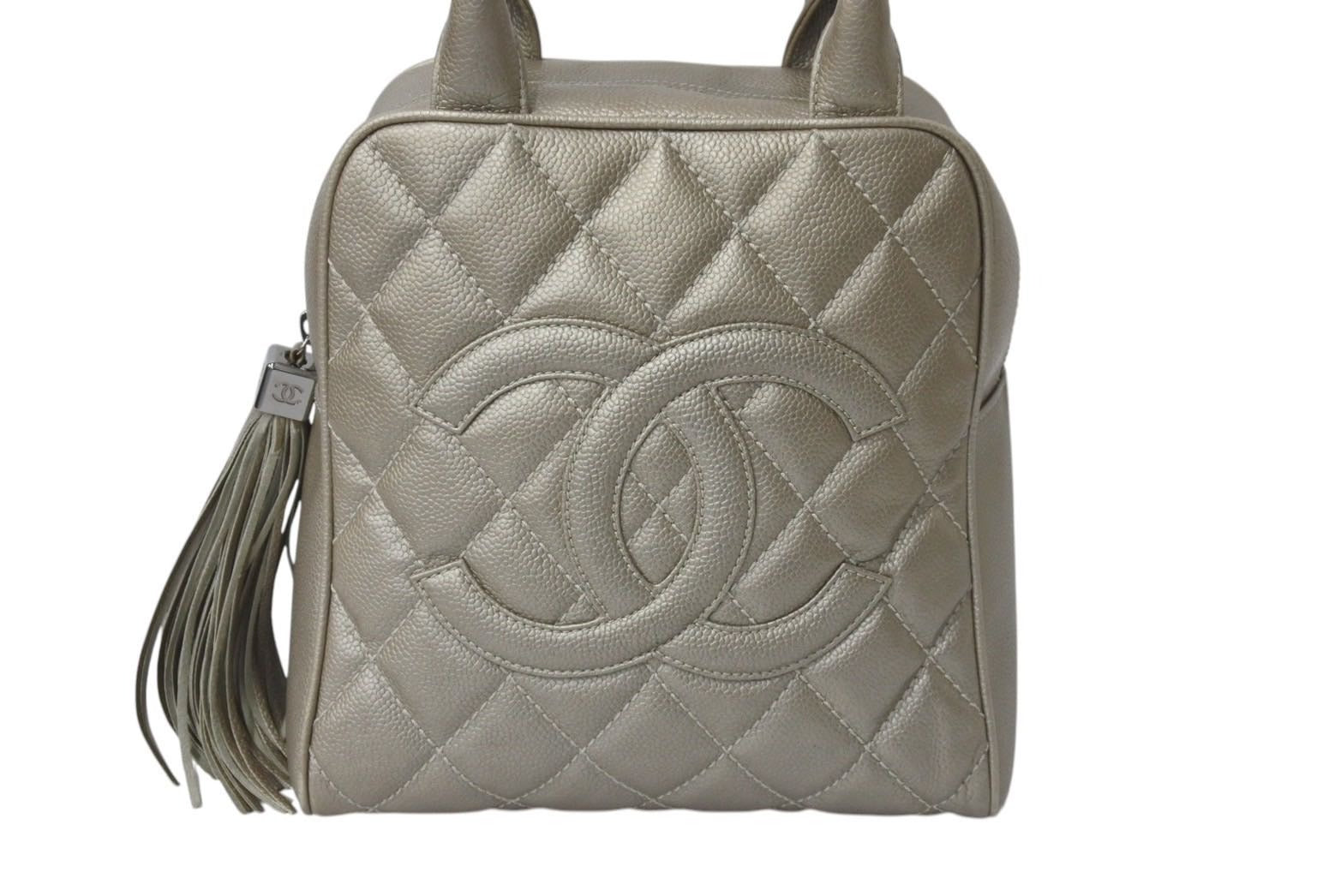 極美品 CHANEL シャネル マトラッセ タッセル ハンドバッグ ココマーク 9番台 キャビアスキン シルバー シルバー金具 中古 4c071886