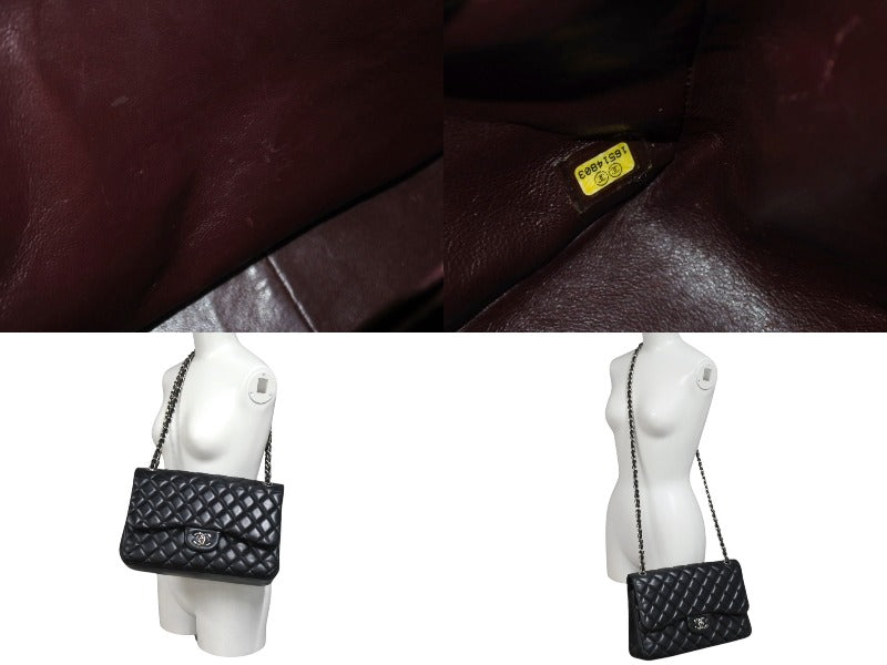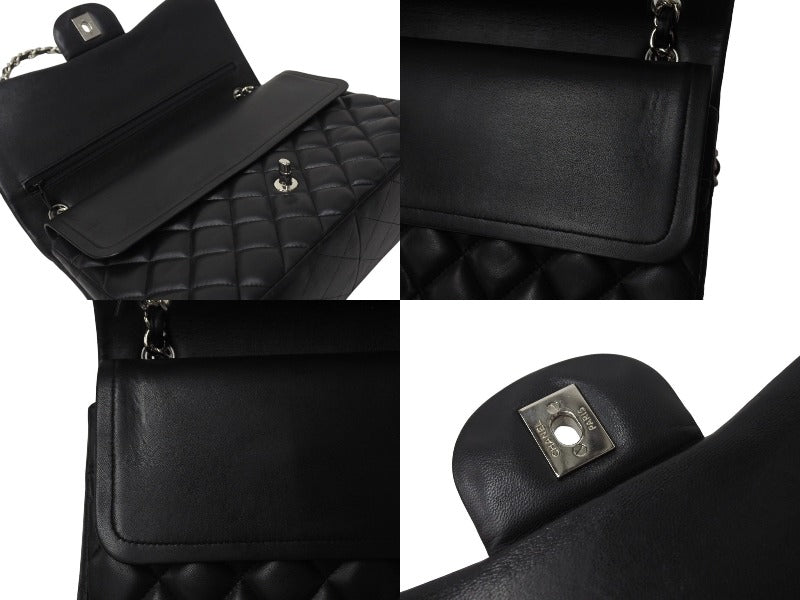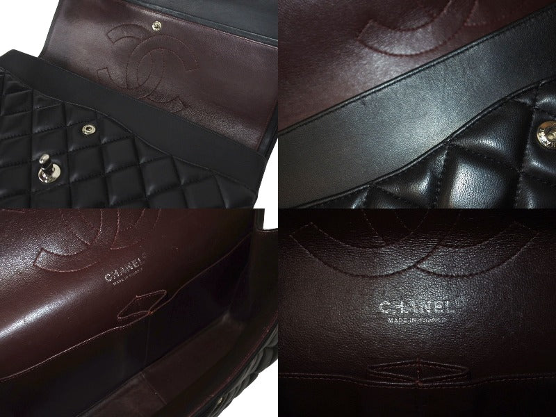 極美品 CHANEL シャネル チェーンショルダーバッグ マトラッセ30 Wフラップラップ ブラックシルバー 16番台 中古 4c071986