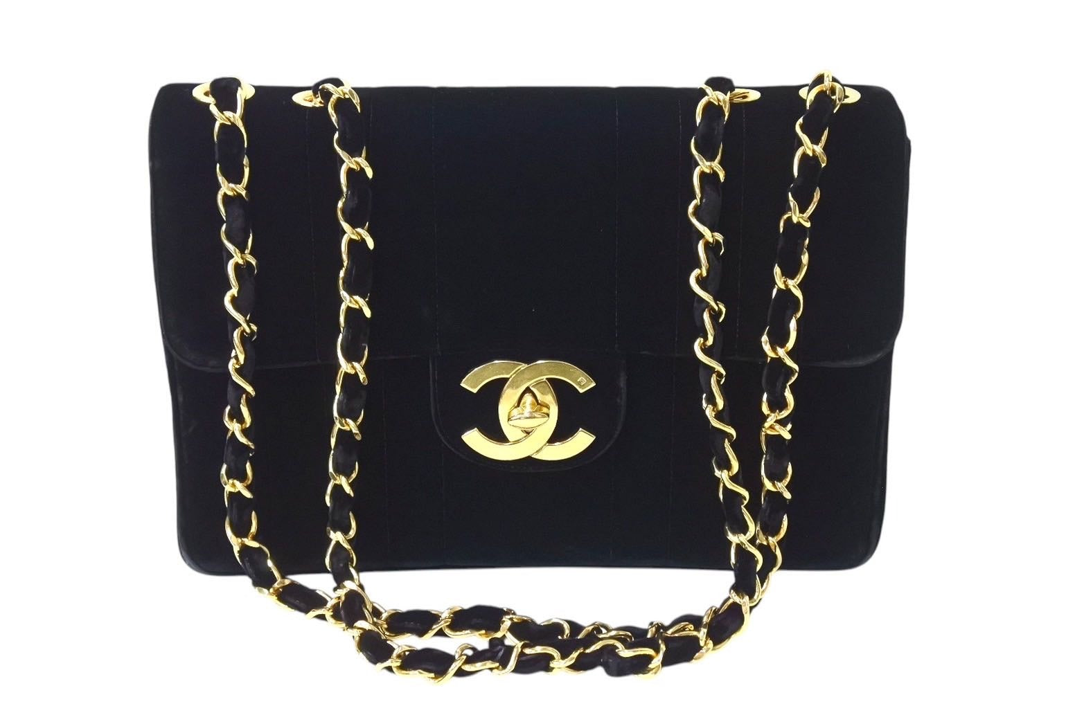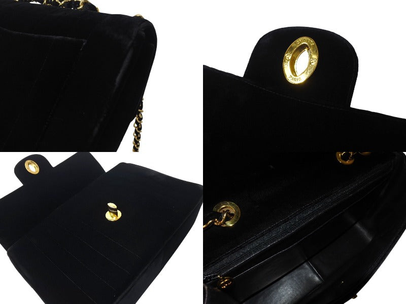 ベロア素材がエレガントなバッグです。ストライプのステッチとココマーク、ゴールドチェーンが華やかな逸品です。