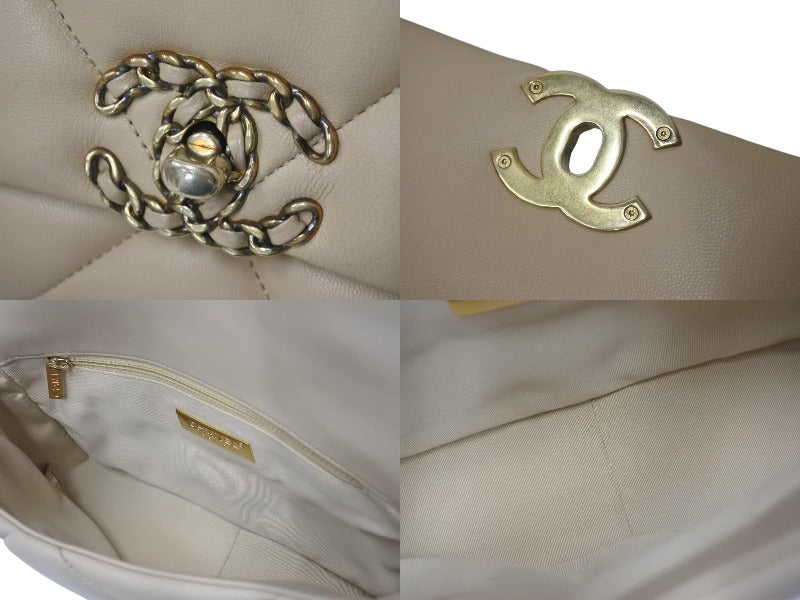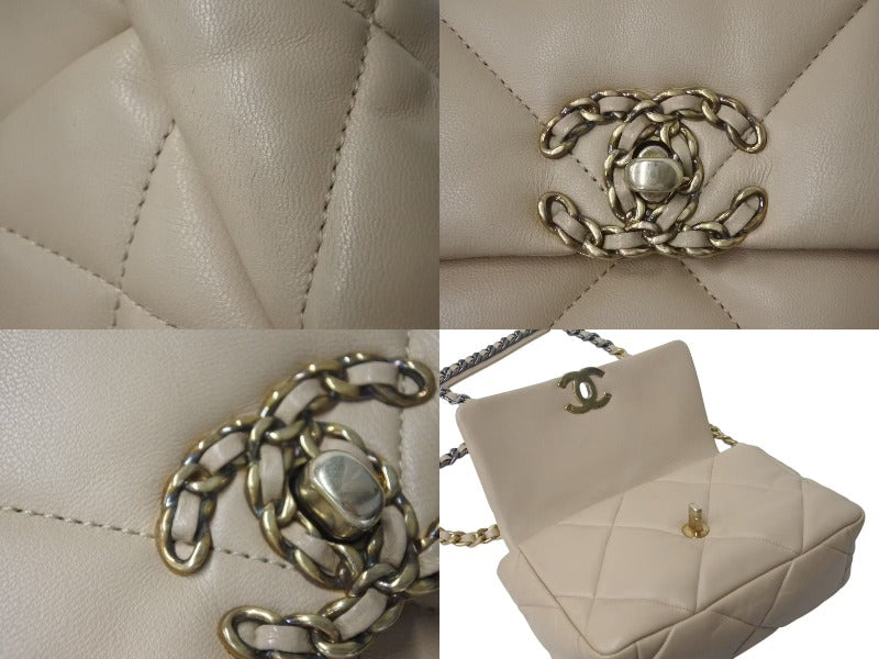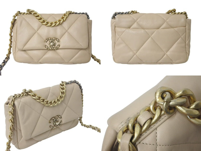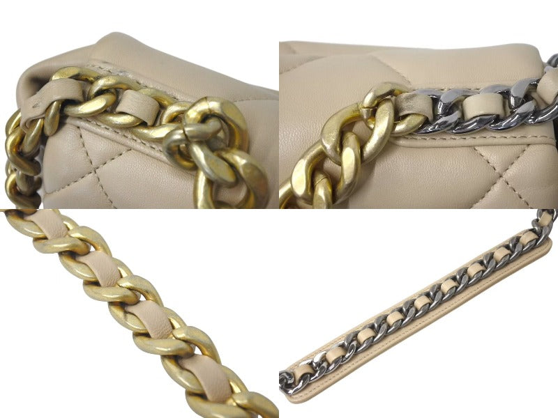 極美品 CHANEL シャネル19 2WAYシングルフラップマトラッセチェーンショルダーバッグ 30番台 ラムスキン ベージュ ゴールド 中古 4c073031