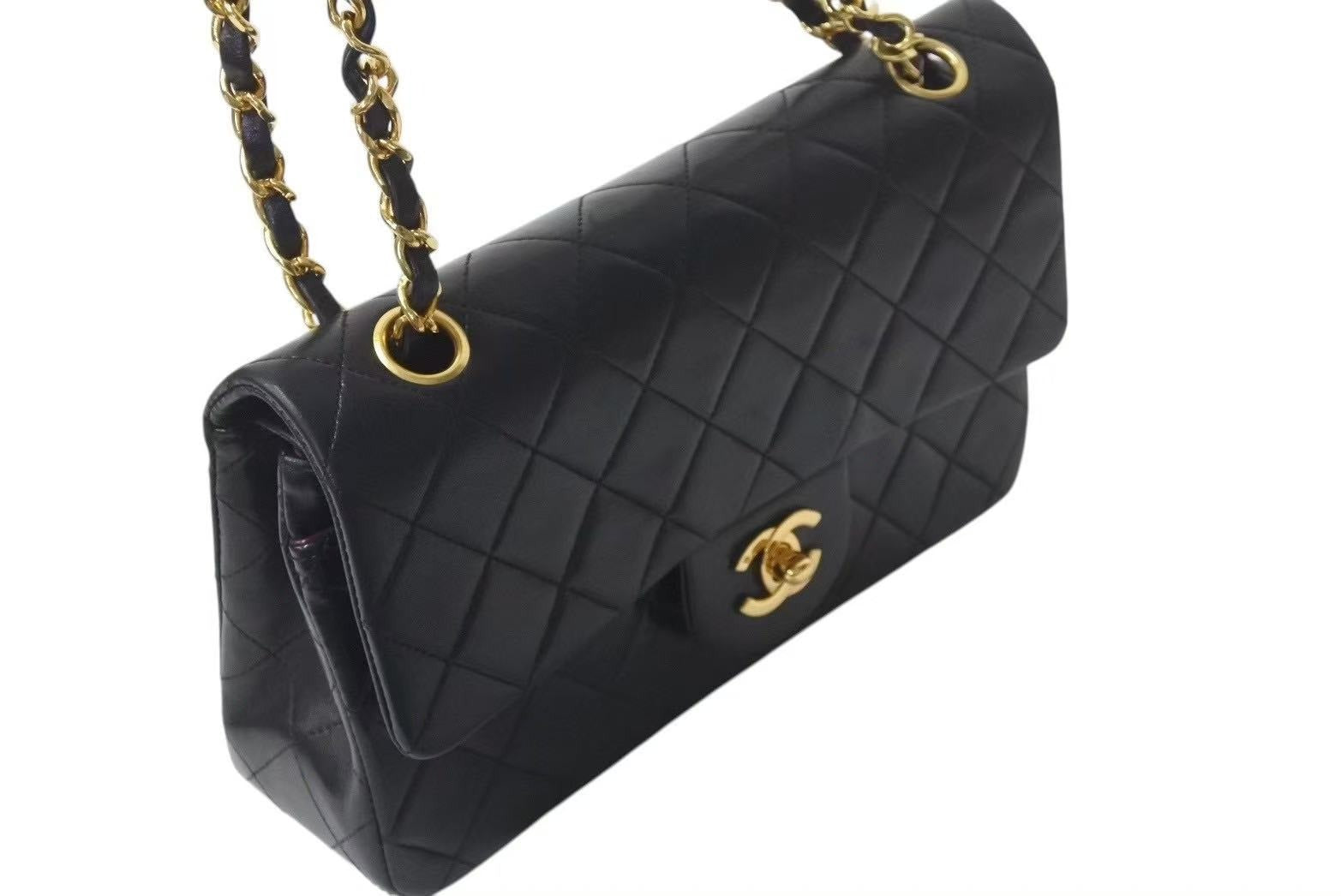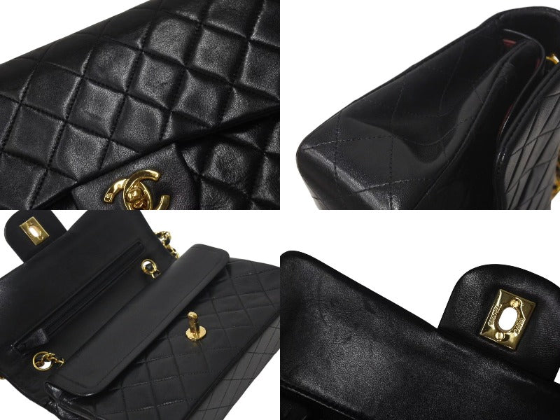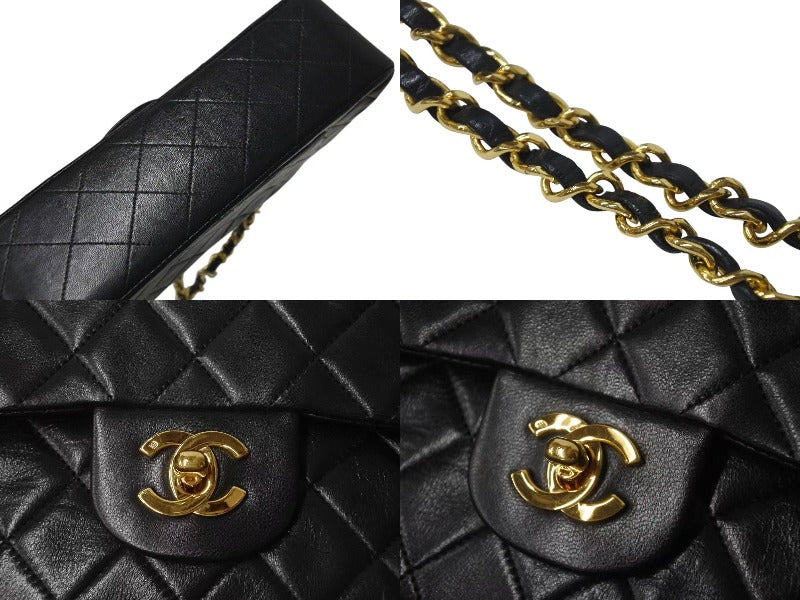 極美品 CHANEL シャネル マトラッセ23 Wフラップ チェーン ショルダーバッグ ラムスキン1番台 ブラック ゴールド金具 中古 4c073342