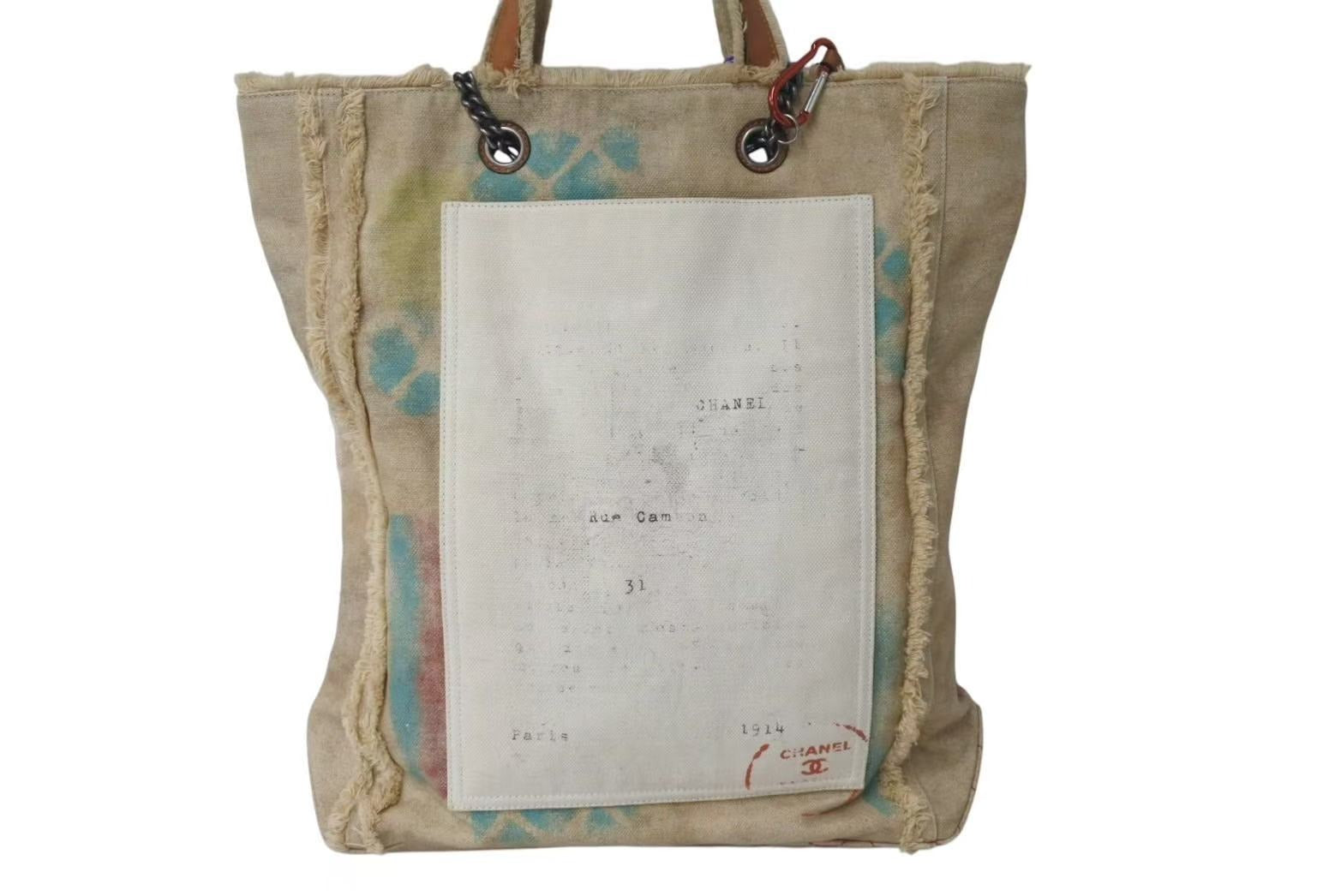 コットンキャンバス地にココマークや英字がペイントされていたり、エッジに施されたフリンジ加工がオリジナリティ溢れるデザインで、カジュアルでありながらもエレガントな雰囲気も兼ね合わせています。