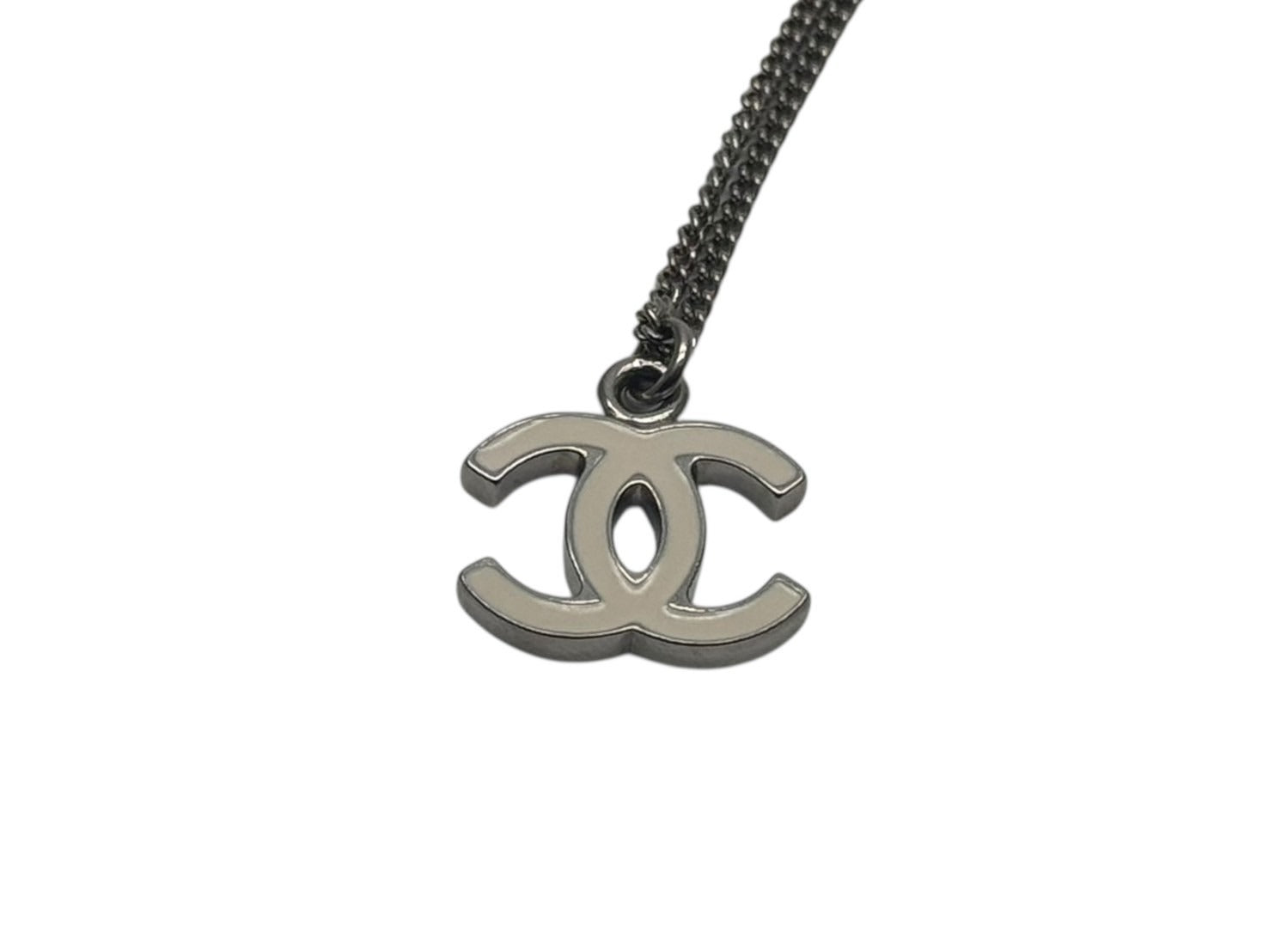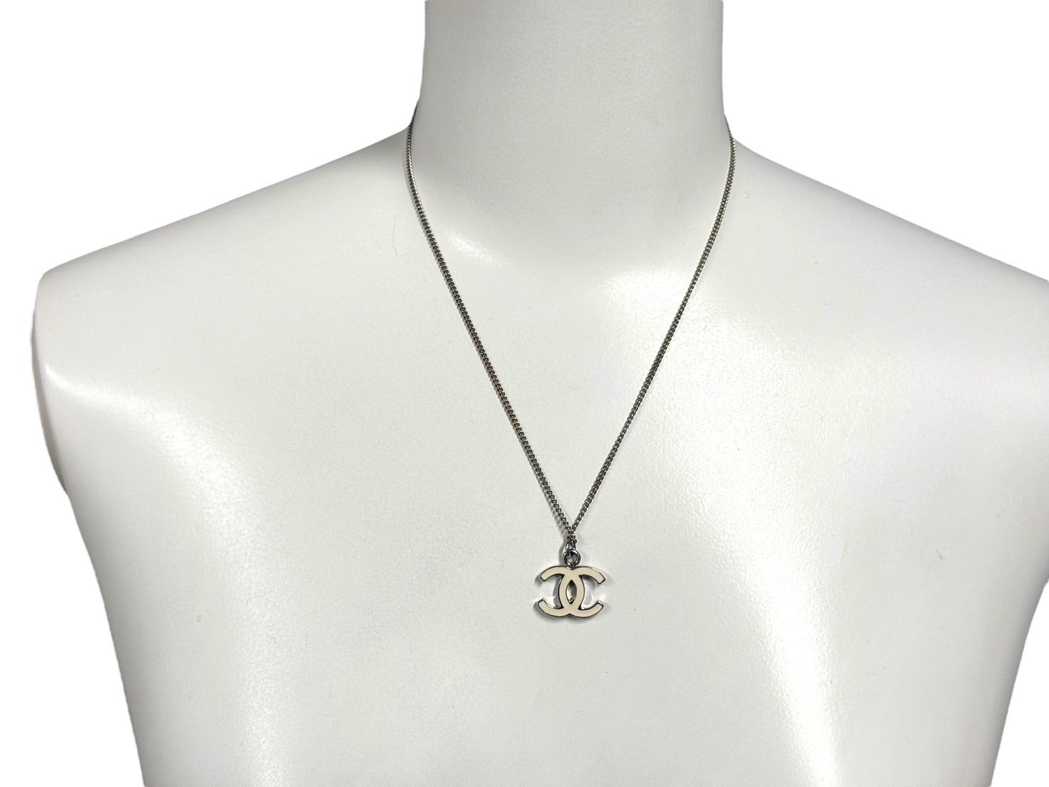 極美品 CHANEL シャネル 両面ココマーク ネックレス アクセサリー 07v刻印 メタル シルバー アイボリー 中古 4c074883