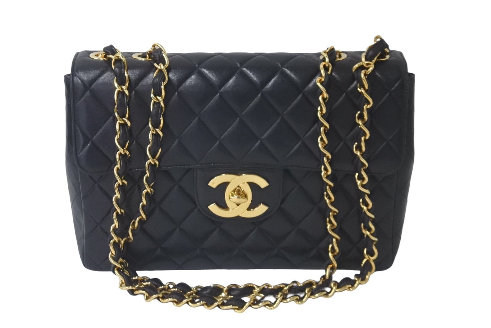 CHANEL シャネル チェーンショルダーバッグ デカマトラッセ 30 4番台 ラムスキン ブラック ゴールド金具 美品 中古 60480