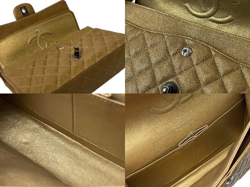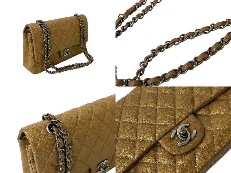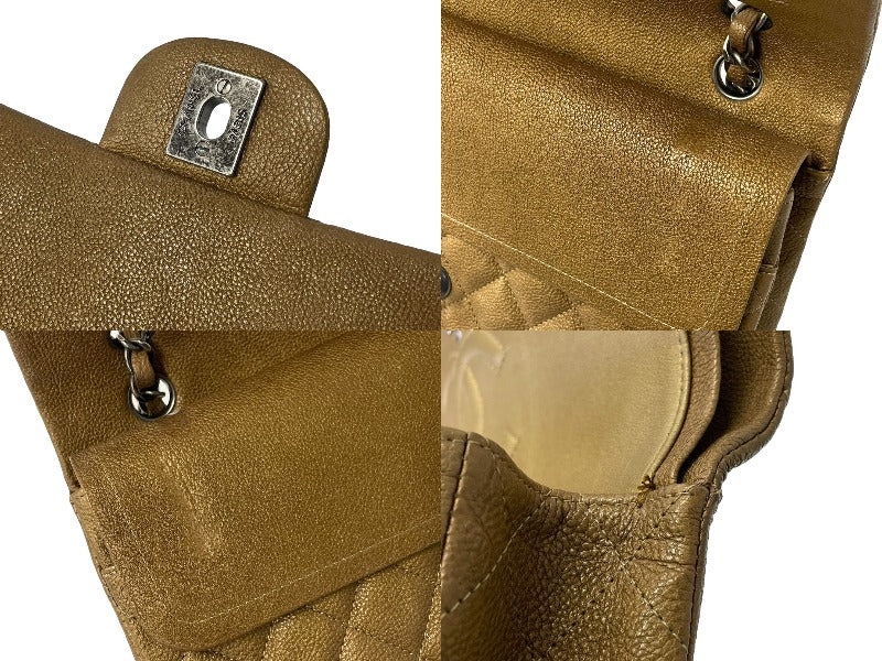 極美品 CHANEL シャネル Wフラップマトラッセ 25cm ショルダーバッグ ブロンズ ソフトキャビア 17番台 中古 61624