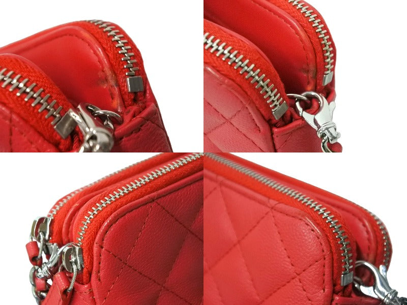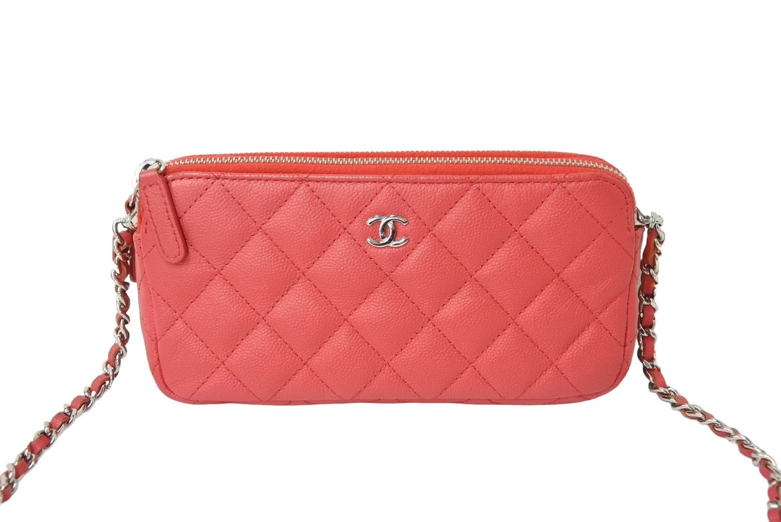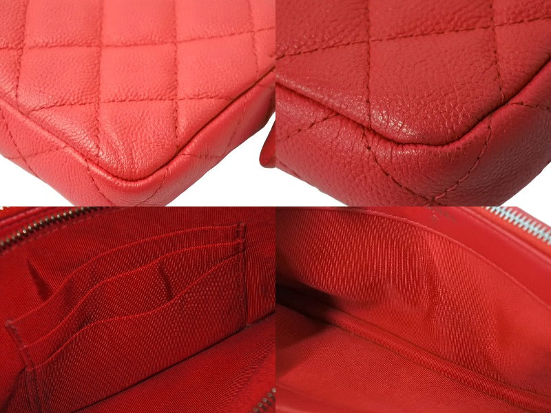CHANEL シャネル 長財布 チェーンウォレット ココマーク 25番台 レッド キャビアスキン シルバー金具 美品 中古 62827