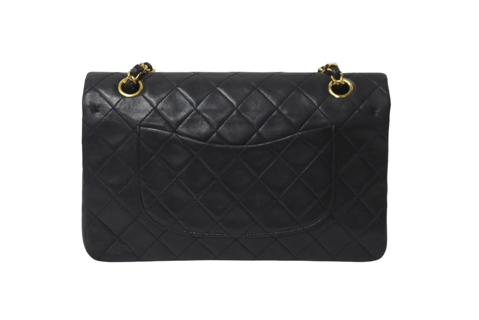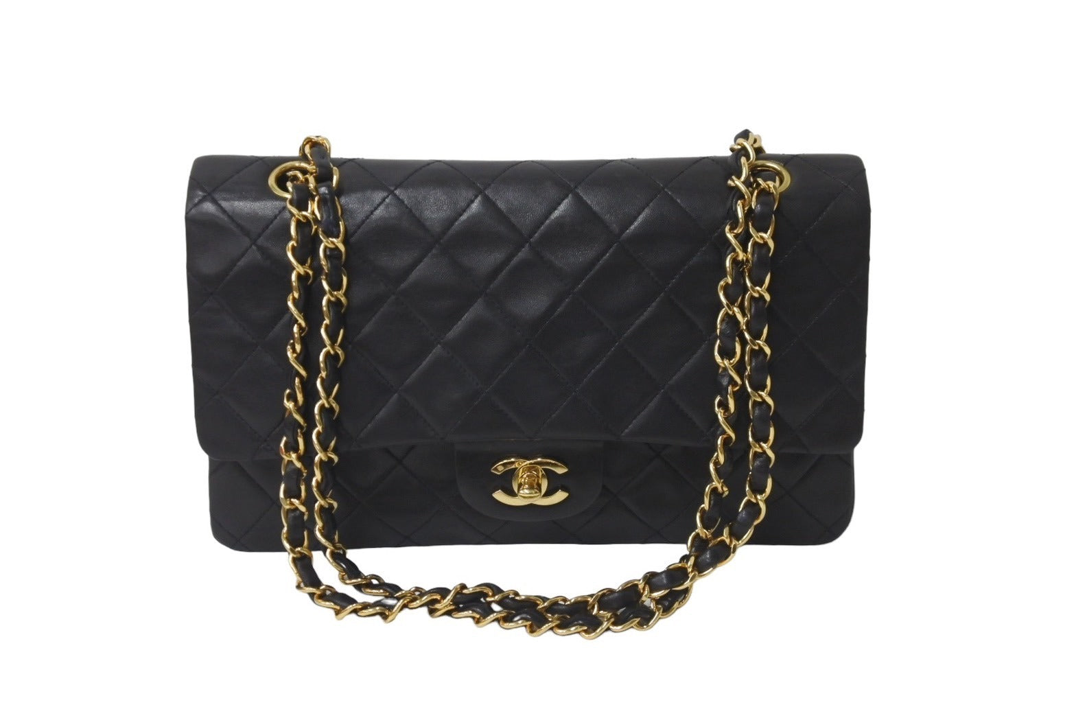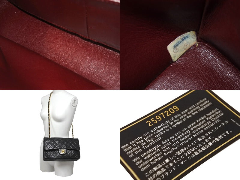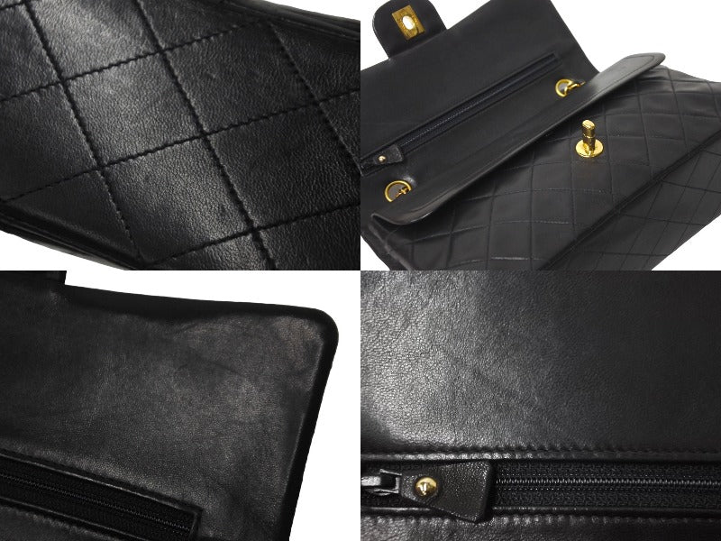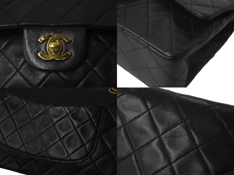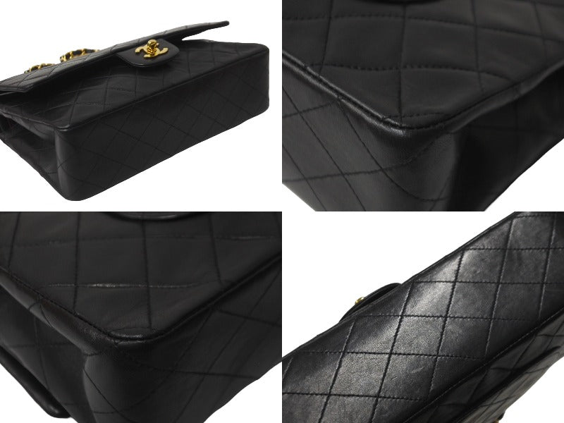 CHANEL シャネル チェーンショルダーバッグ Wフラップ マトラッセ25 ラムスキン 2番台 ブラック ゴールド金具 美品 中古 63471