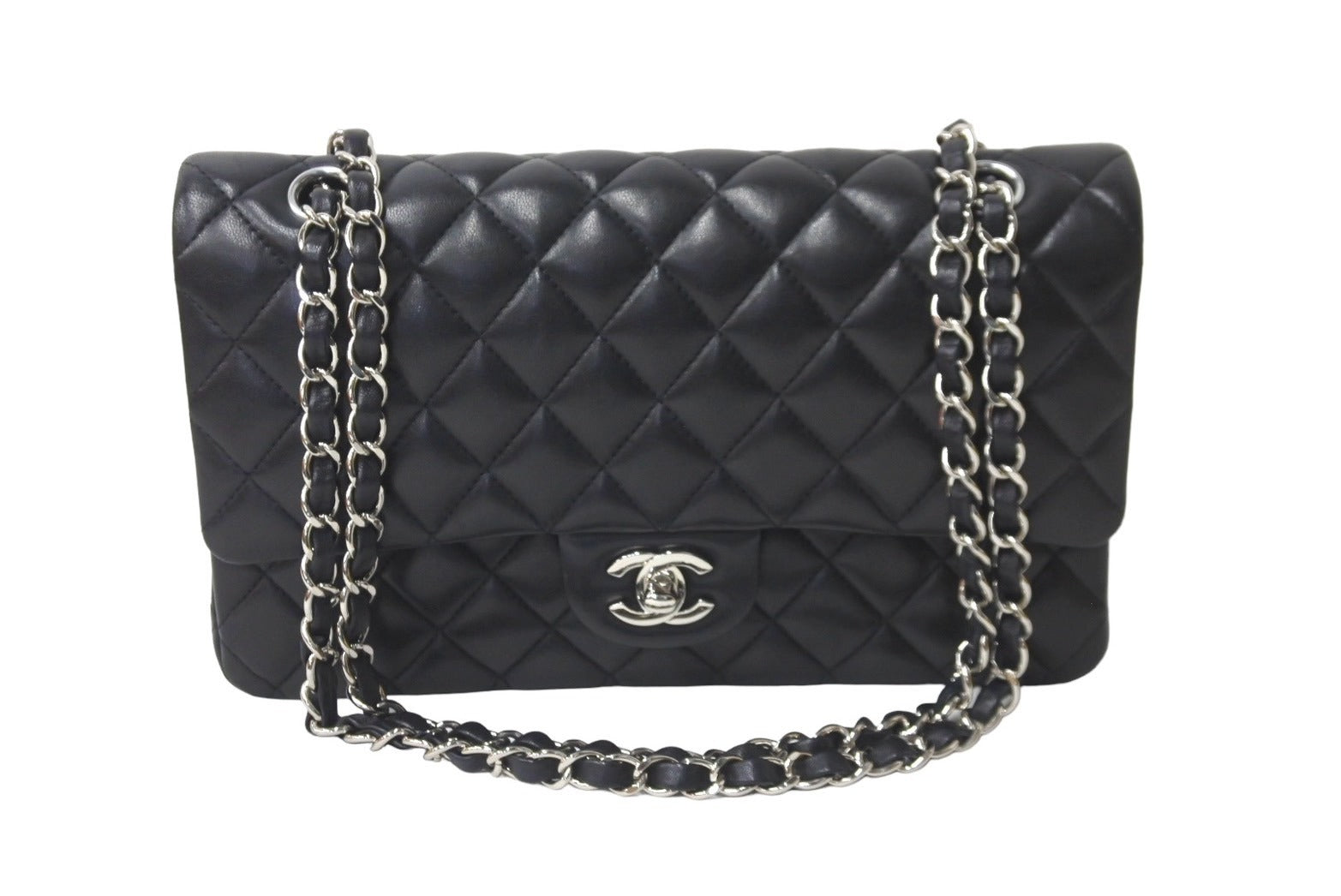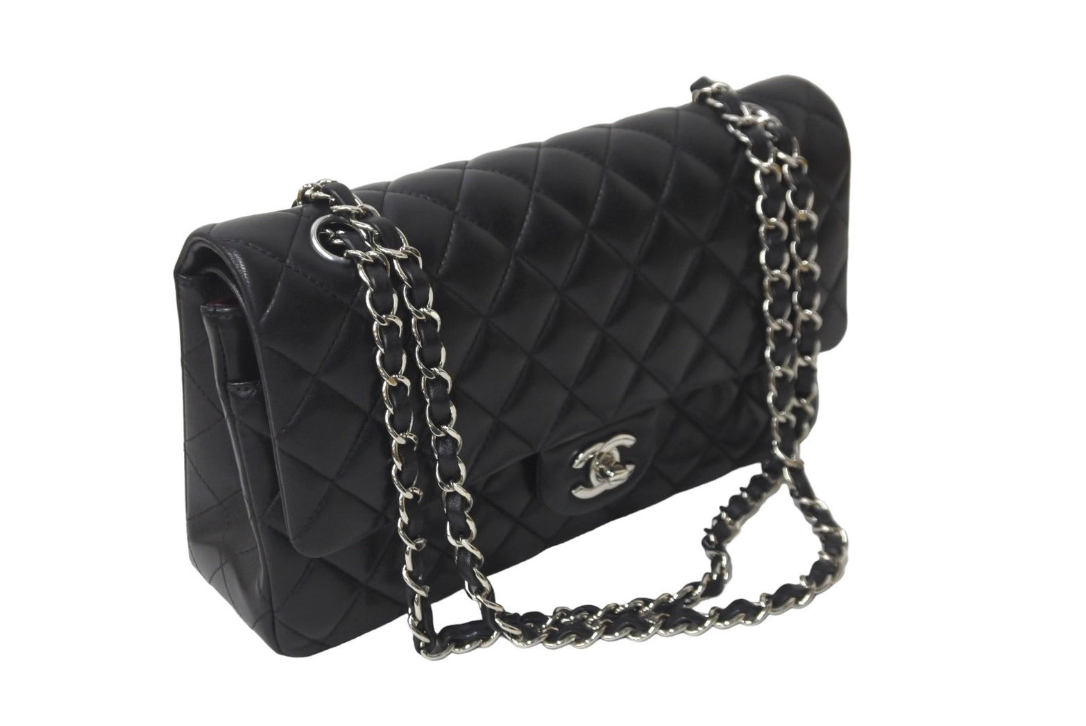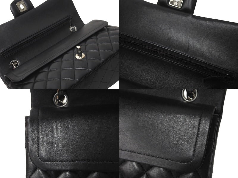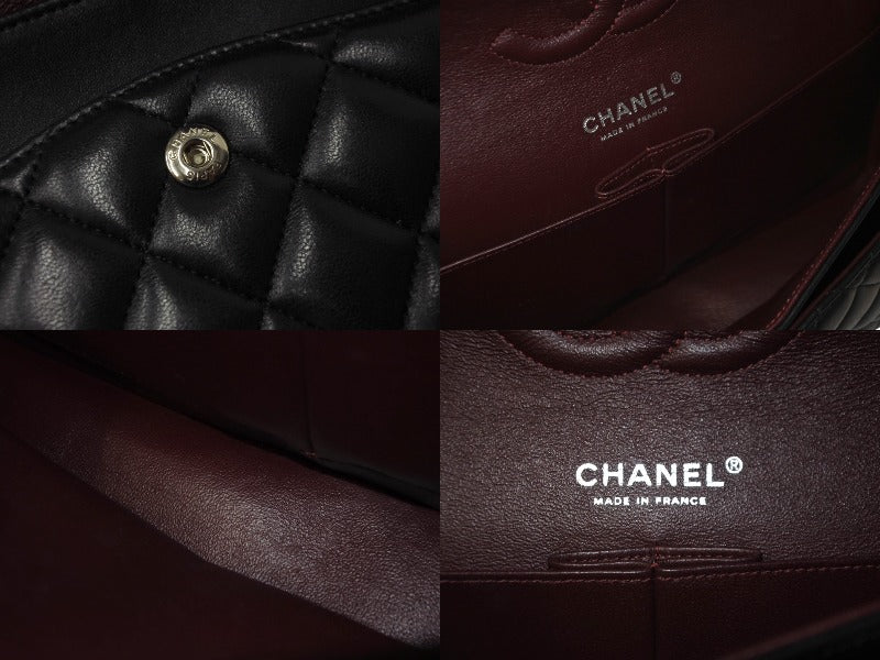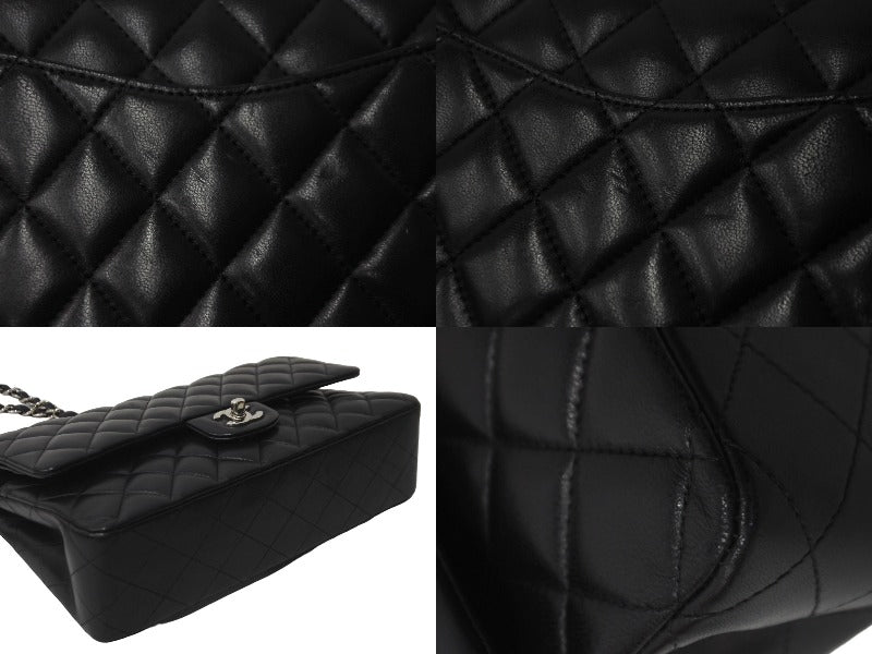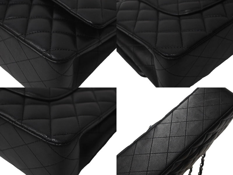 極美品 CHANEL マトラッセWフラップチェーンショルダー 23番台 25cm ショルダーバッグ ブラック シルバー金具 ラムスキン 中古 63486