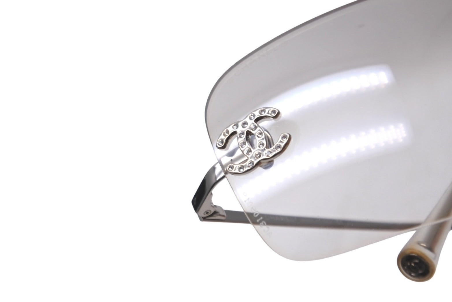 極美品 CHANEL シャネル サングラス サイズ62▫︎17 120 ココマーク ラインストーン シルバー クリア 4017-D c.159/6I 中古 63530