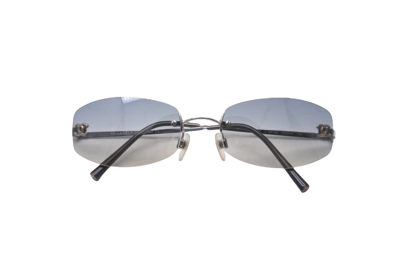 極美品 CHANEL シャネル リムレスサングラス ココマーク 4002 c.124/55 ブルー シルバー金具 サイズ57▫︎19 130 中古 63534