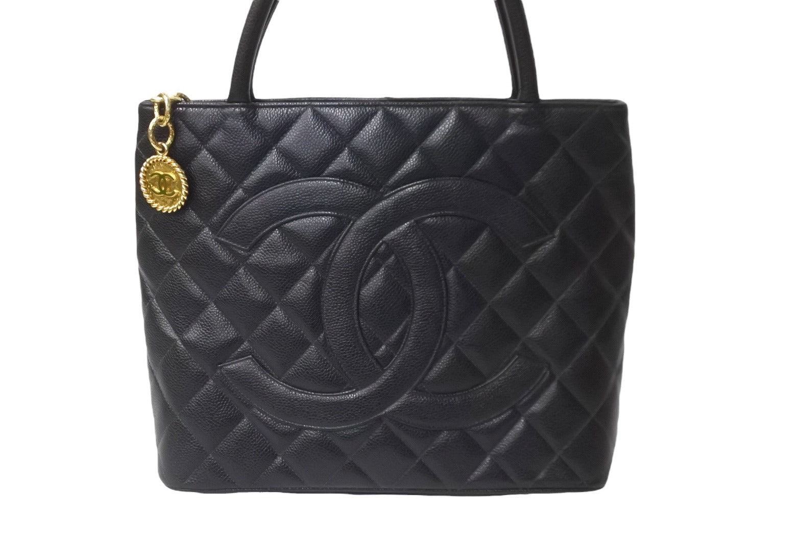 極美品 CHANEL シャネル ハンドバッグ 復刻トート キャビアスキン マトラッセ ココマーク 9番台 ゴールド金具 中古 64073