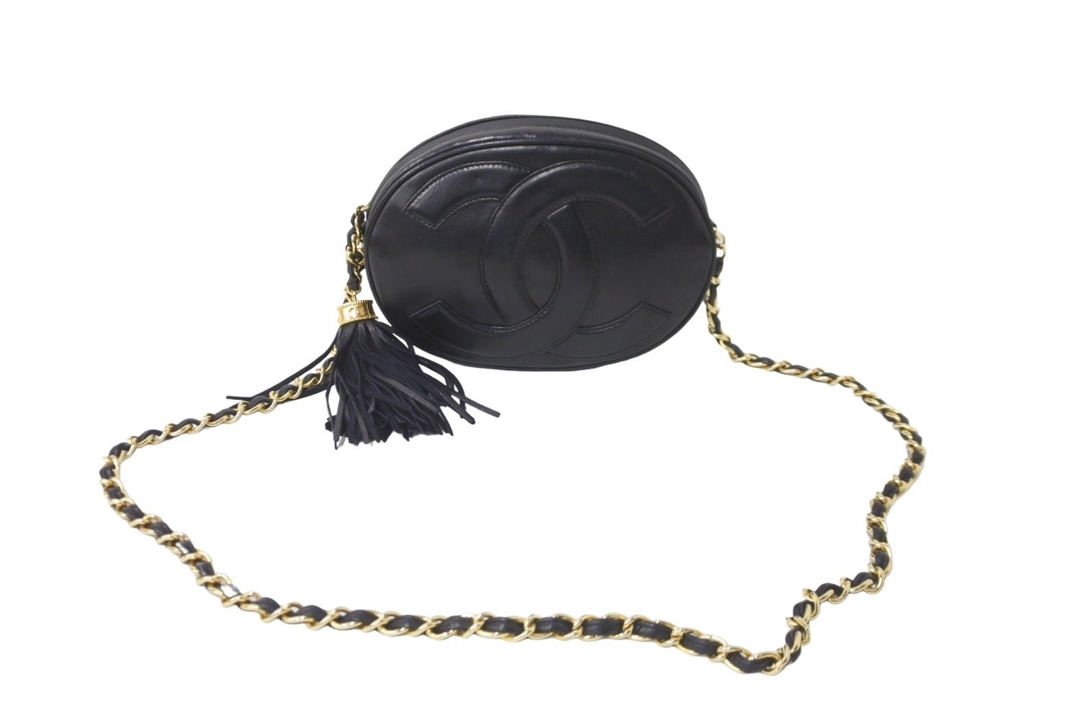 楕円型の全体に大きなココマークが縫い付けられたヴィンテージシャネルらしいデザインのアイテムです。