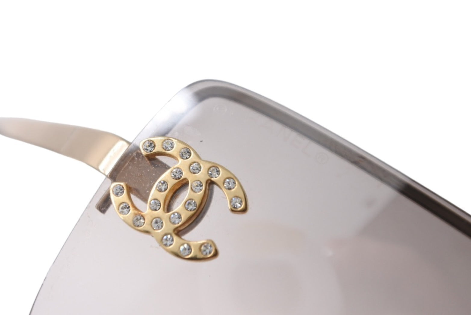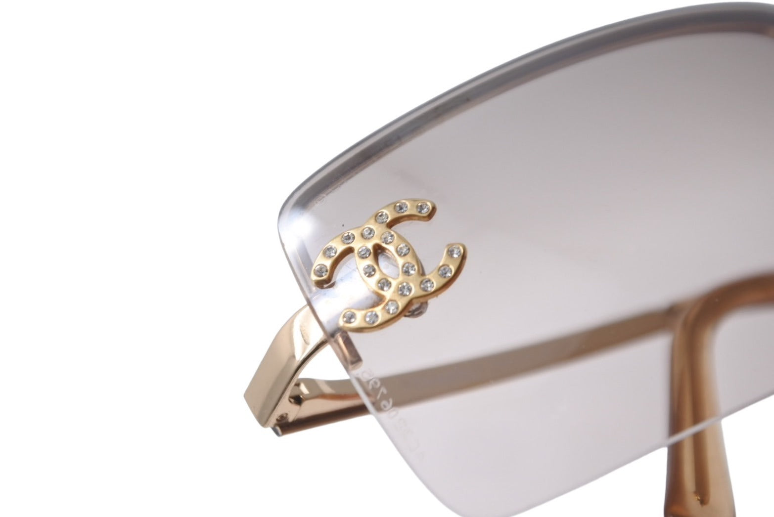 極美品 CHANEL シャネル サングラス ココマーク リムレス 62◻︎15 120 4104-B c.125/8Z GP ブラウン ゴールド金具 中古 64471