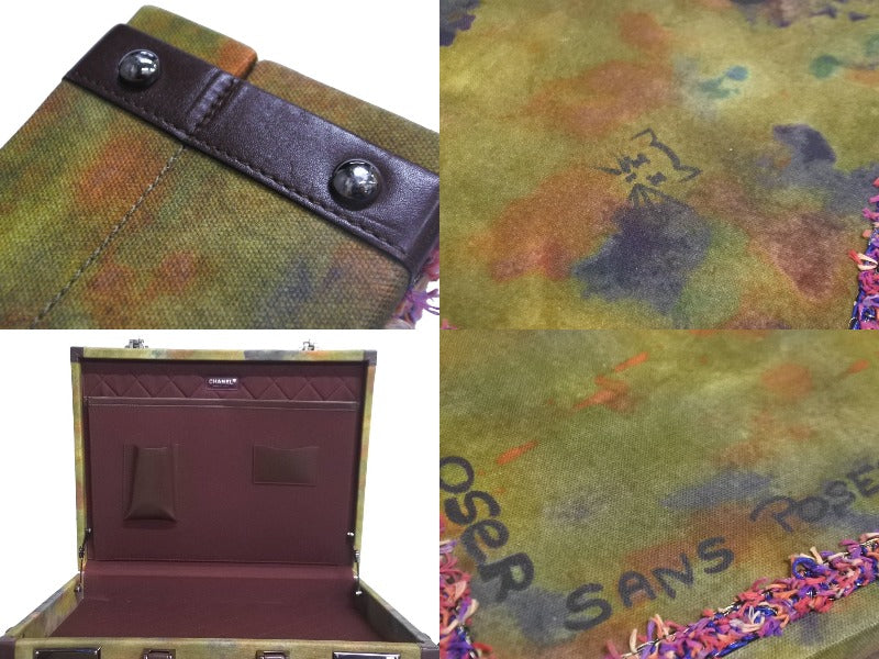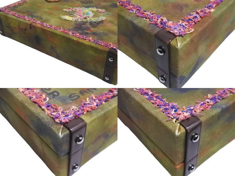 激レア 極美品 CHANEL シャネル エンブロイダリー グラフィティ 2WAYトランク ココマーク 21番台 カーキ ツイード 中古 64481