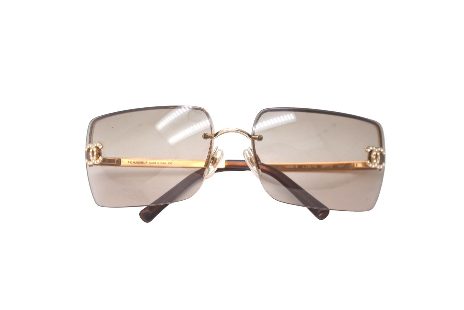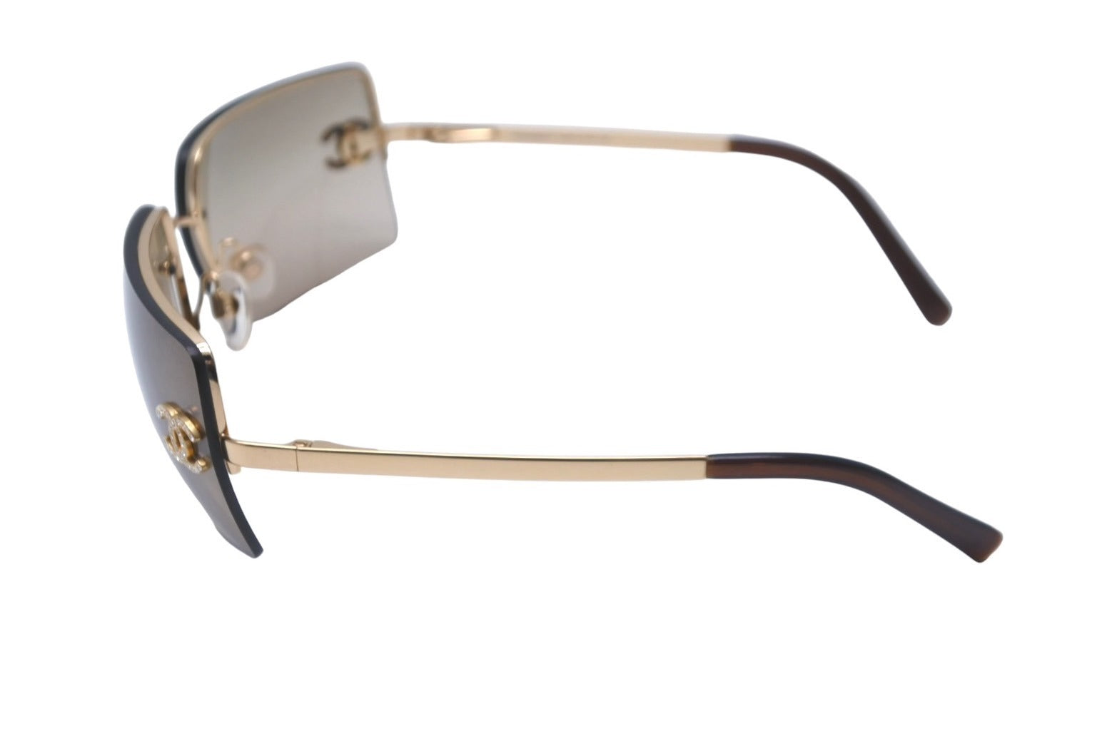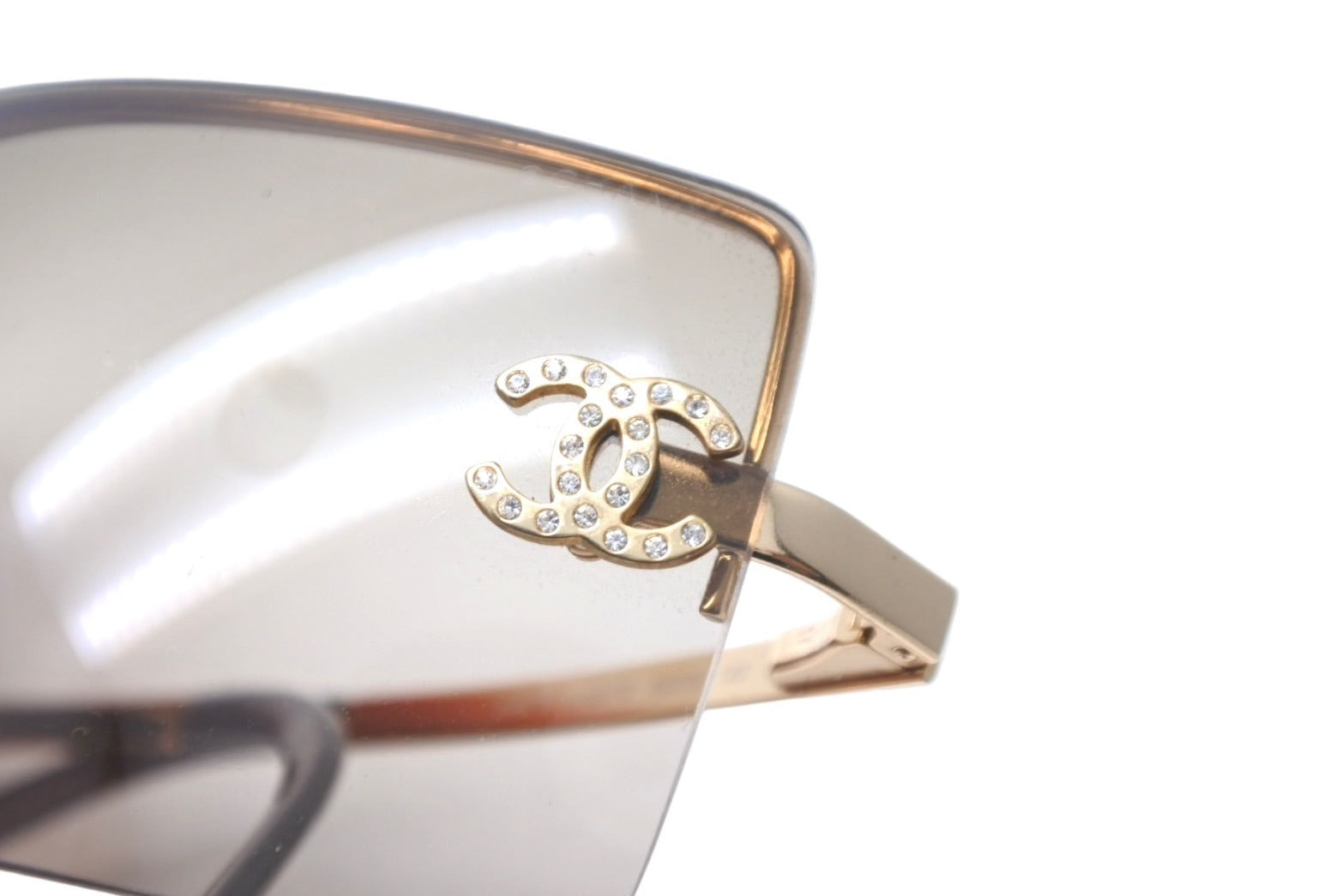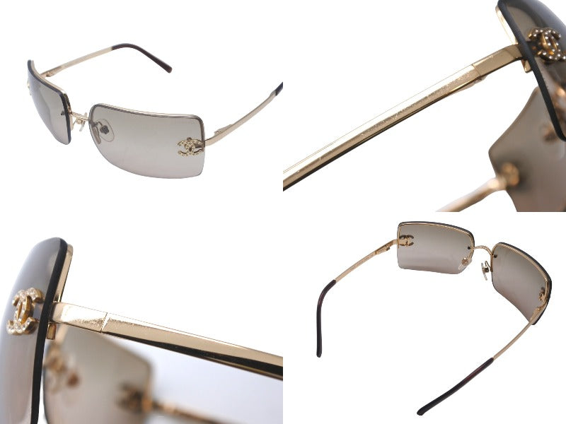 CHANEL シャネル リムレス グラデーション サングラス ブラウン ココマーク ラインストーン ゴールド アイウェア メタル 小物 62☐15 4092-B 美品 中古 64612