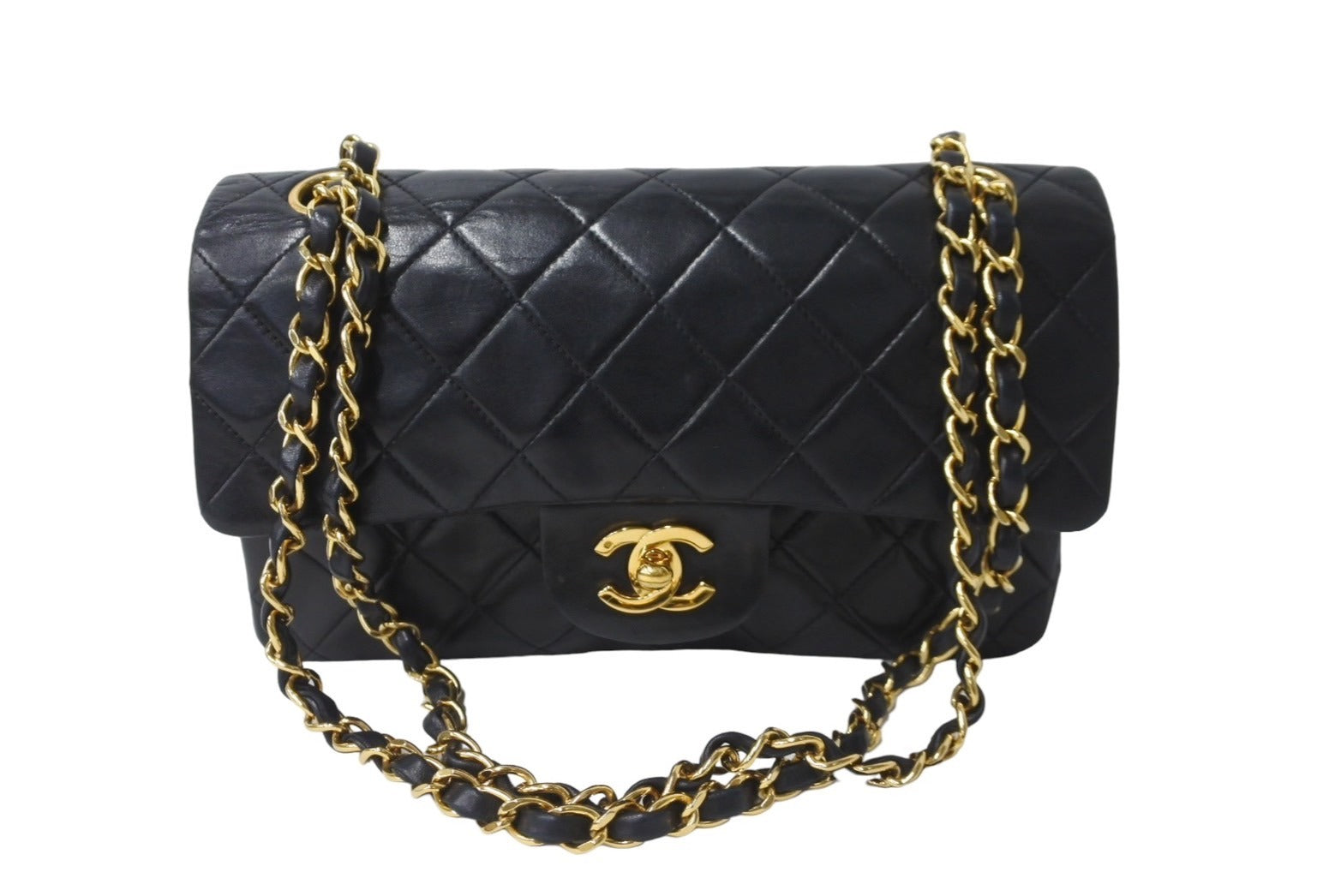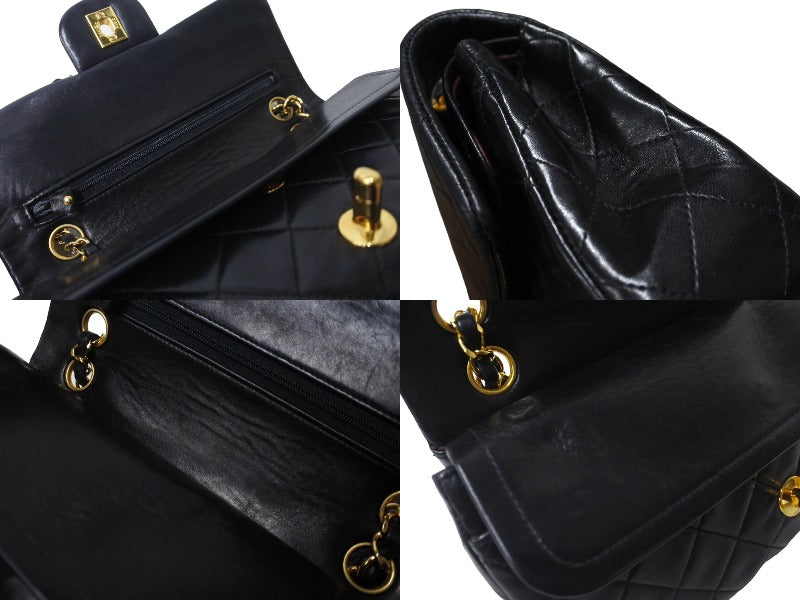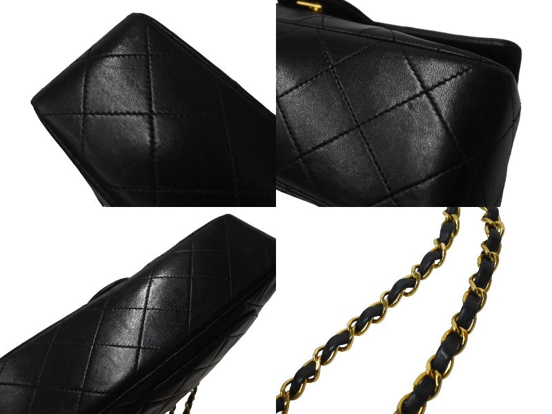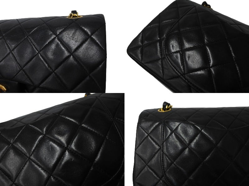 CHANEL シャネル チェーンショルダーバッグ Wフラップ マトラッセ 23cm ココマーク ラムスキン 2番台 ブラック ゴールド金具 美品 中古 64939
