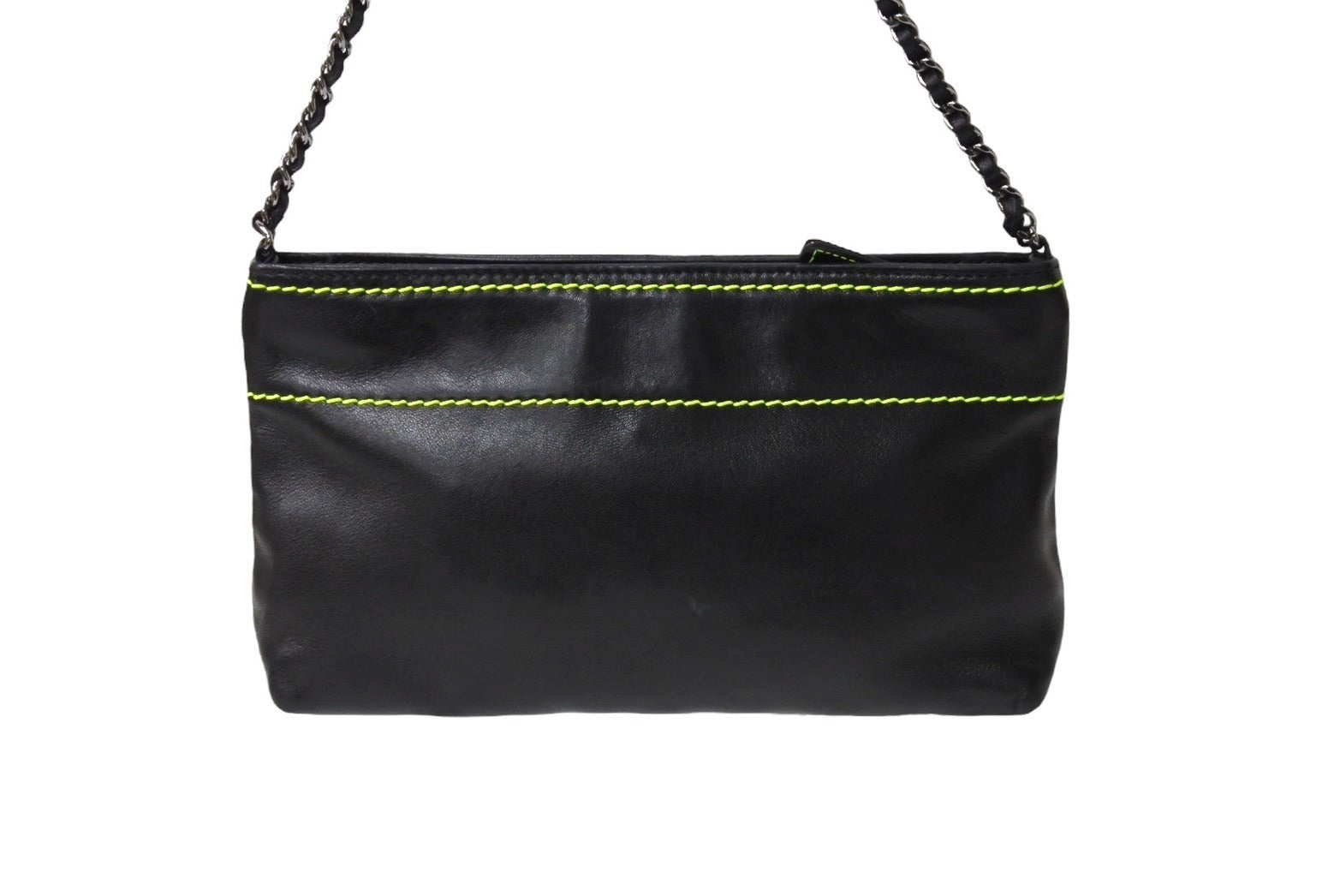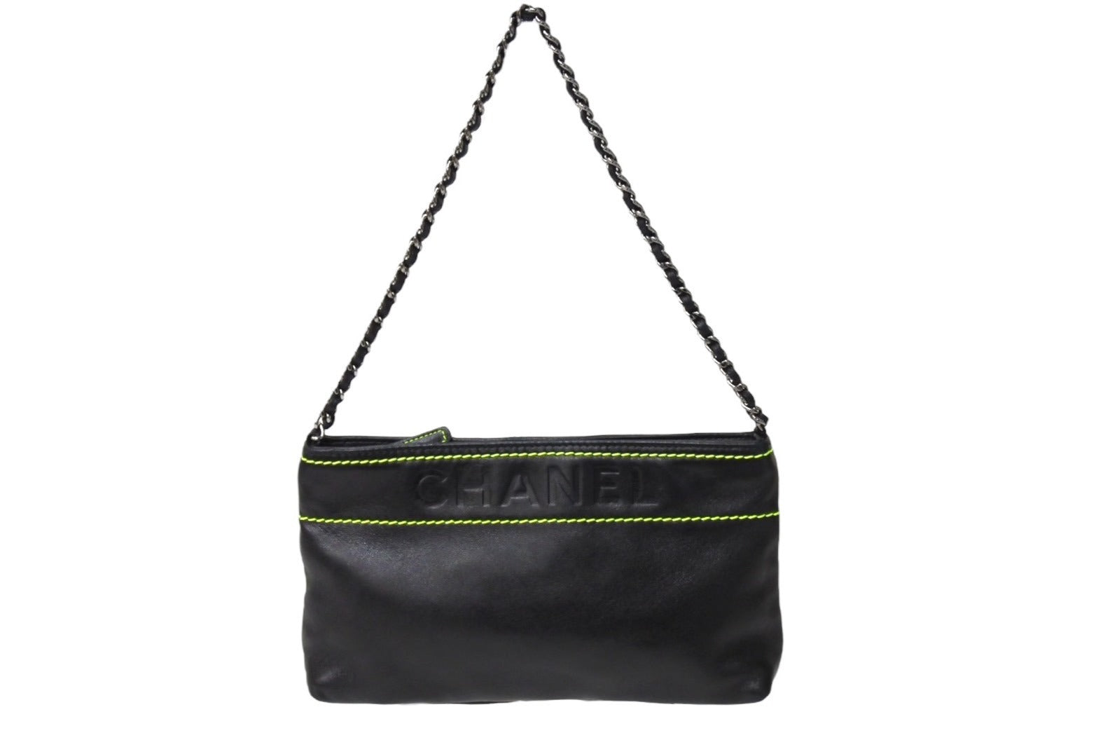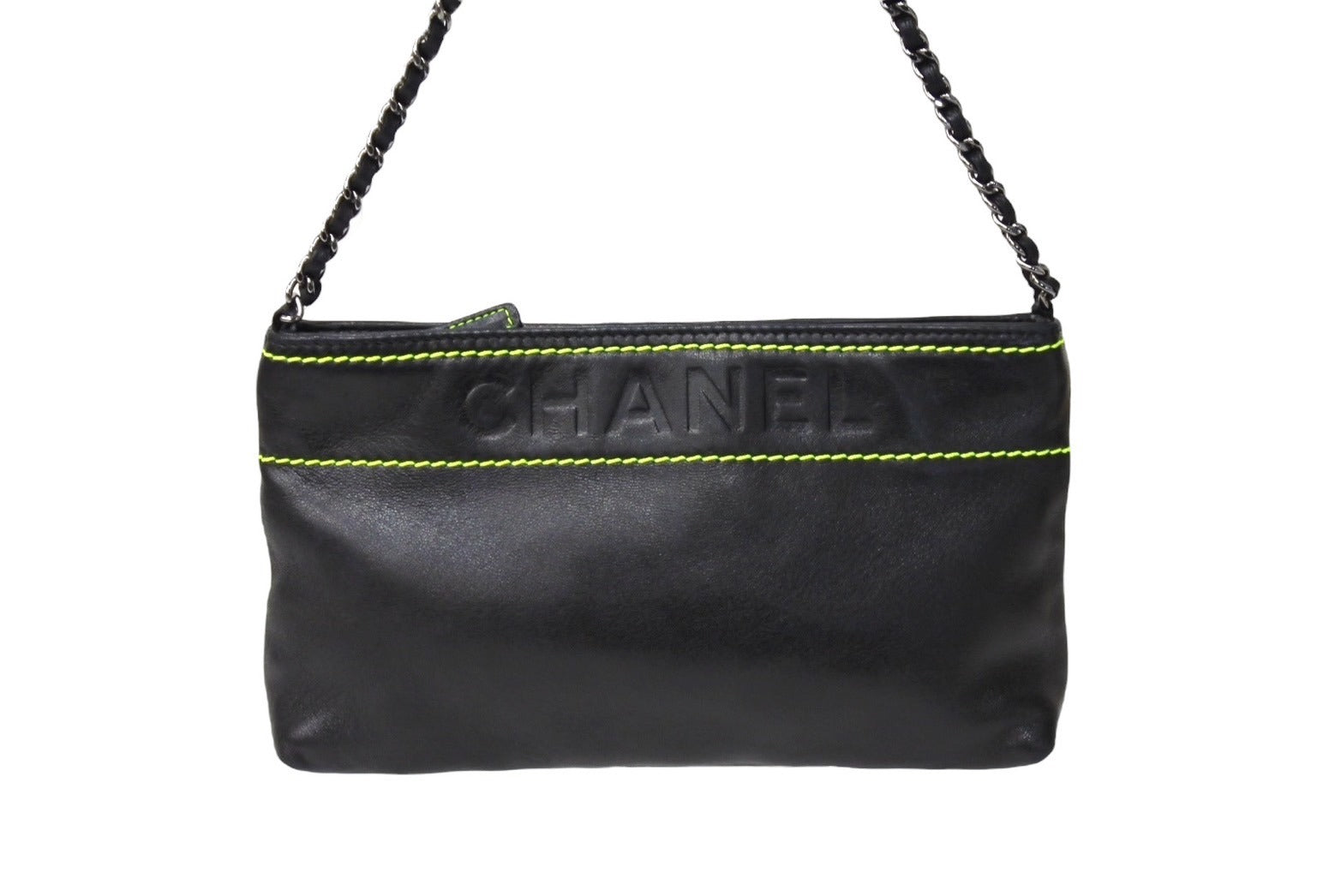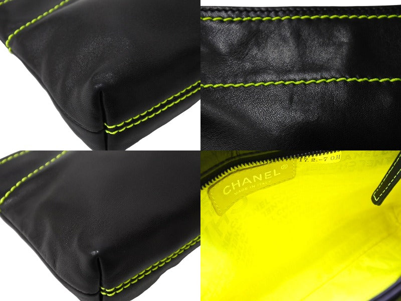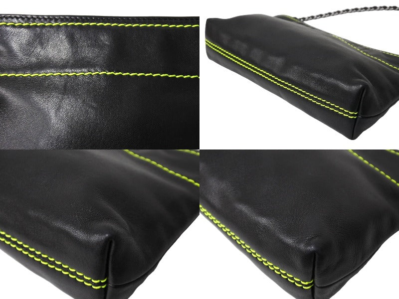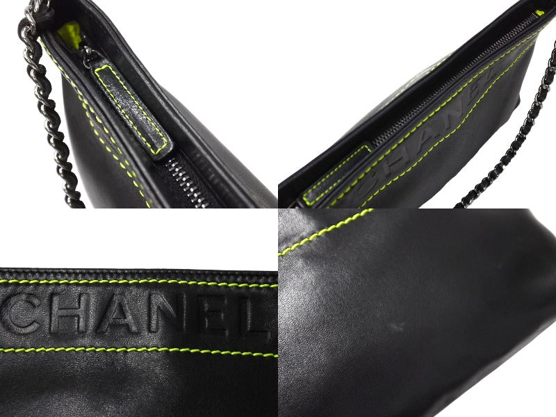 CHANEL シャネル チェーンハンドバッグ アクセサリーポーチ ロゴ 9番台 ラムスキン ブラック グリーン 美品 中古 65064