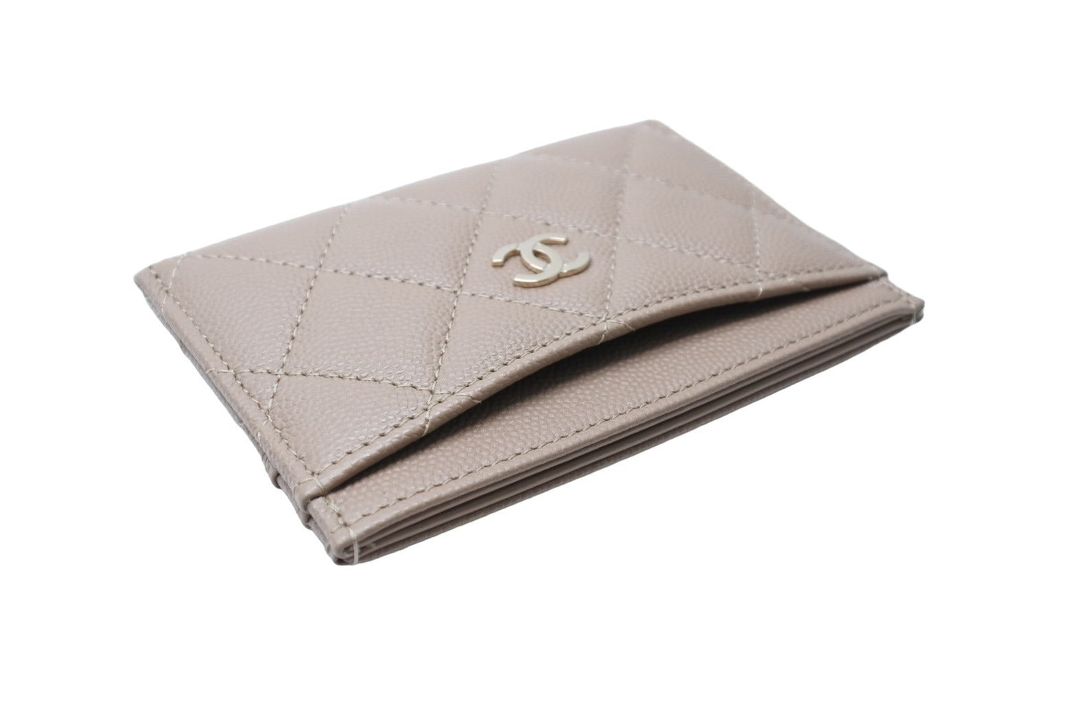 極美品 CHANEL シャネル カードケース ココマーク シリアルランダム キャビアスキン ベージュ ゴールド金具 中古 65269