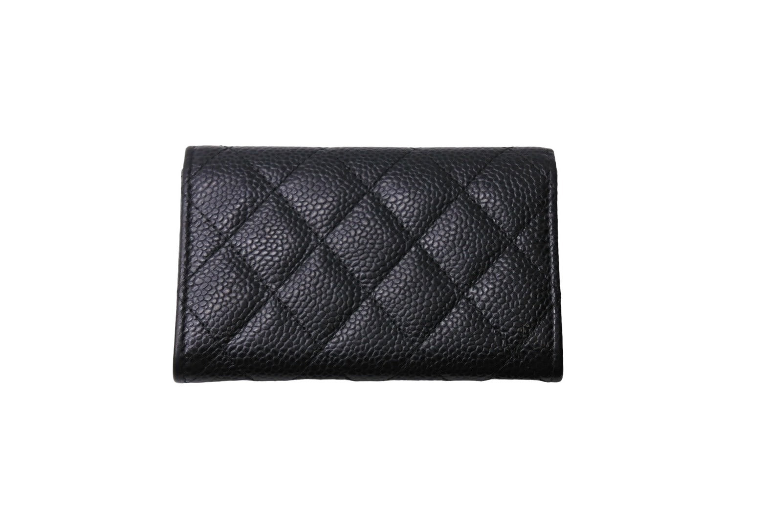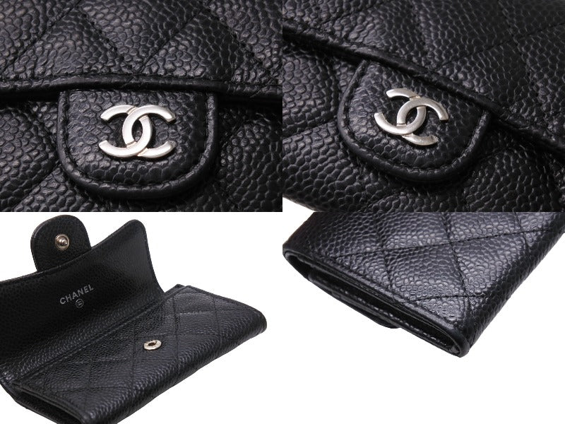 極美品 CHANEL シャネル カードケース ココマーク フラップ 25番台 キャビアスキン マトラッセ シルバー金具 ブラック 美品 中古 65859