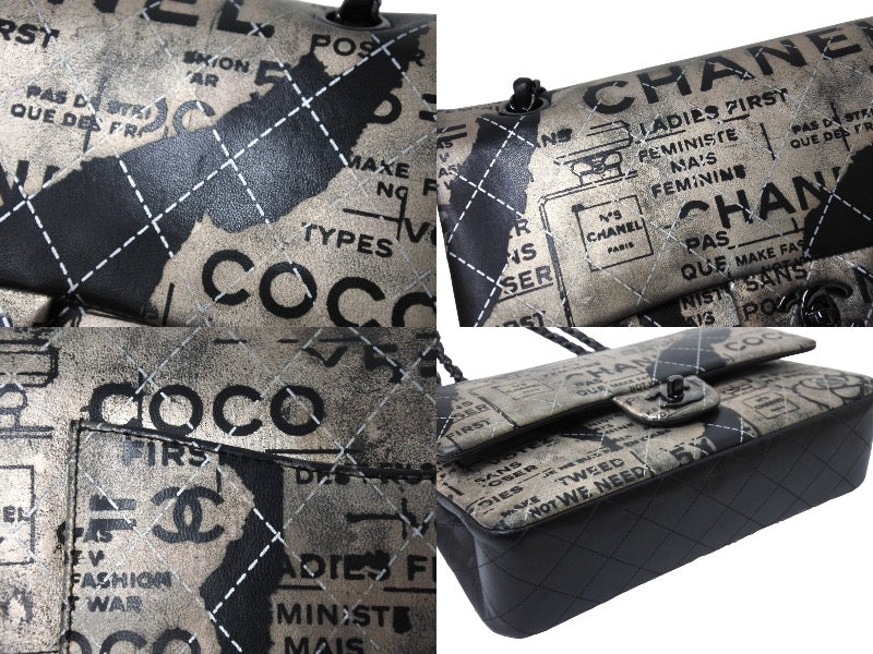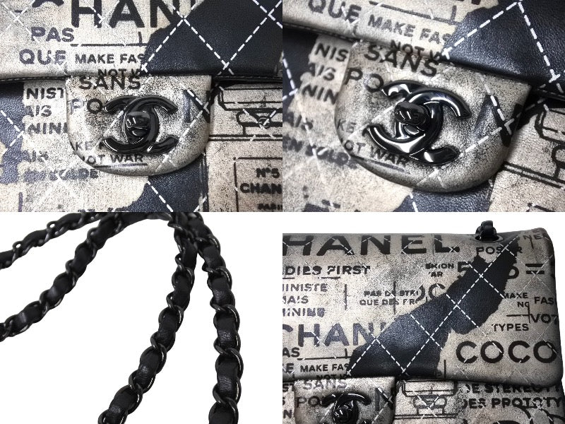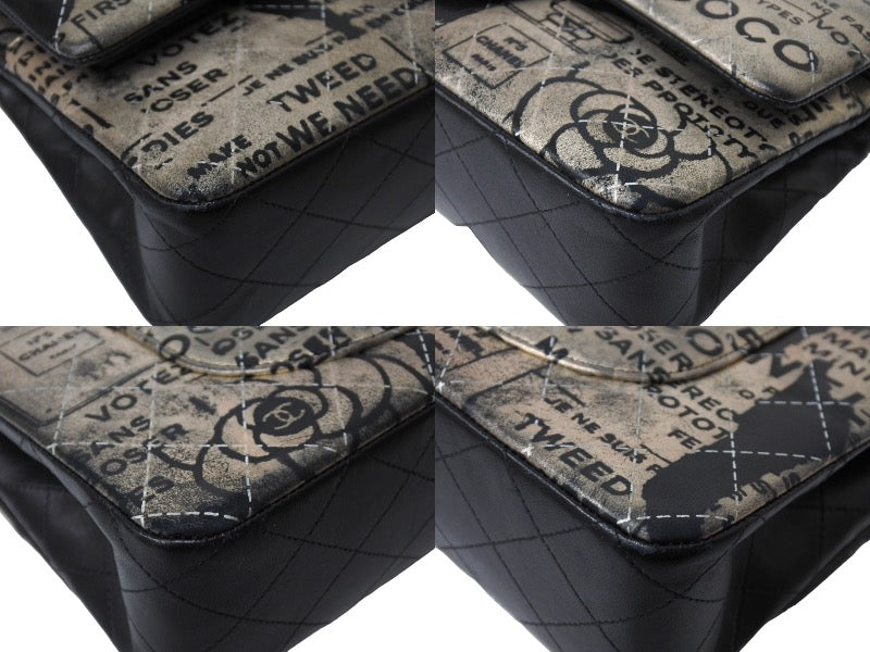 極美品 CHANEL シャネル マトラッセ25 ニュースペーパー Wフラップラップ ラムスキン ブラックシルバー 21番台 中古 65932