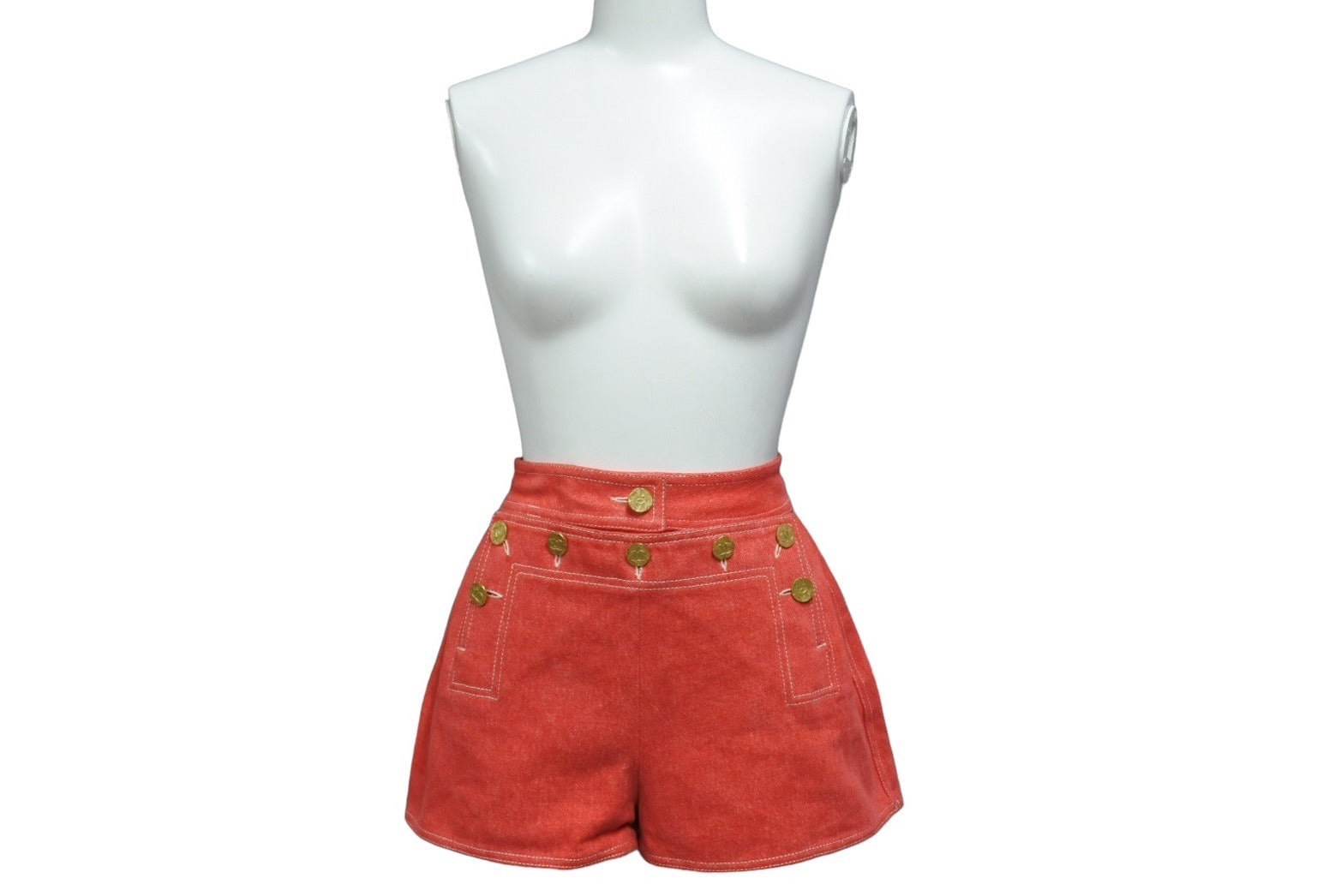 CHANEL シャネル デニム ショートパンツ レッド 赤 半ズボン ボトムス ロゴ ココマーク P03208 サイズ38 美品 中古 66544