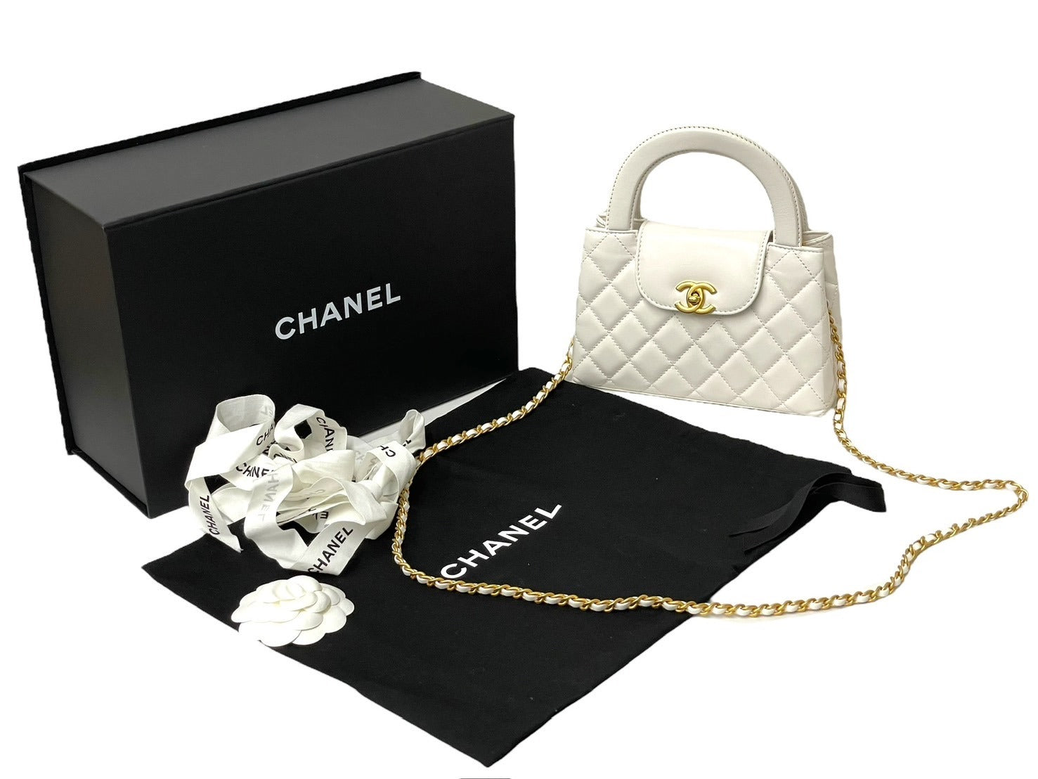 シャイニーエイジドカーフスキン素材・カラーはホワイト・ゴールド金具になります。とってもキュートなマトラッセ新作コレクションアイテム・トップハンドル・ミニショッピングバッグが入荷致しました。ココマーク・ゴールド金具が高級感を引き立てます。