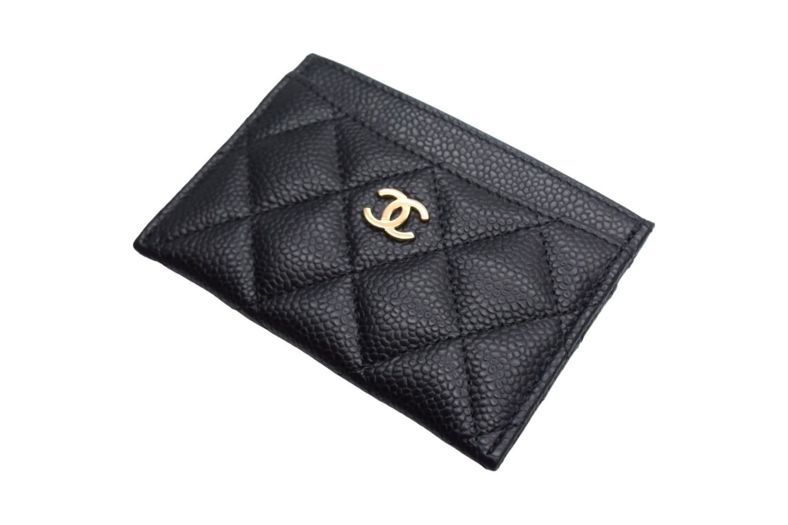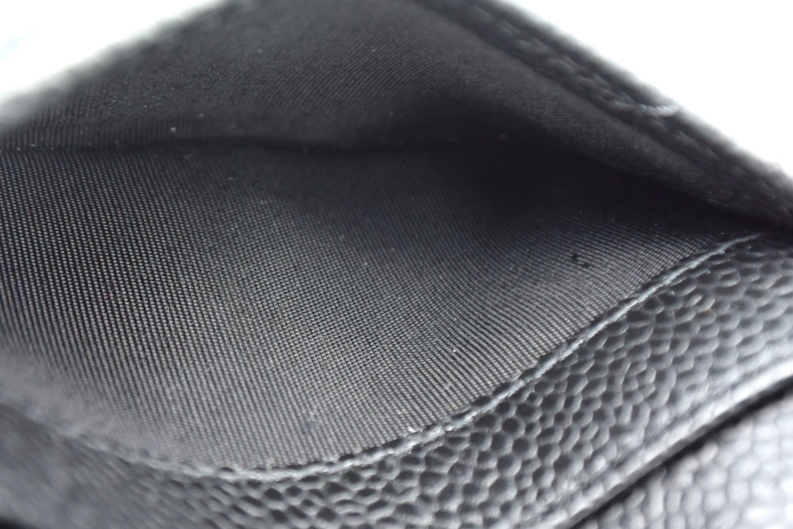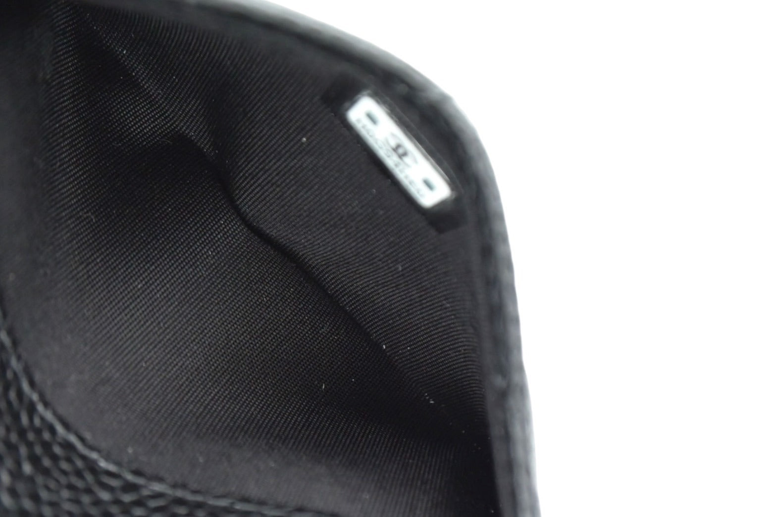 新品同様 CHANEL シャネル カードケース ココマーク キャビアスキン シリアルランダム ブラック ゴールド金具 中古 66809