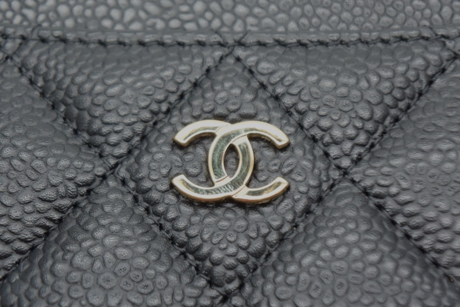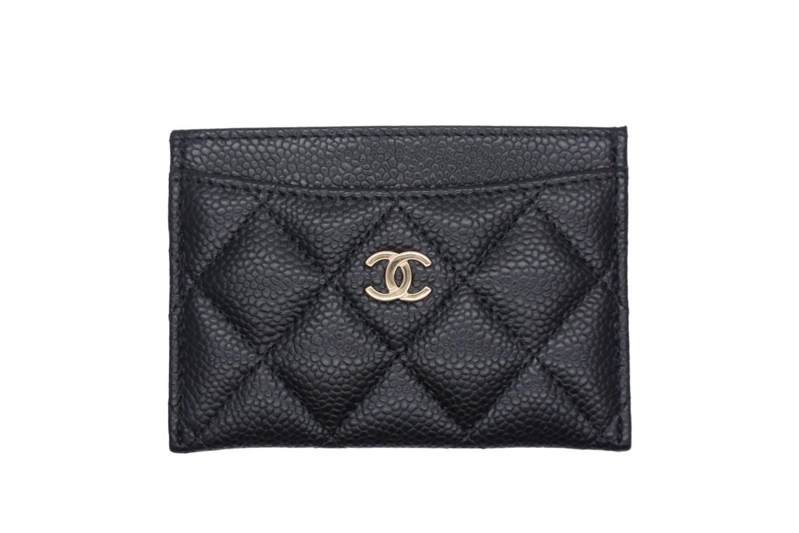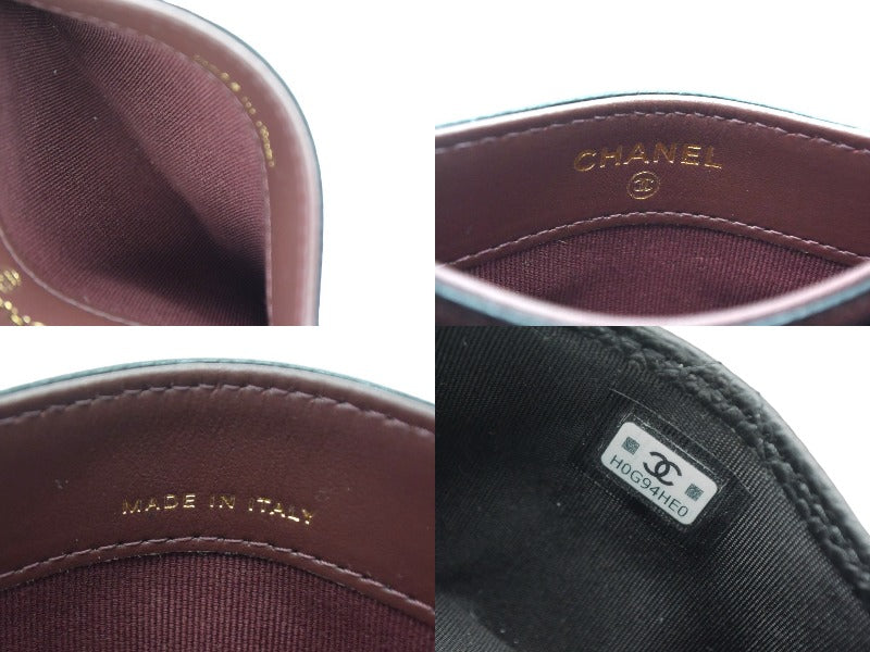 新品同様 CHANEL シャネル カードケース ココマーク キャビアスキン シリアルランダム ブラック ゴールド金具 中古 66809