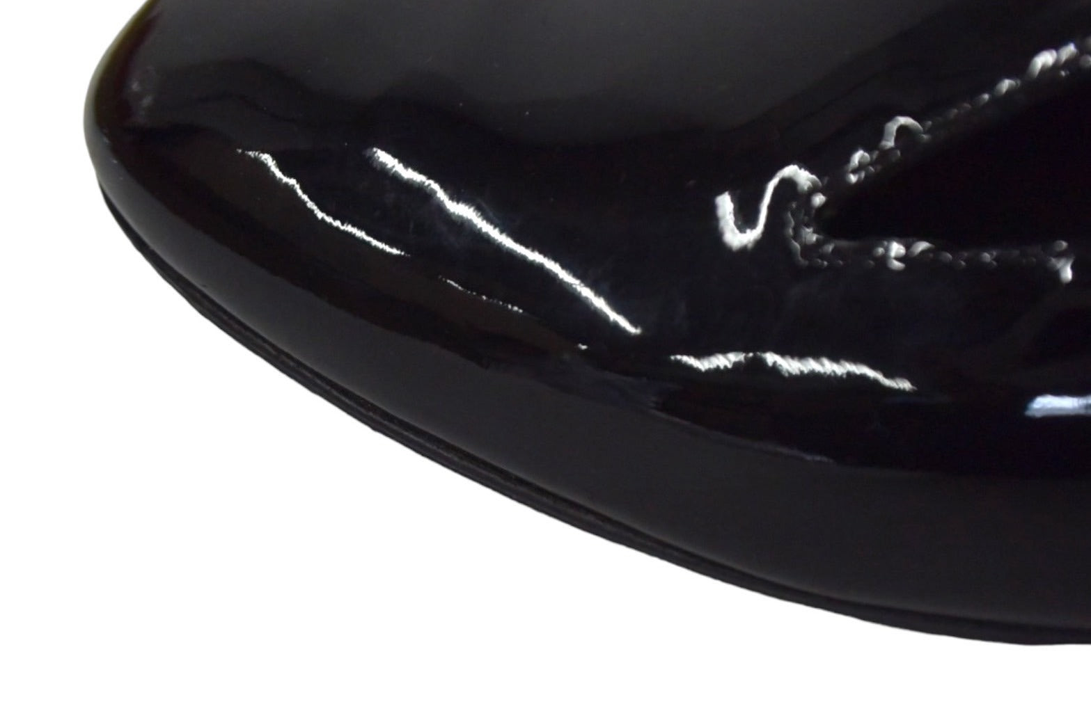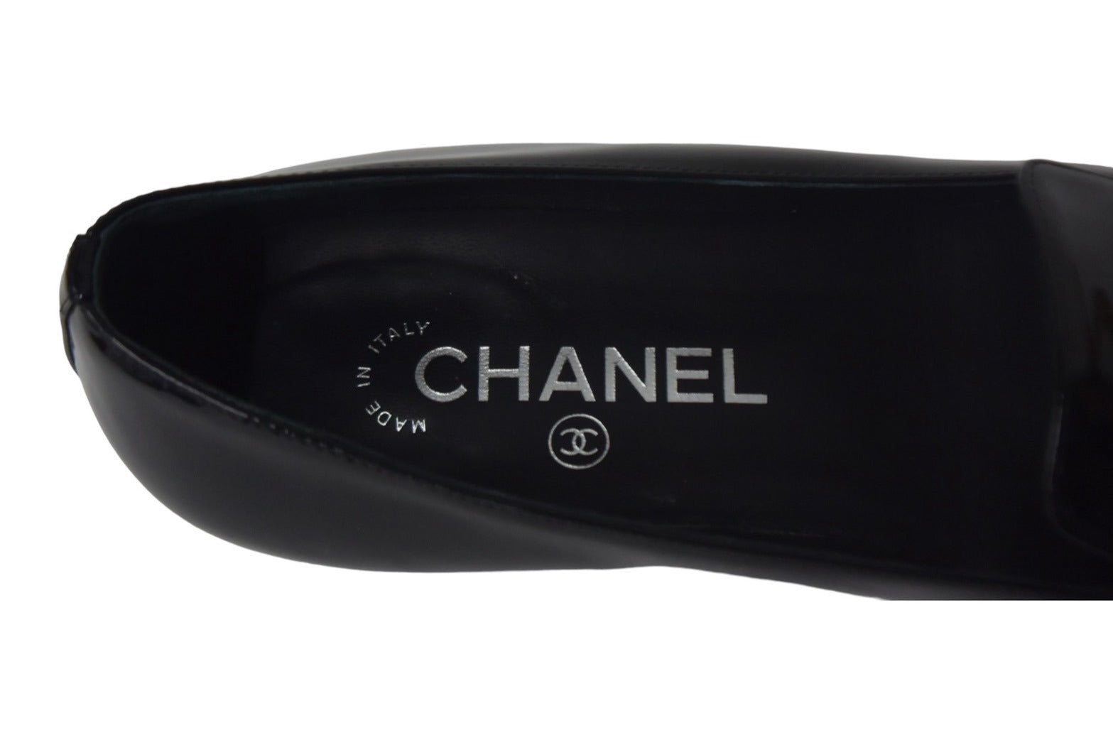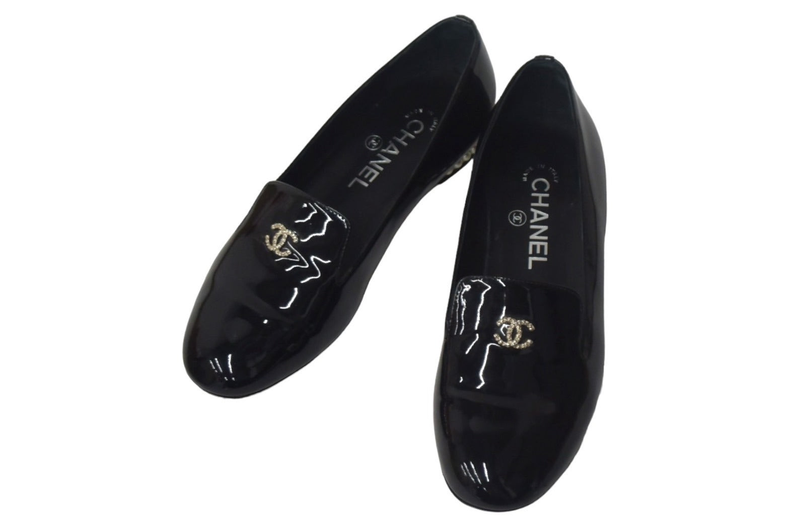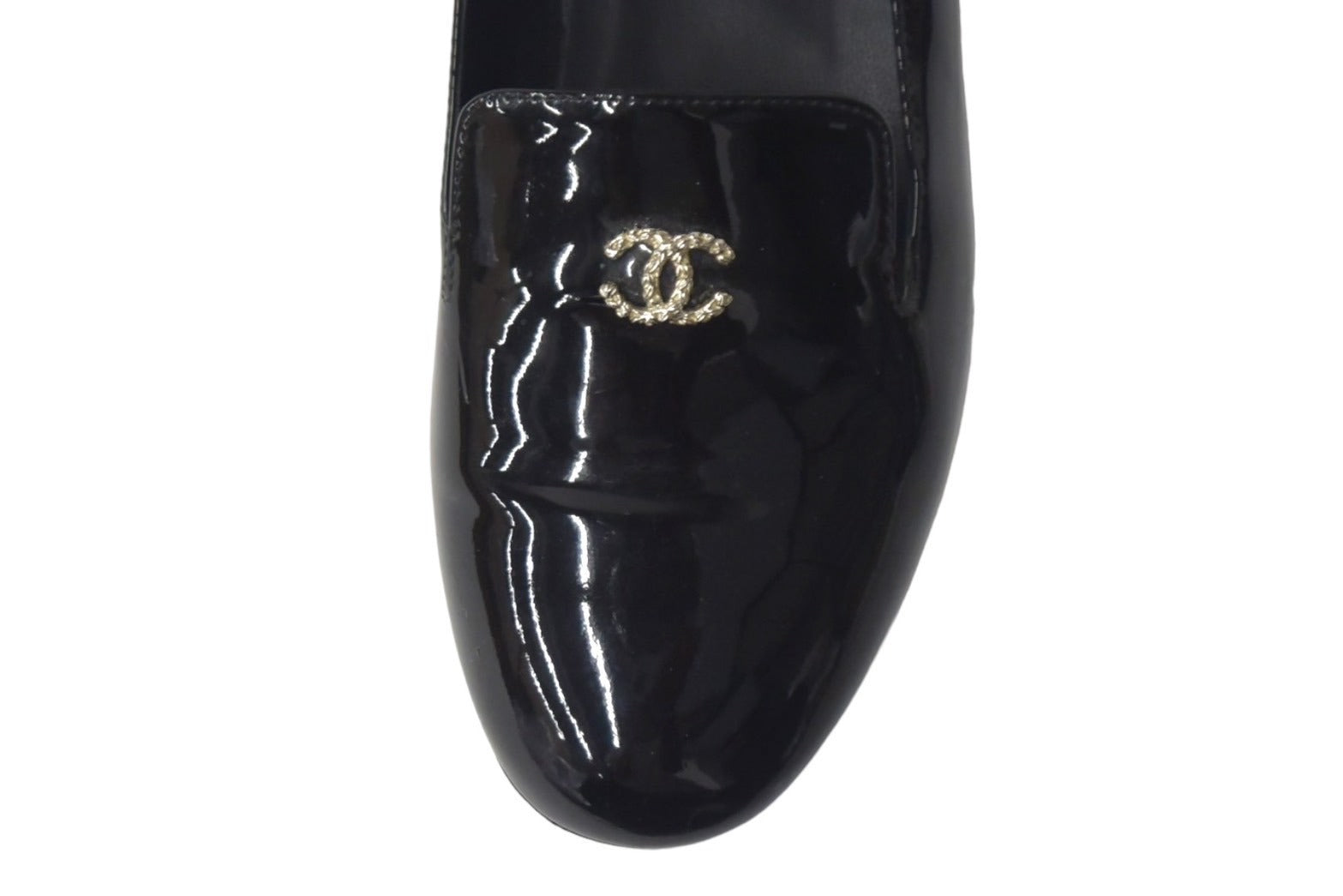 ワンポイントのココマークとフェイクパールで彩られたパテント素材のオペラシューズです。