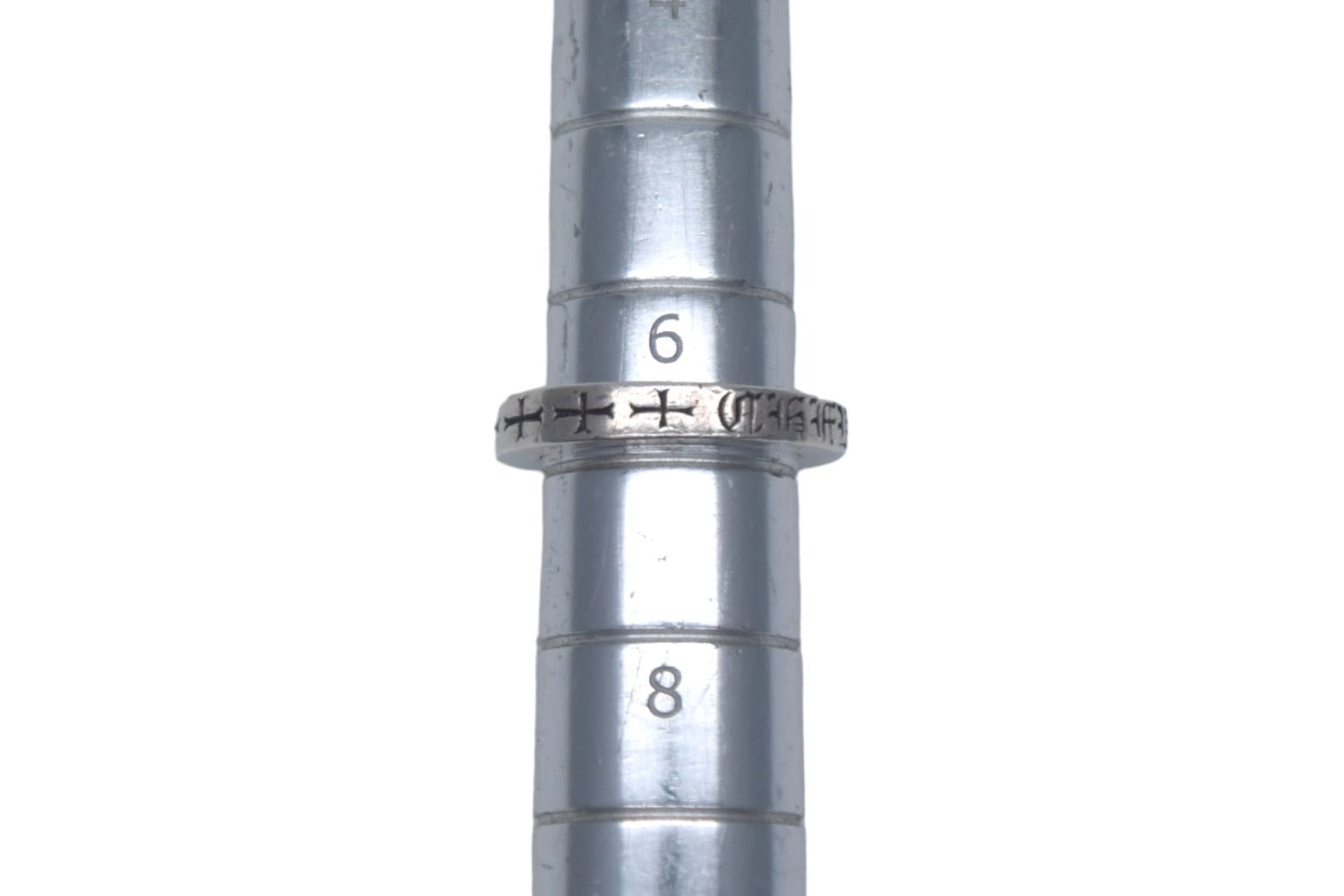 厚さ3mmという極小なスペースに刻み燻された【CHROME HEARTS】の文字と、CHクロスモチーフが印象的なデザインのリングとなっております。