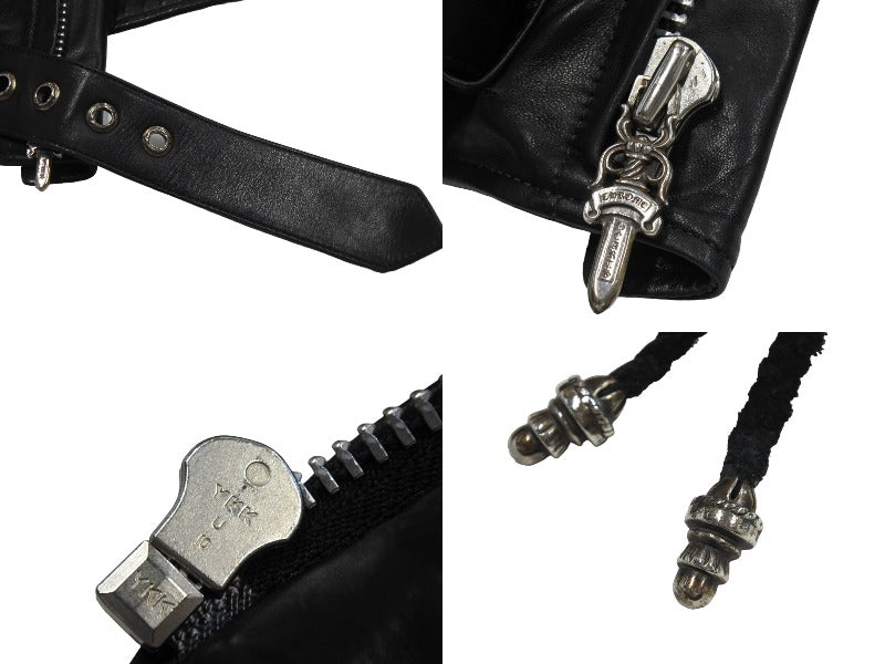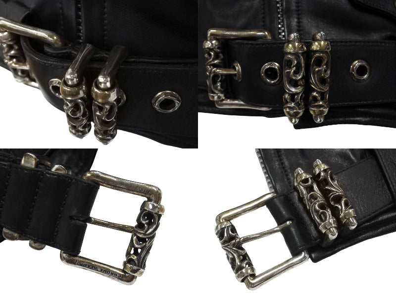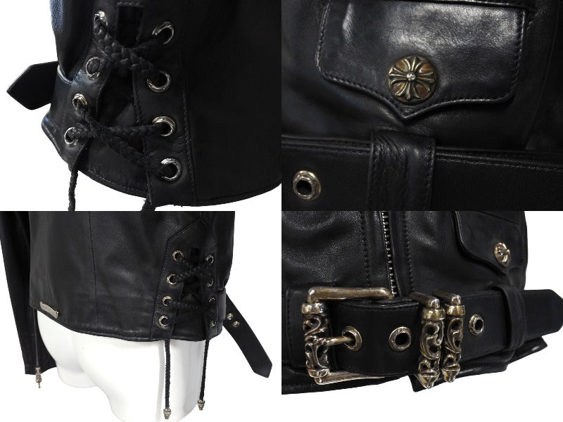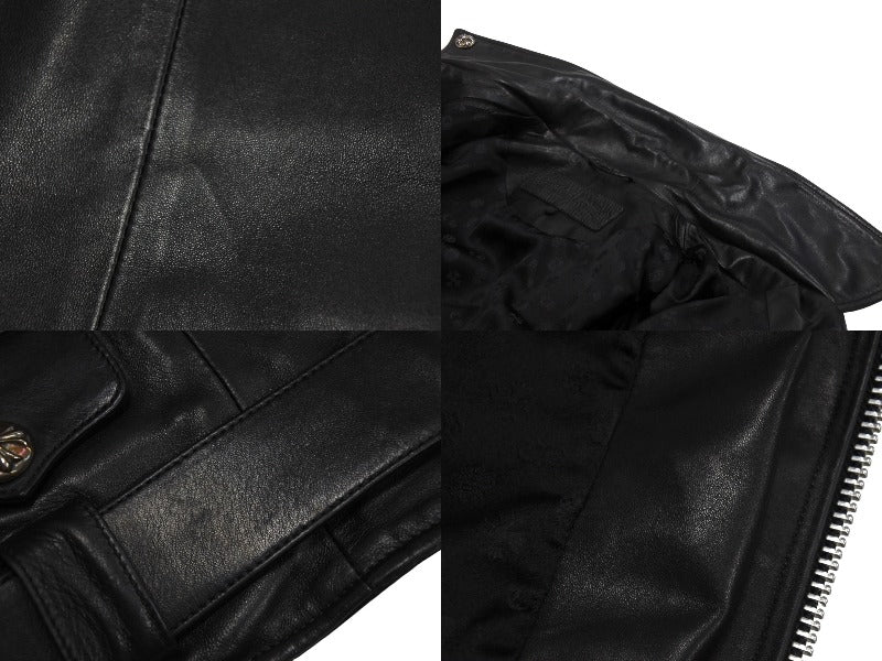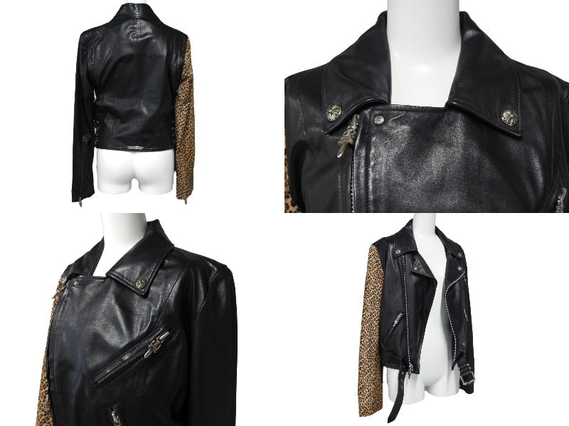 CHROME HEARTS クロムハーツ JJ DEAN ライダースジャケット サイズM ブラック レオパード ハラコ レザー シルバー925 美品 中古 4c067438